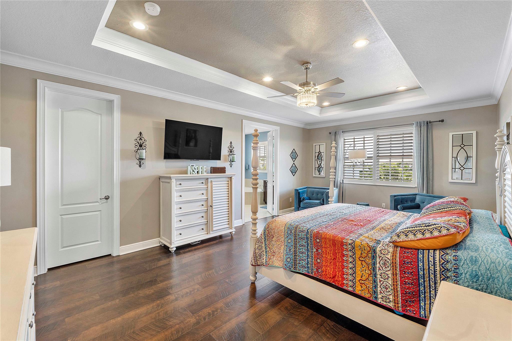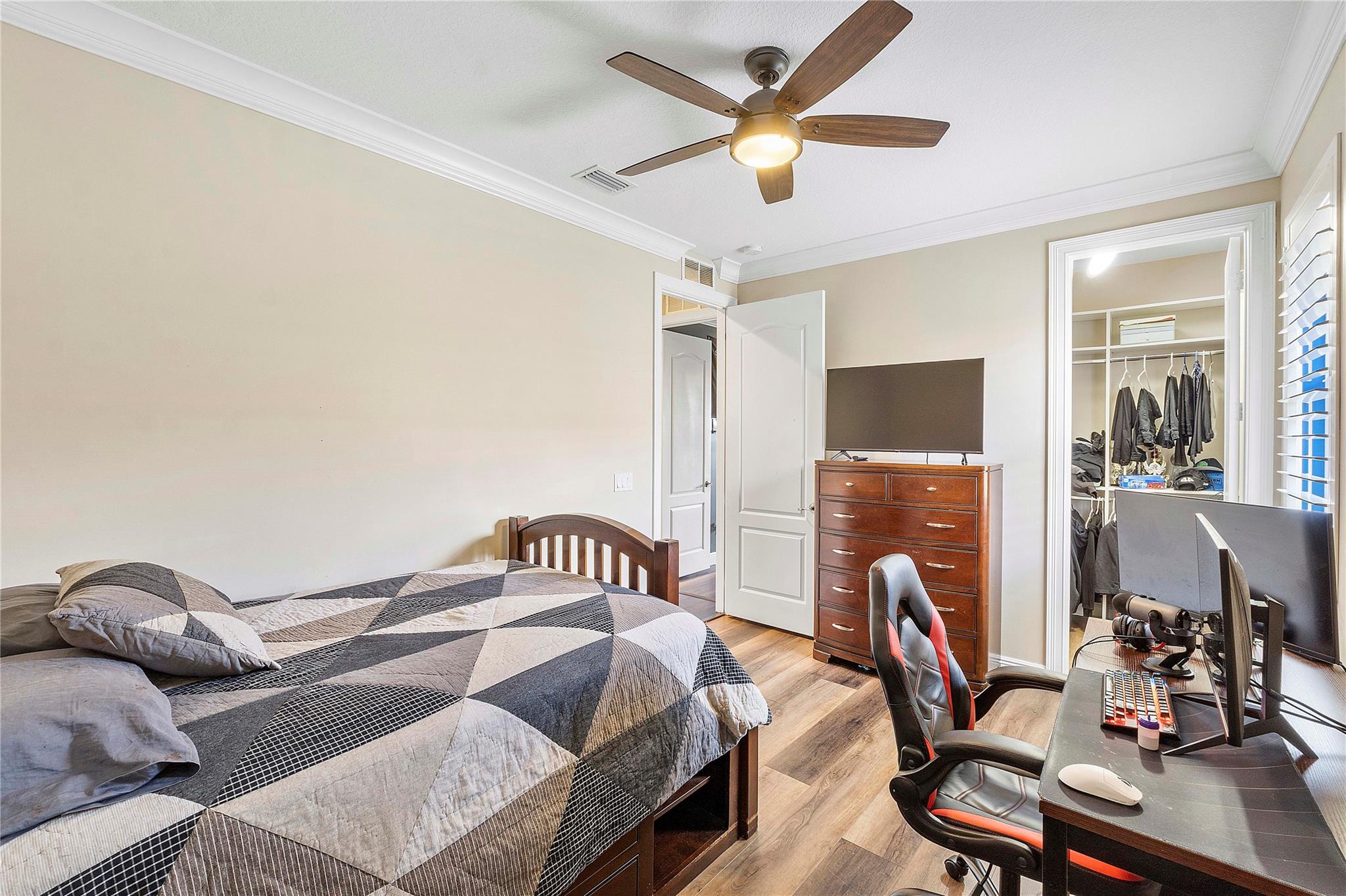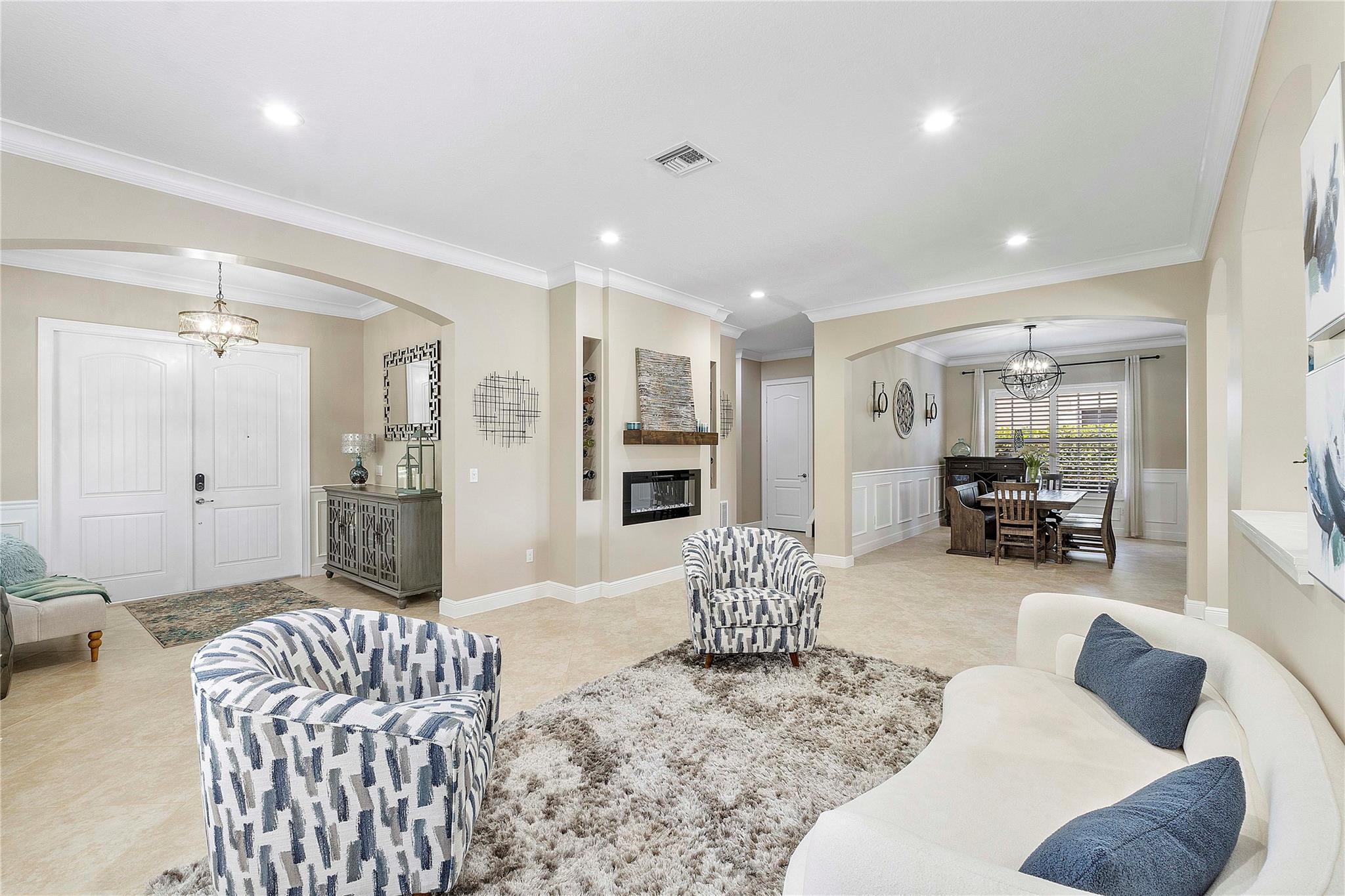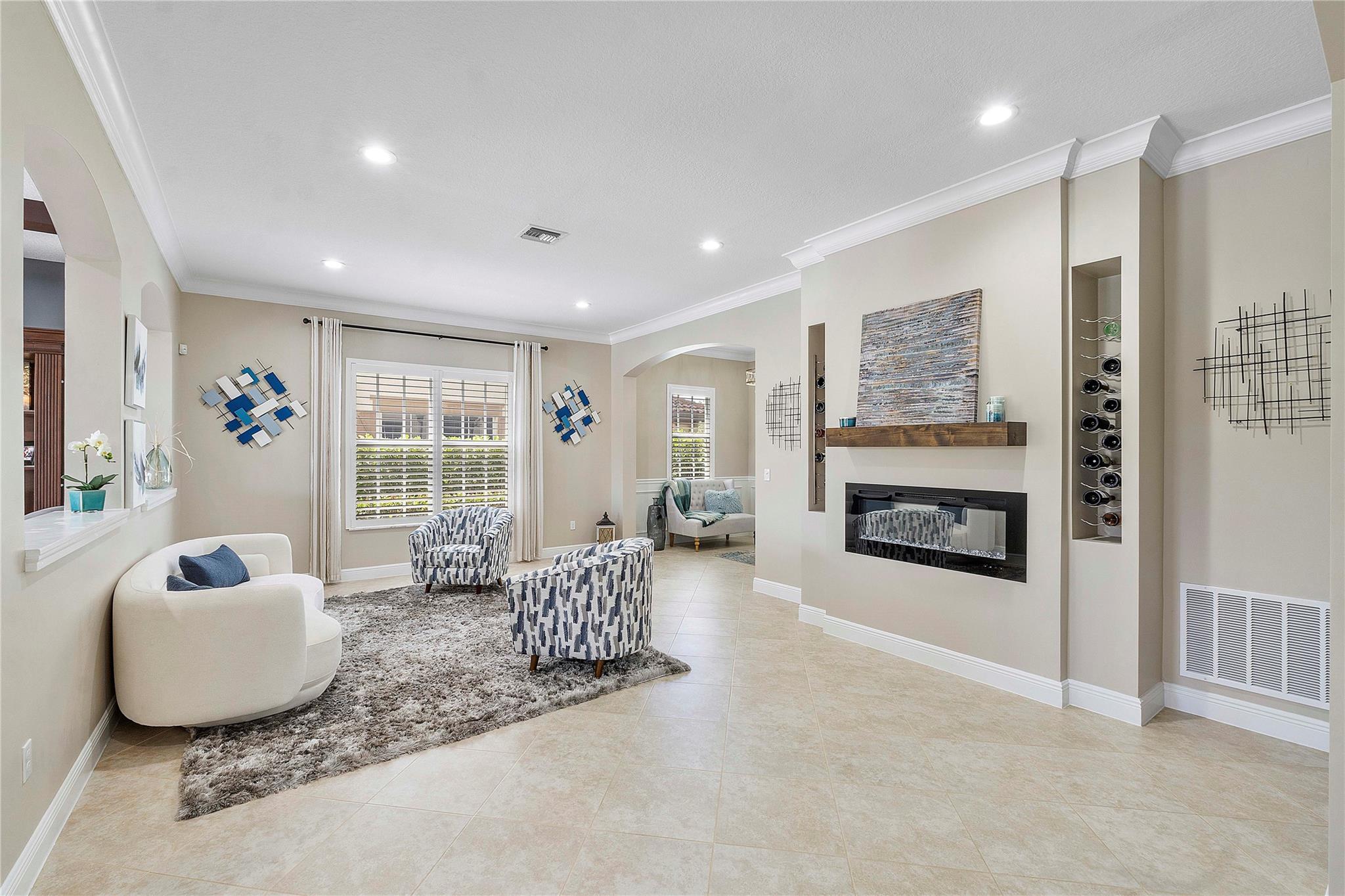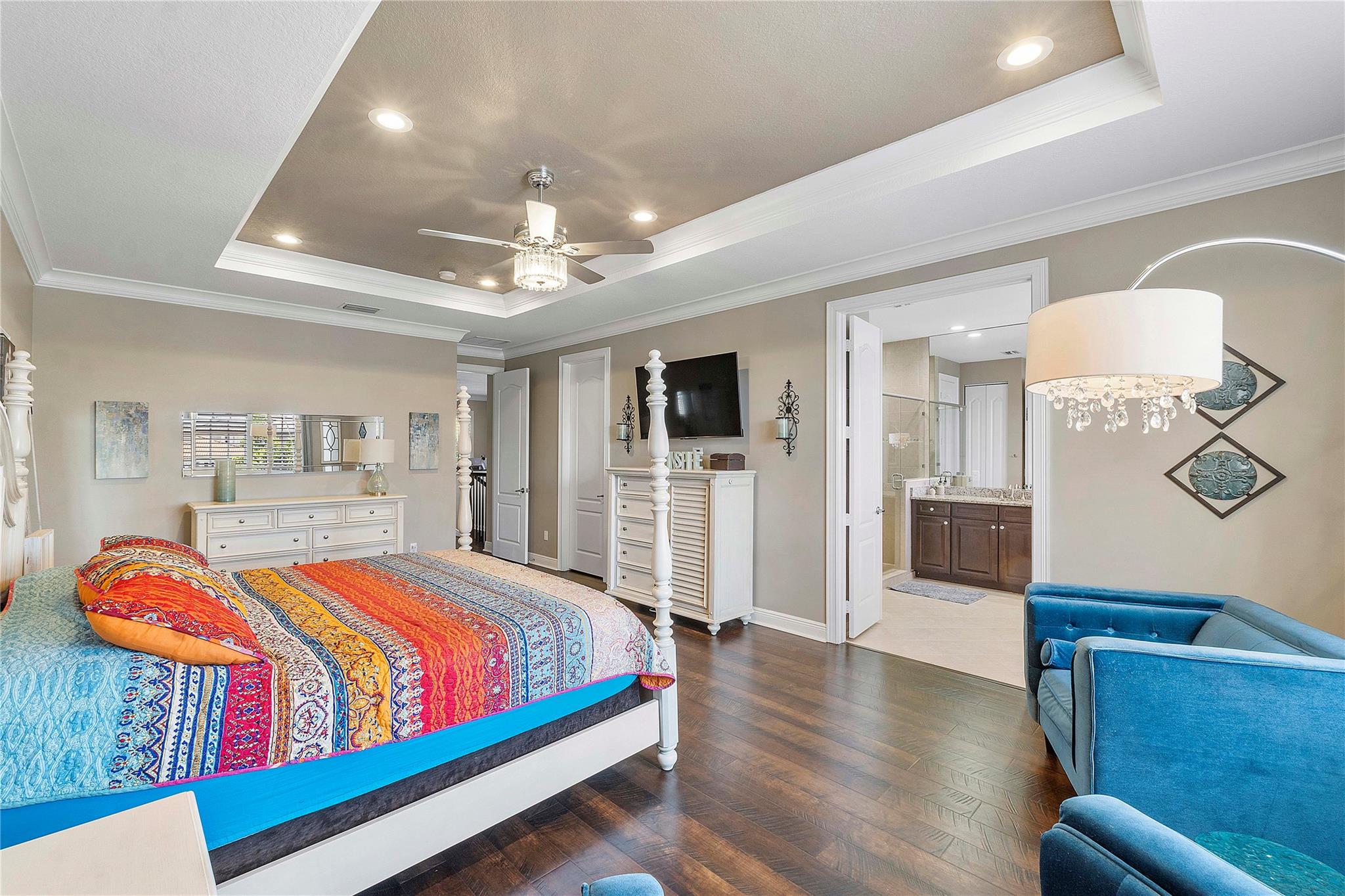 Exceptional opportunity to own a stunning Tahoe Model in Miralago. A beautifully upgraded 4-bedroom plus loft (easily convertible to a 5th bedroom), 4-bathroom home, offering over 3,700 square feet of living space on a lakefront lot. This residence features an oversized saltwater pool with marble deck and a summer kitchen. Interior highlights include tile flooring throughout the living areas and vinyl flooring upstairs. All closets have custom cabinetry, crown moldings throughout, wood ceiling beams in the kitchen and living room, and wainscoting in the dining area. The kitchen is equipped with a gas cooktop, double oven, granite countertops, neutral tile backsplash, and wood cabinetry. Homeowners enjoy access to both the Miralago and Cascata resort-style clubhouses.
