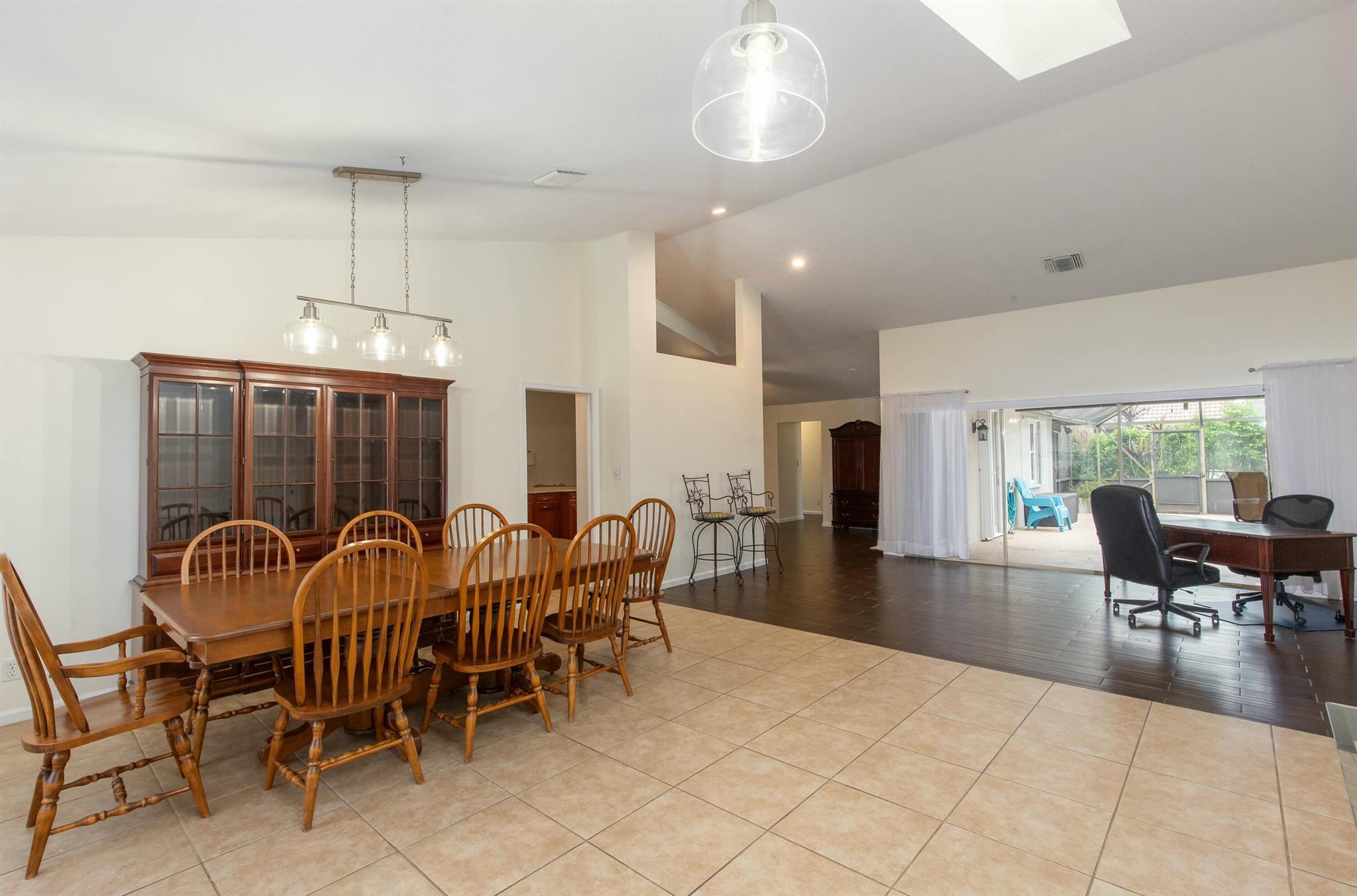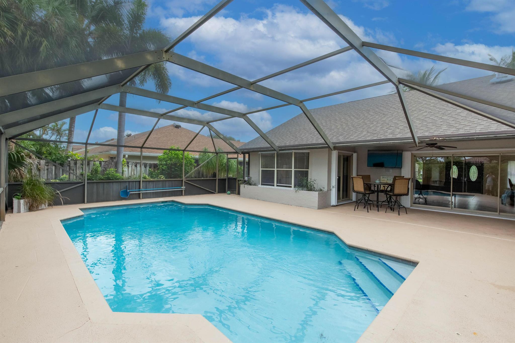 This exceptionally well maintained & beautifully updated 4 bedroom 2 bath residence is located in the highly desirable non-HOA community of Wiltshire Village. Upon entering, you'll be wowed by the spacious great room, large enough for a regulation size pool table (not photographed), as well as an eight person dining table! The open concept kitchen is well suited to make memories with family or entertain guests. An oversized primary suite, luxurious primary bath, and nice sized guest rooms round out the interior. Your living space is extended with a covered patio and fully screened pool! Outfitted with accordion shutters, you, your loved ones, & your property will easily be protected during storm Season! Freshly painted inside and out, this home is ready for a new owner!