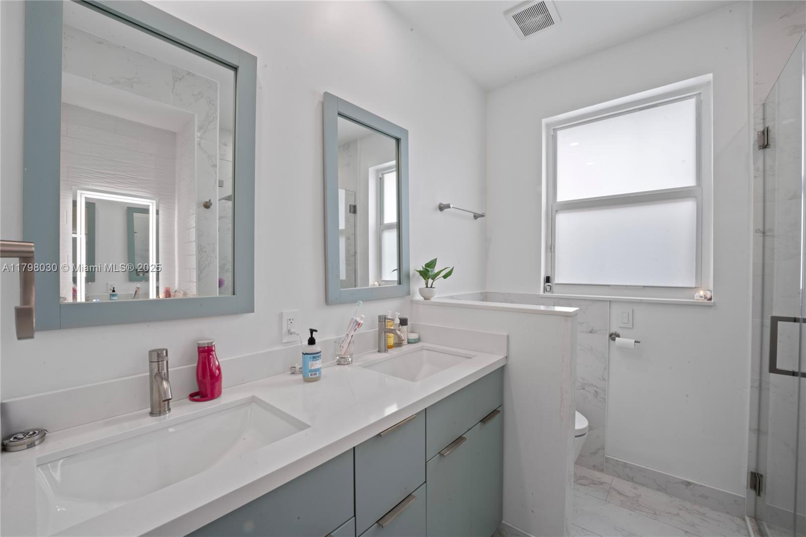 Beautifully renovated pool home featuring 4 bedrooms, 2 full bathrooms, and 2 half bathrooms, including a convenient cabana bath for the pool area. The open-concept layout ideal for entertaining, highlighted by a modern kitchen with a massive quartz island, sleek stainless steel appliances, and an abundance of natural light. The upgraded primary suite offers a luxurious bathroom with an oversized walk-in shower, private toilet room, and custom walk-in closet system. Hurricane-impact windows and doors, a new roof, and attic storage. The backyard is a tropical oasis with a large private pool, spacious patio, lush landscaping, and fruit trees. Ideally located with easy access to I-75, Pines Boulevard, and Miramar Parkway. A gated community with a clubhouse, sports courts, playground.