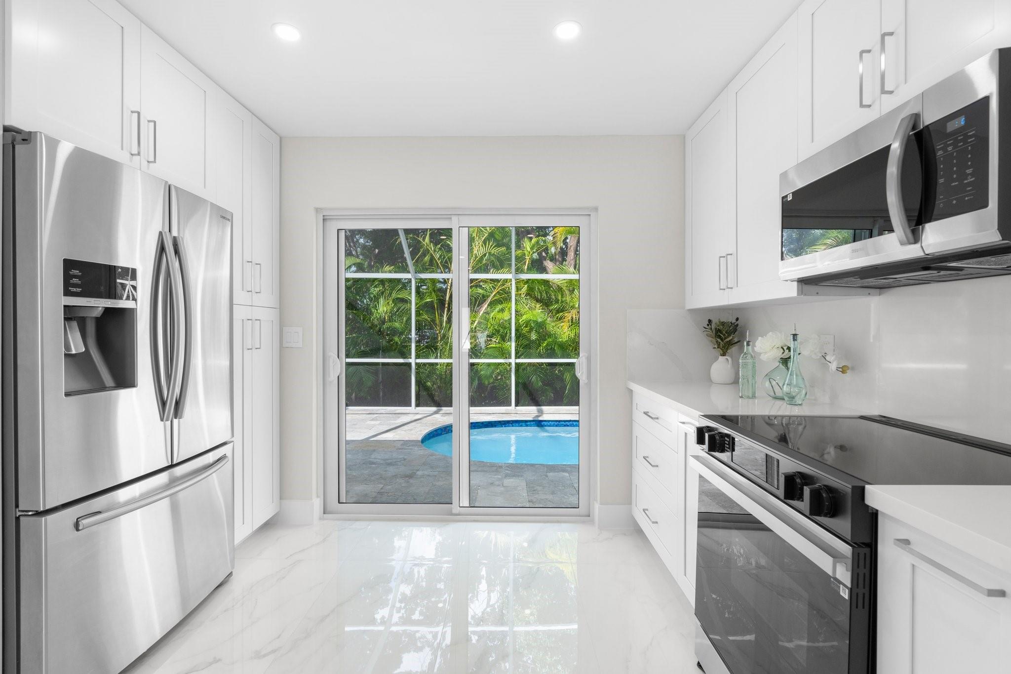 Stunning Updated Pool Home in West Boca. This beautifully reimagined pool home offers luxurious living space and unbeatable blend of style and comfort. From the moment you walk in, you'll be captivated by the bright open-concept layout that flows effortlessly through the main living area. The chef's kitchen is a true showstopper - featuring sleek cabinetry, premium quartz finishes, and ample space for entertaining. Brand new roof, impact windows, new flooring, fully remodeled kitchen and baths, inside W/D, premium exterior finishes. Furniture Negotiable. Overlooking the tenth hole at Boca Greens offering Pay to Play golf and tennis. No membership required. Conveniently located near shops, beaches, houses of worship. Also avail for annual Lease at $5,000 per month.