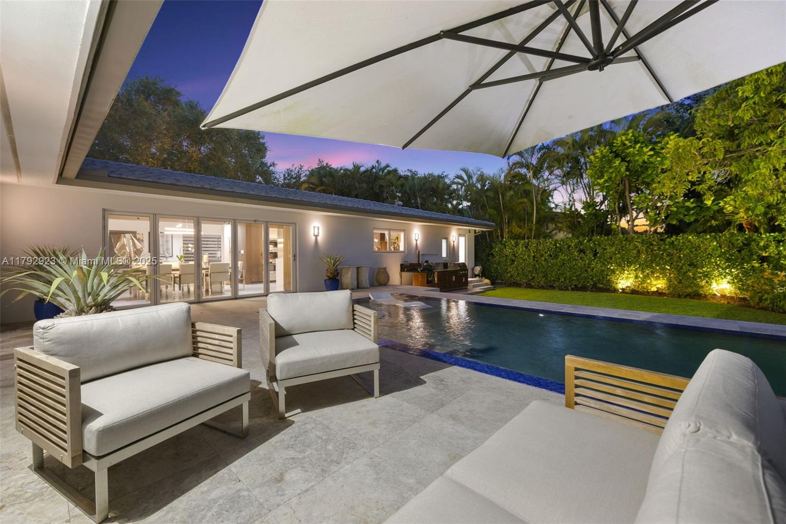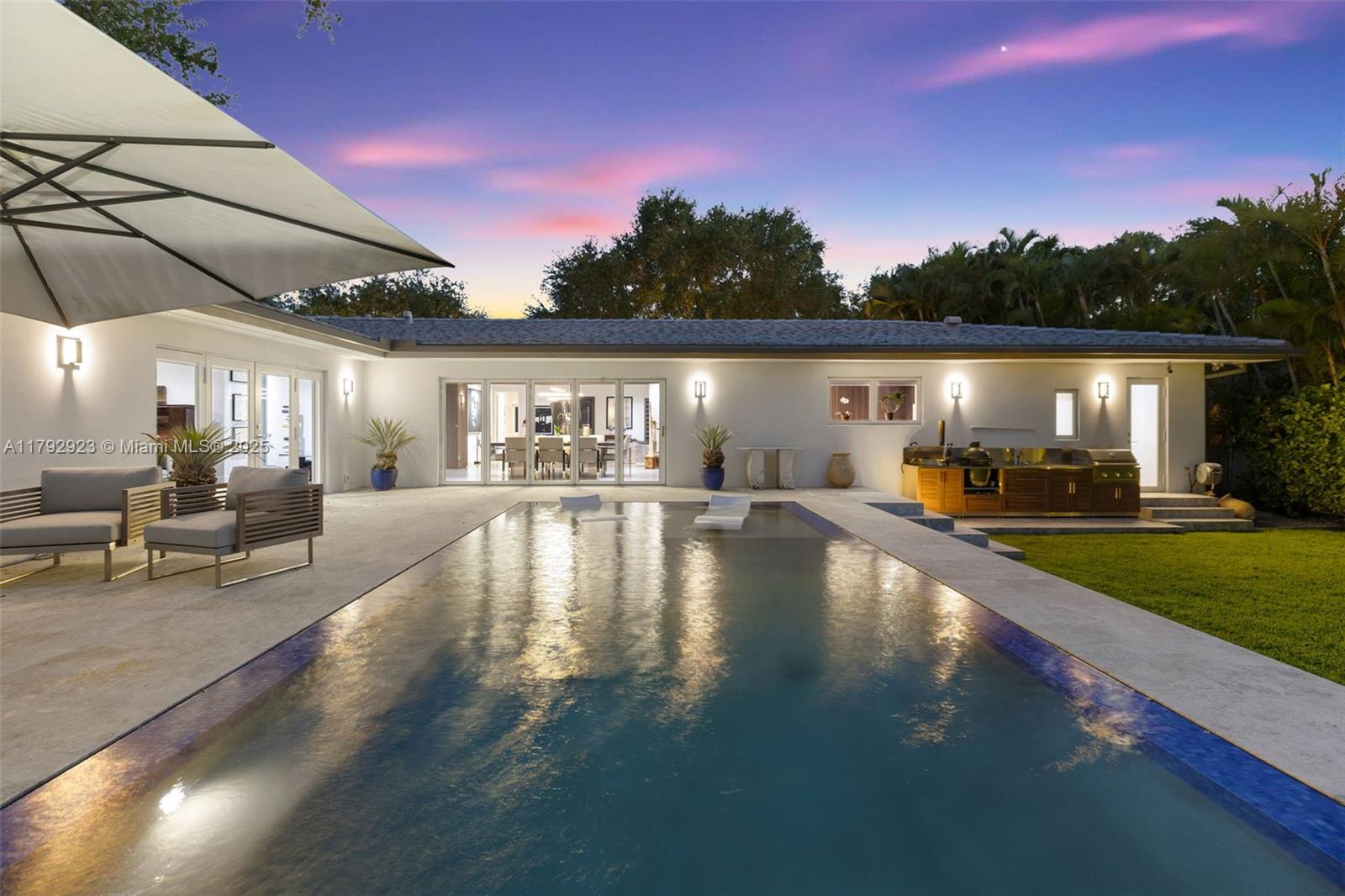 [A Miami Signature Home] Welcome to an exquisite residence in a prestigious neighborhood where elegance meets exclusivity. This sophisticated home has been fastidiously renovated and expanded at every level within the last 5-6 years, offering a seamless blend of style and function. The open layout features a professional grade kitchen, while the expansive Nana Glass Walls flood the living areas with natural light. The primary suite serves as a tranquil retreat with a spa-inspired bathroom and a tailored closet. Situated near cultural landmarks, luxury shopping, and fine dining, this property caters to refined lifestyles. Nearby parks and paths provide serene outdoor escapes. This home is not just a residence; it's a testament to elevated living in an unparalleled setting.