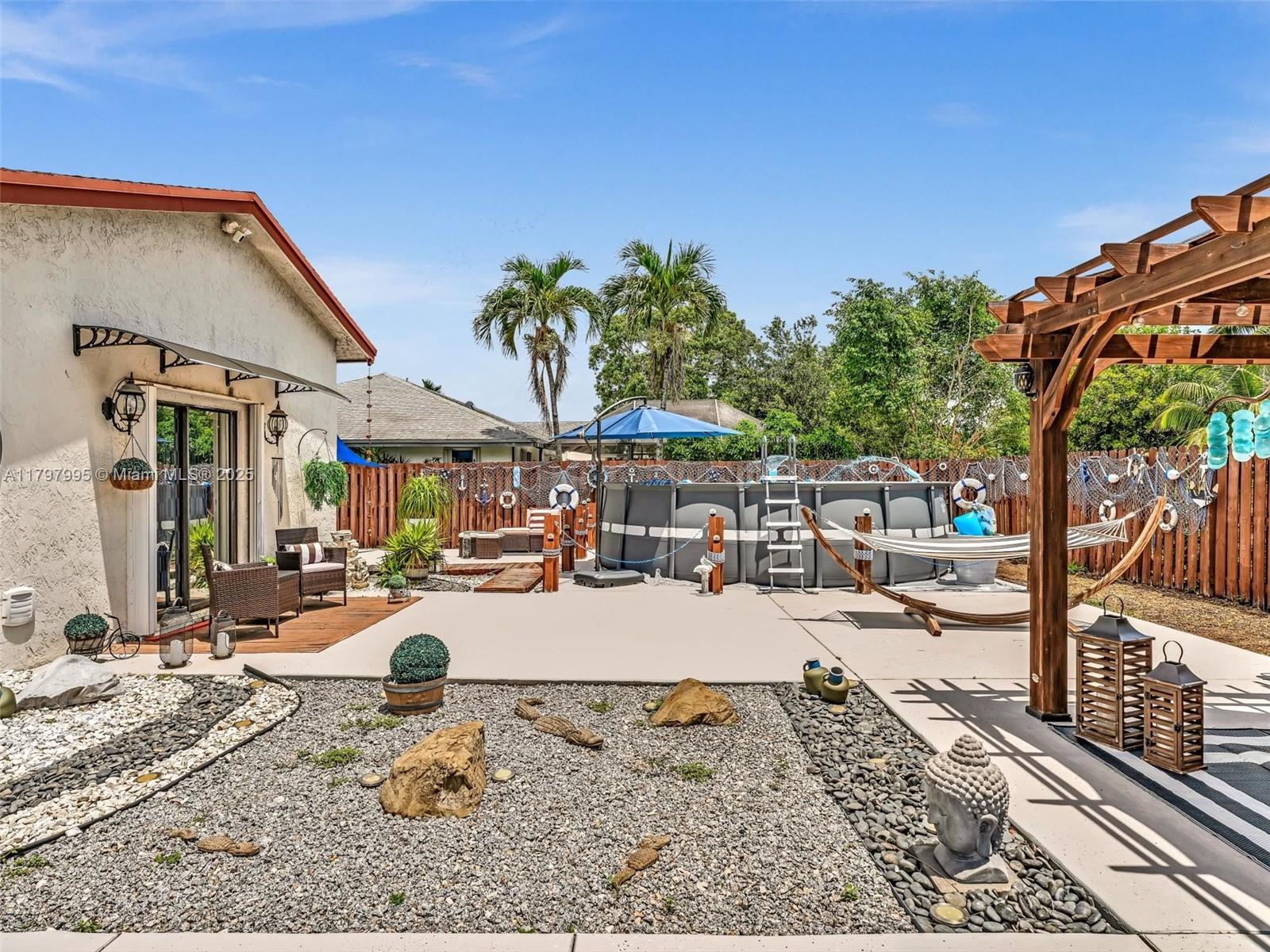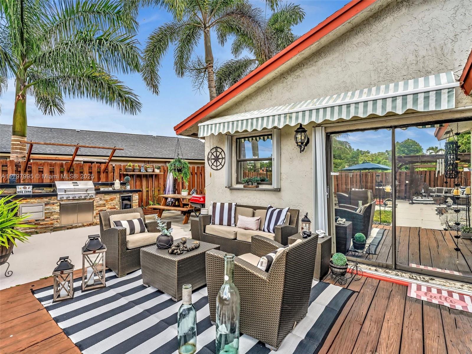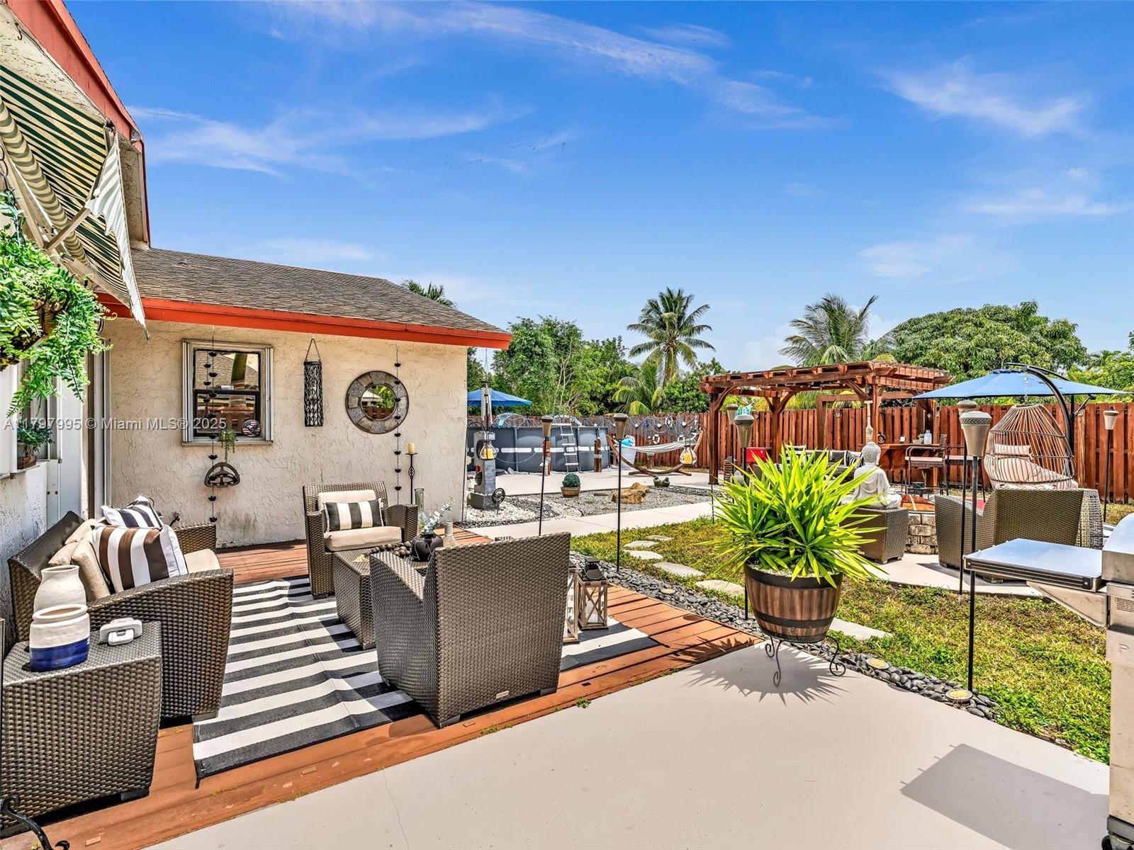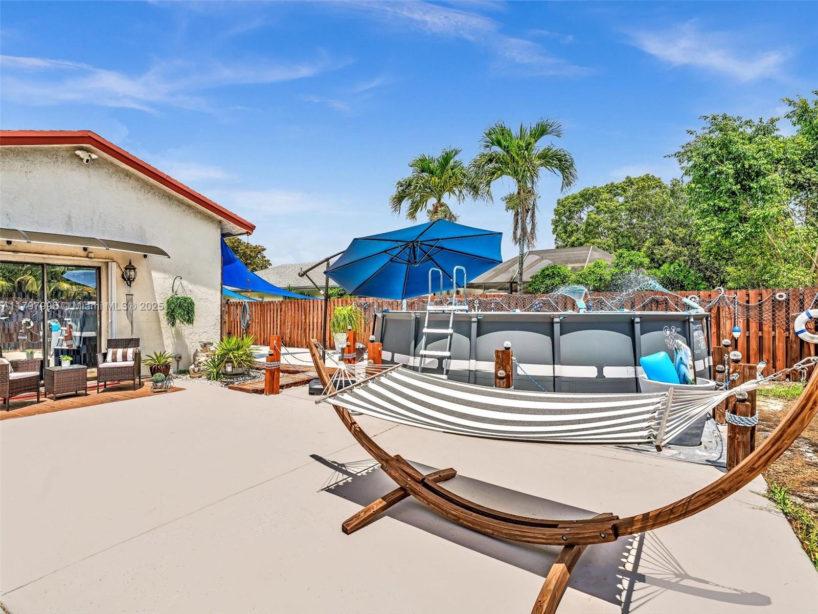 Exceptional value in Parkwood Homes III! This upgraded 3BR/2BA single-family home with 2-car garage offers a bright, open layout with vaulted ceilings, updated bathrooms, and a modern kitchen featuring stainless steel appliances, range hood, and wine cooler. Smart home features include 2022 A/C, Ring security system, and Wi-Fi garage opener. The private, fully fenced backyard is designed for entertaining with a pergola, summer kitchen, fire pit, outdoor shower, spacious deck, and above-ground pool. With a low $83/month HOA and a prime Sunrise location close to Sawgrass Mills, Markham Park, shopping, dining, top-rated schools, and major highways, this move-in-ready home delivers comfort, convenience, and lifestyle in one perfect package.
