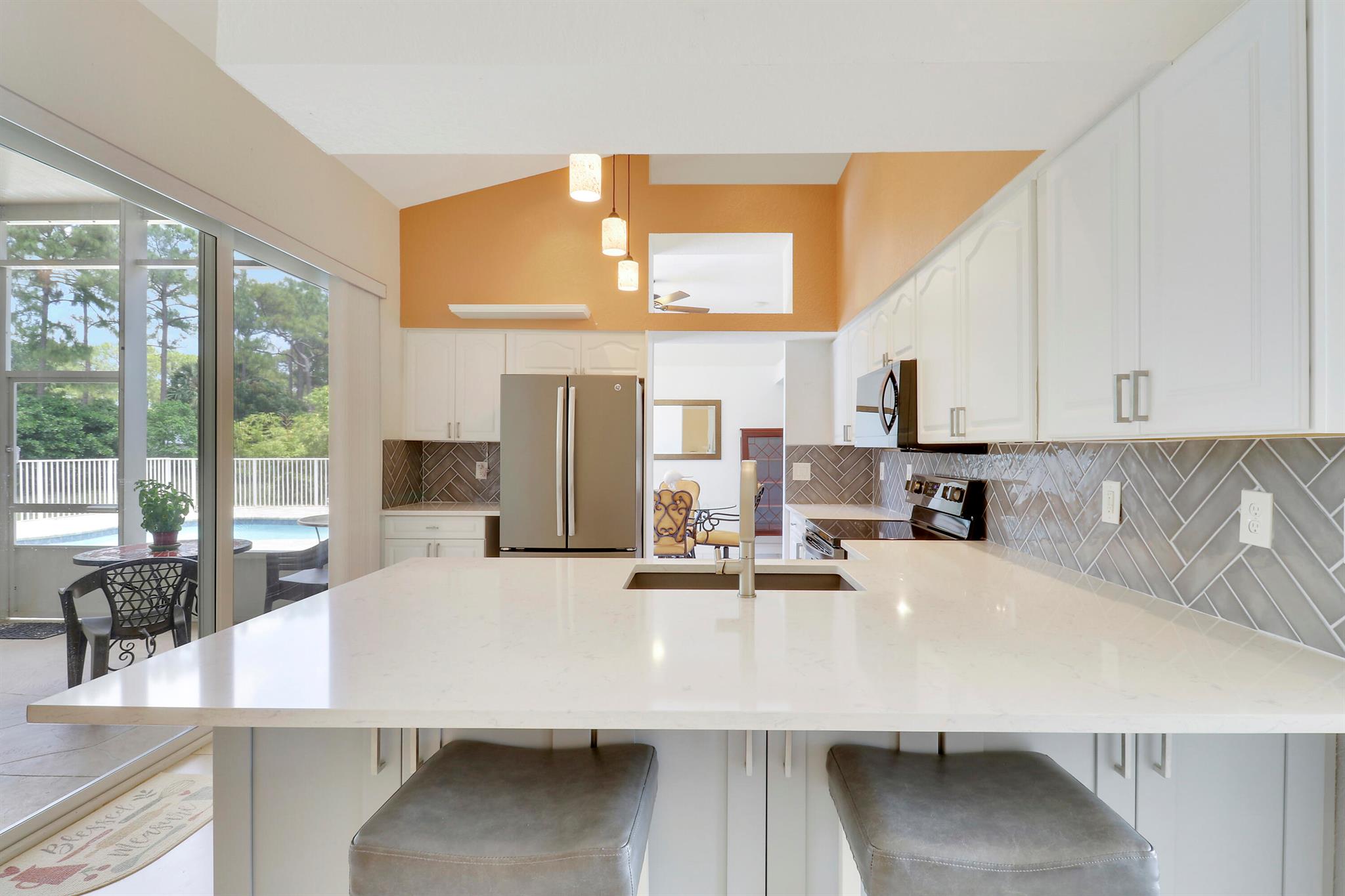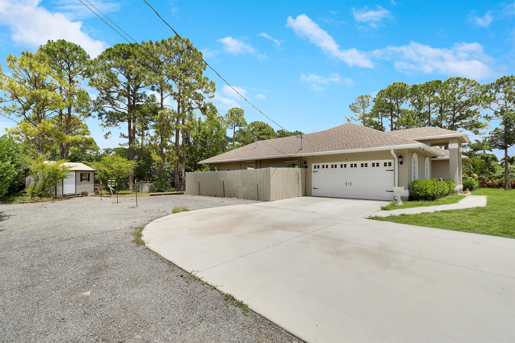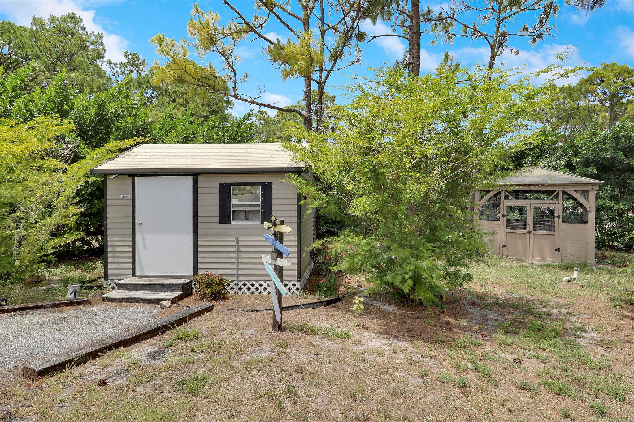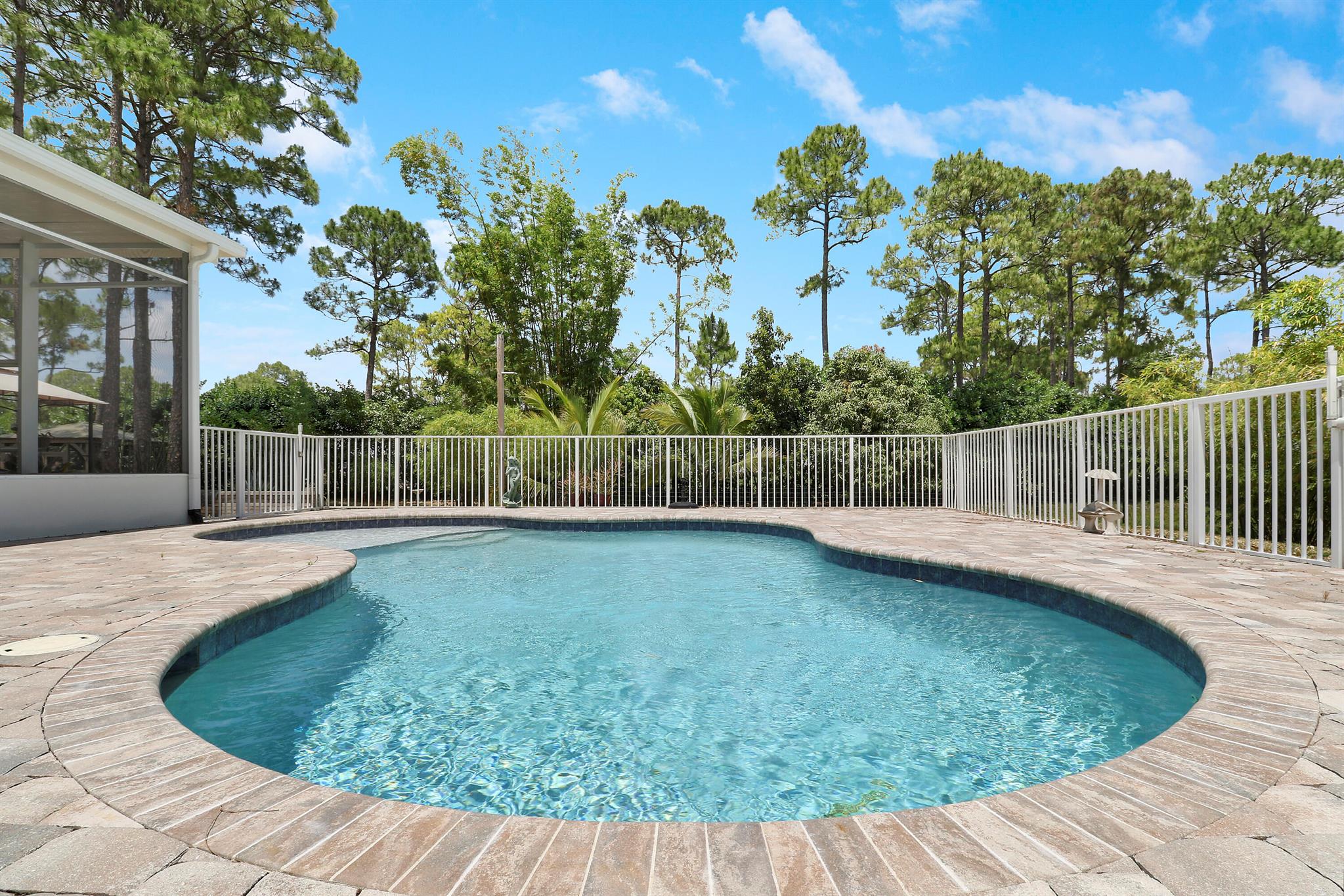 BOM: thru no fault of Seller/Ppty. (Buyer lost Job) HIGH & DRY on a Paved Rd. in the ''Acreage'', this Fully Fenced & Gated Pool Home with Fruit Trees is on a lushly wooded 1.37 acre lot with a Pond. Xtra parking for RV or boats, with separate 50 amp box. No HOA. Included is an outdoor '''Aviary'' & a ''Ted Shed/She Shed'' with Electric & A/C. Lots of Natural Light pours through the Palladian Windows of this 4BR/2BA/2CG updated home. Remodeled kitchen boasts modern Quartz Countertops, Storage Galore & Newer Appliances. Tile Flooring throughout. The large screened-in porch by the fenced pool area offers many entertaining possibilities! Complete Panel Storm Shutters & 2 Impact Sliders (to Patio Area), as well as Primary Bath Impact Window. Enjoy Country Living at its BEST!!