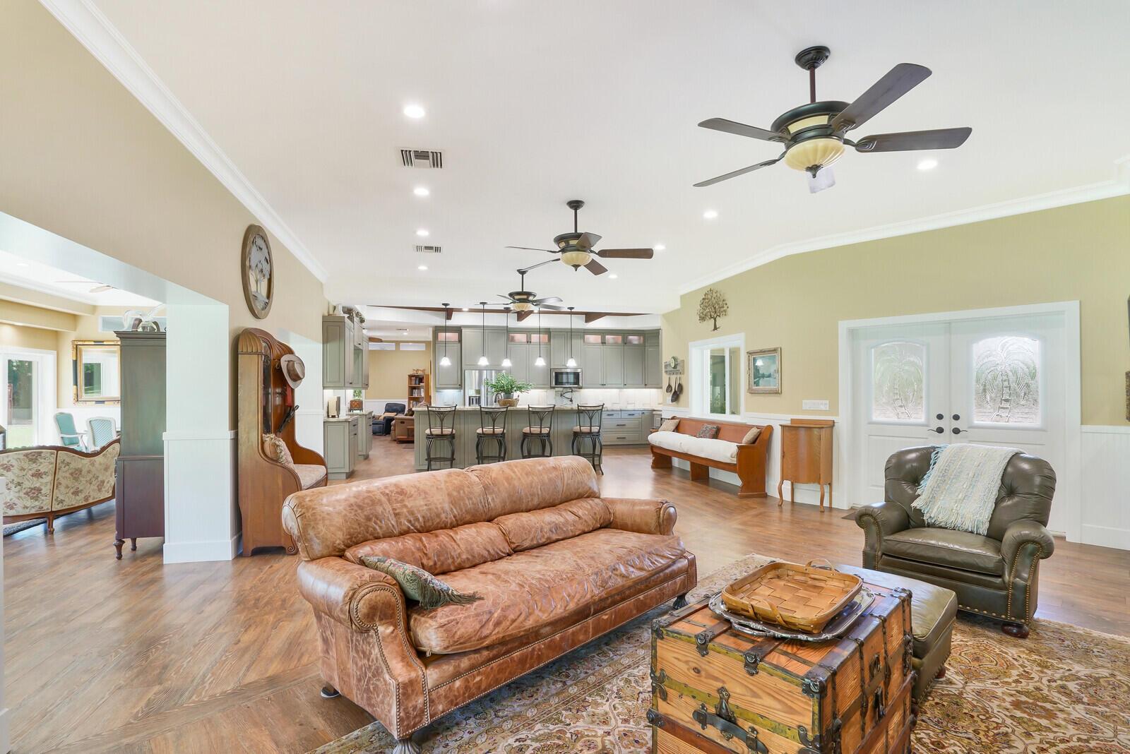 Needle in a Haystack! This Private One Story Oasis sits on 2.39 Acres. Masterfully Reimagined and Redesigned. Reconstructed with New Electrical, Plumbing, Kitchen, Bathrooms, Standing Seam Metal Roof and Custom Millwork. This Private Double Gated Compound is perfect for a Personal Compound, Equestrians, Home Based Business, Airbnb, or Retreat Center. Natural Light Pours into this CBS Built Home w/4 bedroom + Office, 10' High Ceilings throughout, 3 Car Garage with 8,000 sq ft of Brick Paver Circular Driveway. Custom Kitchen with SS Appliances, Granite Counters, Custom soft close Wood Cabinets & Pot Filler. Luxury Commercial Plank Vinyl Flooring throughout.