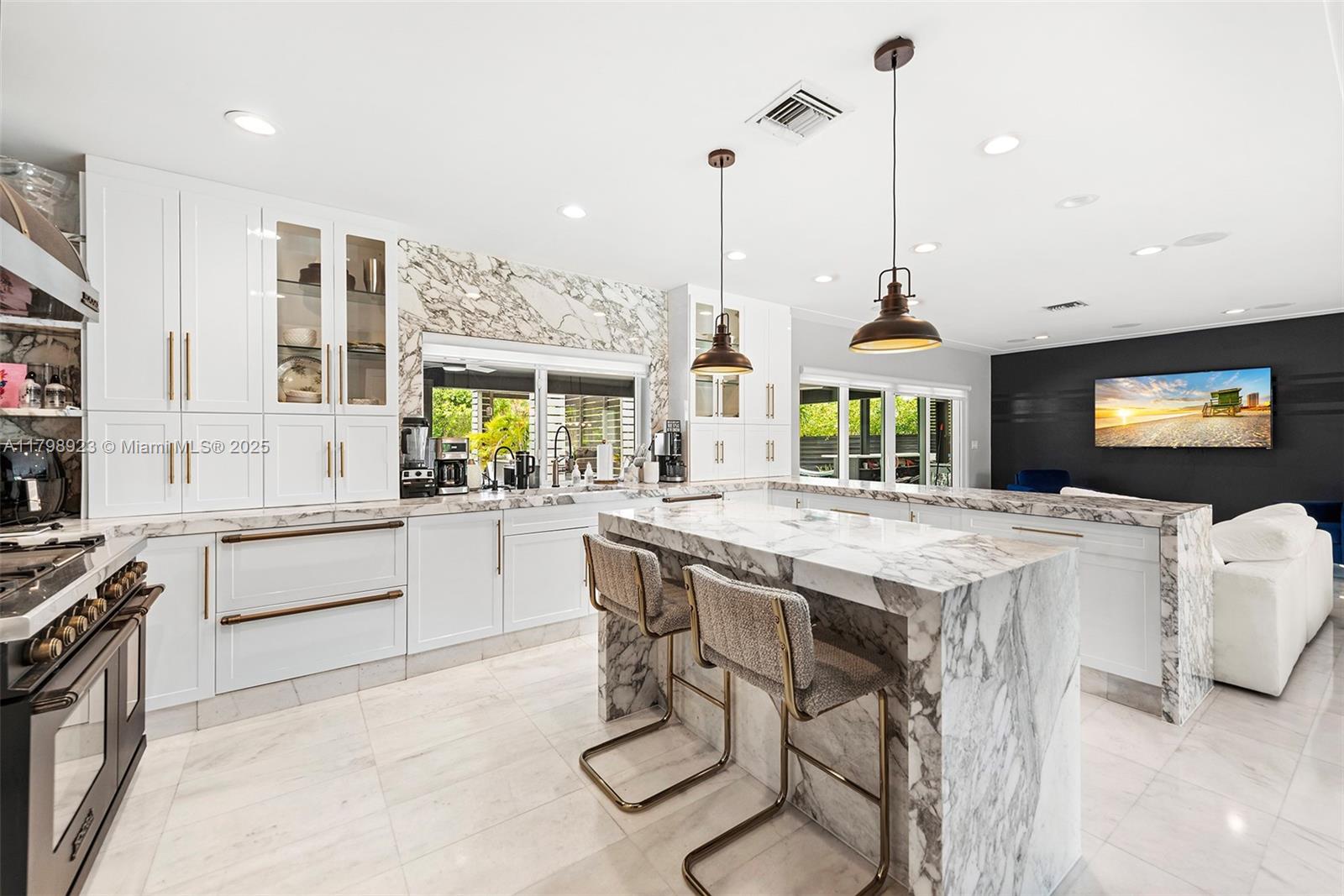 Major Price Reduction – Move-In Ready Waterfront Gem! Experience luxury living in this fully renovated modern masterpiece with over $350,000 in upgrades. Located in the prestigious Eastern Shores community, this home features 60 feet of prime waterfront direct ocean access with no fixed bridges. Perfectly situated between Aventura, Sunny Isles, and Bal Harbour, this spacious 3-bedroom, 3-bathroom residence spans over 3,200 total square feet and is adorned with high-end designer finishes. The chef’s kitchen is outfitted with top-of-the-line appliances and stunning Calacatta marble countertops. Enjoy unmatched living with floor-to-ceiling windows showcasing panoramic water views throughout and a custom summer kitchen, BBQ, wine fridge, and plenty of space to entertain by the water.