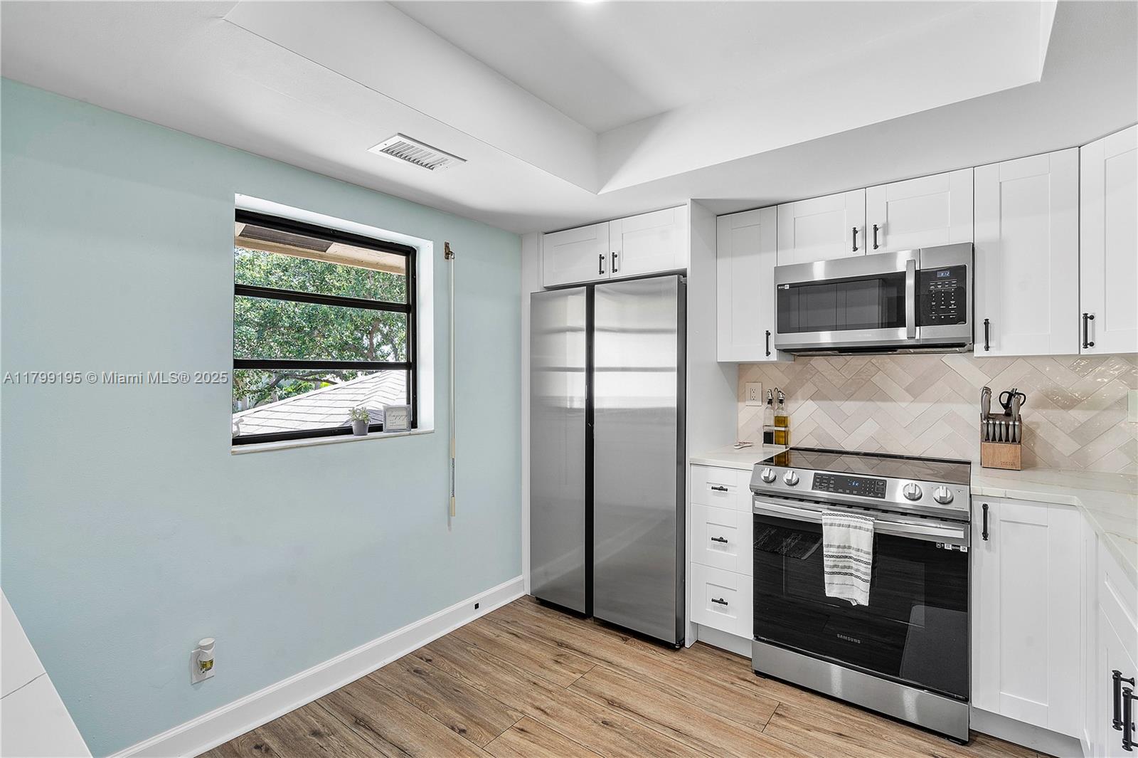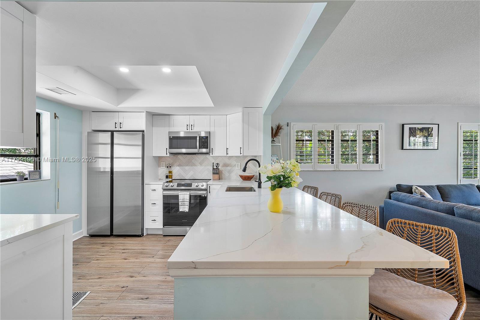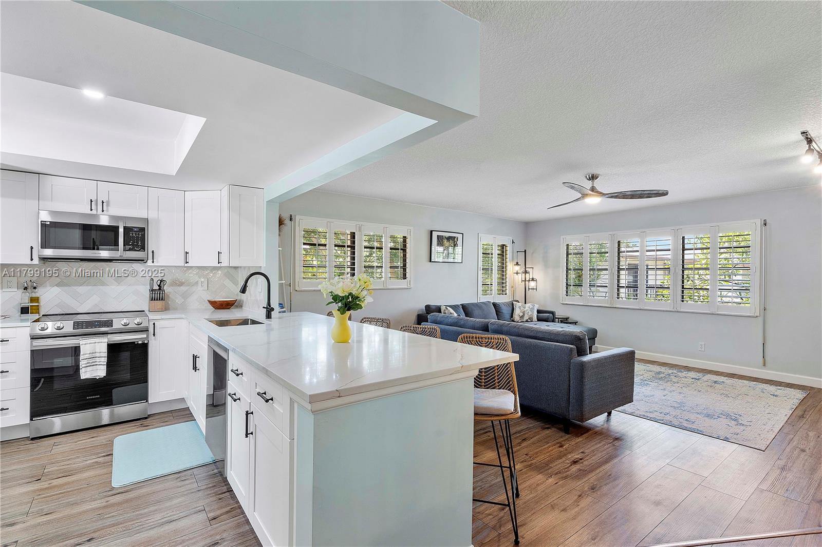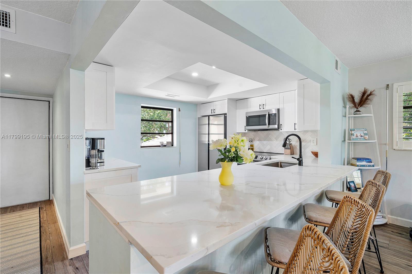 This community qualifies for as little as 5% down! Spacious 2BR/2BA w/ private 1-car garage + driveway in Lighthouse Village, just off US-1 near Lighthouse Point—10 mins to Pompano & Deerfield Beaches. No rental waiting period—lease immediately! Renovated in 2024: kitchen w/ quartz counters, shaker cabinets, SS appliances, LVP flooring, fresh paint, updated fans/lights. Fully Renovated Primary bath w/ frameless glass shower (2024). New electric panel (2024), AC condenser (2023), WH (2025), W/D (2022). Fully funded HOA includes water, sewer, trash, landscaping, roof, reserves, & master insurance. Reserves are fully funded w/ no future assessments; all projects are paid for. Amenities include: pool, clubhouse, & tennis/pickleball court!