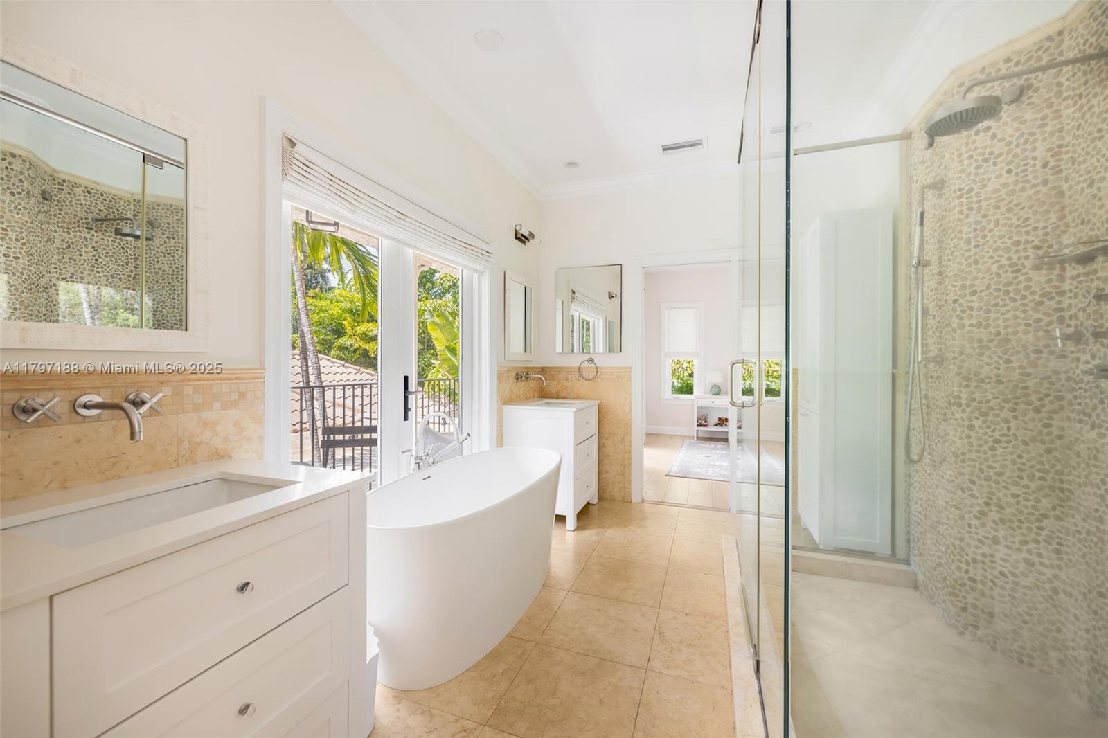 Captivating home in coveted “Ye Little Wood”- a gated enclave nestled along a tree-canopied winding road. Magazine quality total renovation will meet the most discerning buyer’s expectations. Experience a fusion of classic & contemporary design in light-filled living spaces featuring vaulted beamed ceilings, stone fireplace and an abundance of windows - creating a seamless connection between indoor & outdoor spaces. The expansive top-of-the-line kitchen features cooking island, gas range & skylights w/ tree-top views. Charming separate guest house has 1BR/1BA + living room. Enjoy ultra-private outdoor living & entertaining around the tranquil pool and in the magical gardens surrounding the home. Walk or bike to the historic Grove village, top-tier schools and to bayfront parks & marinas.