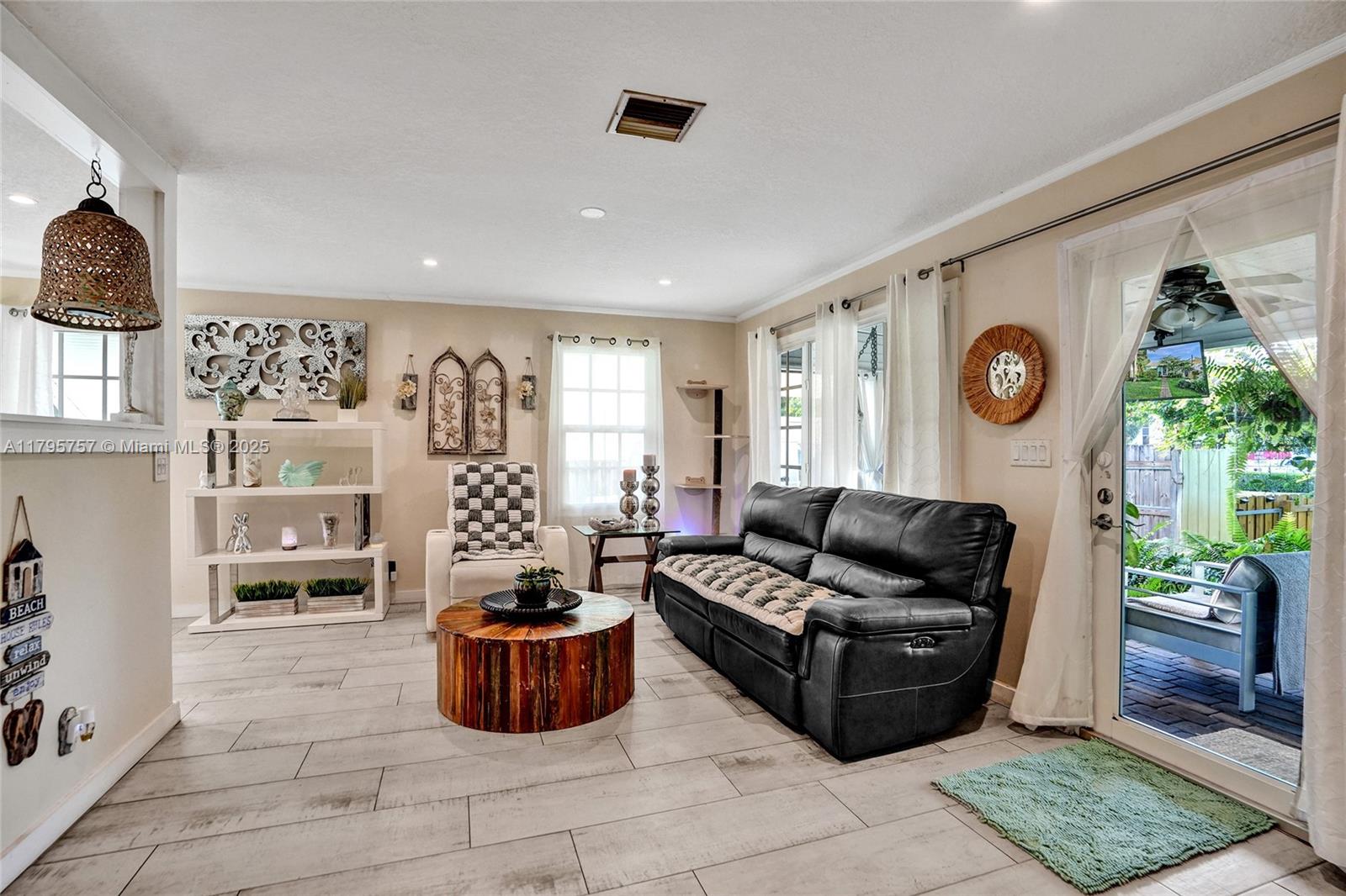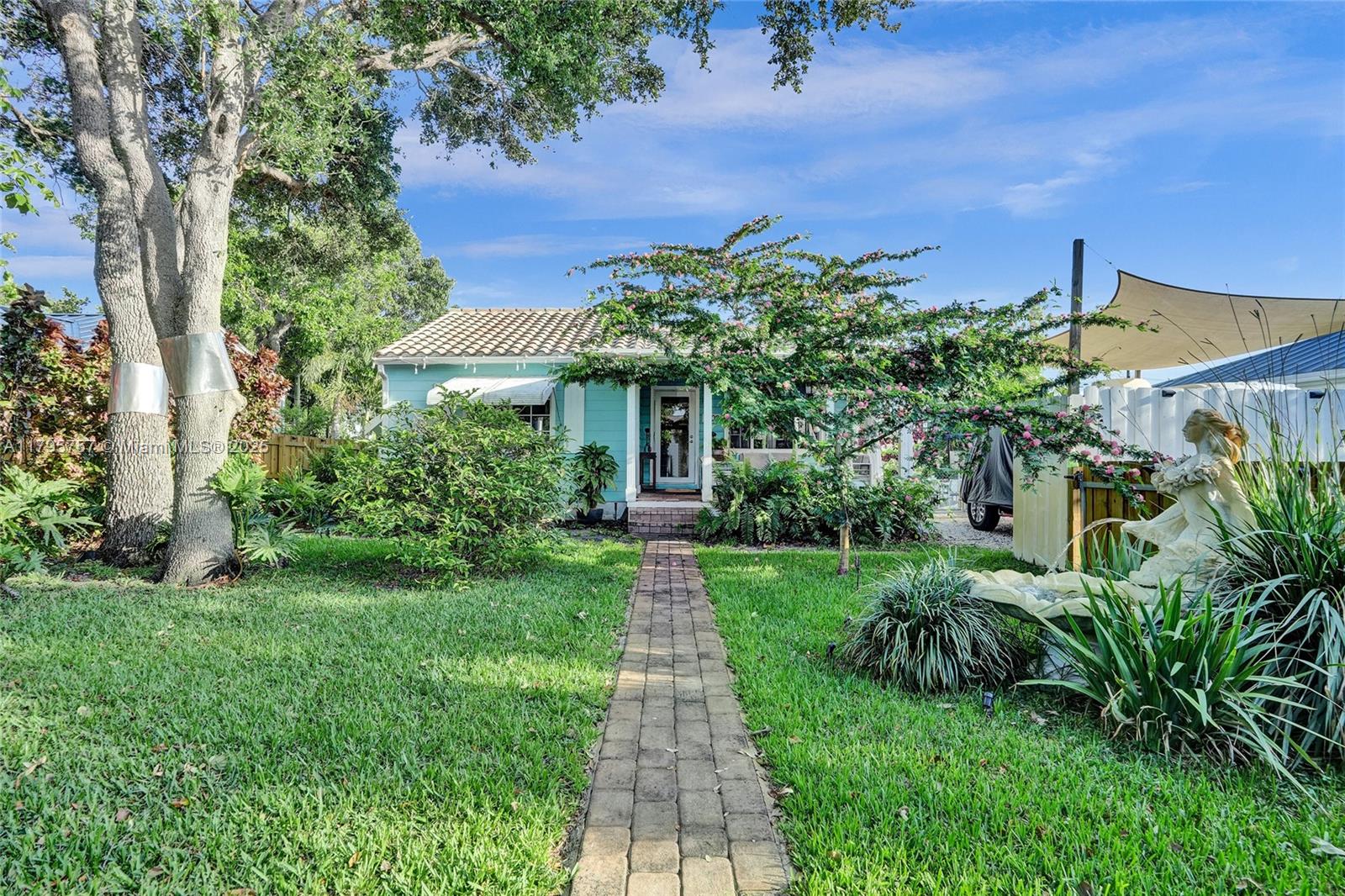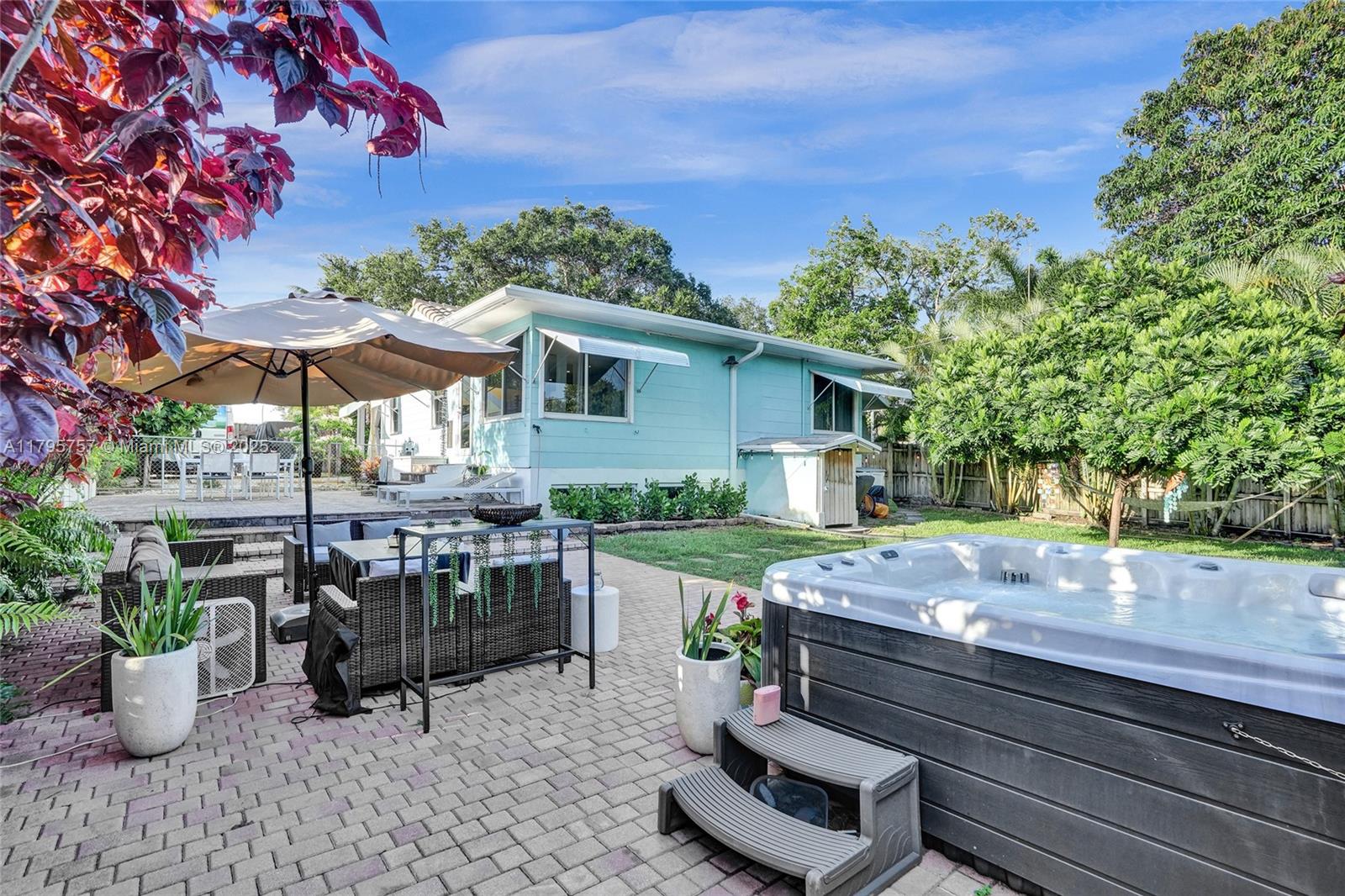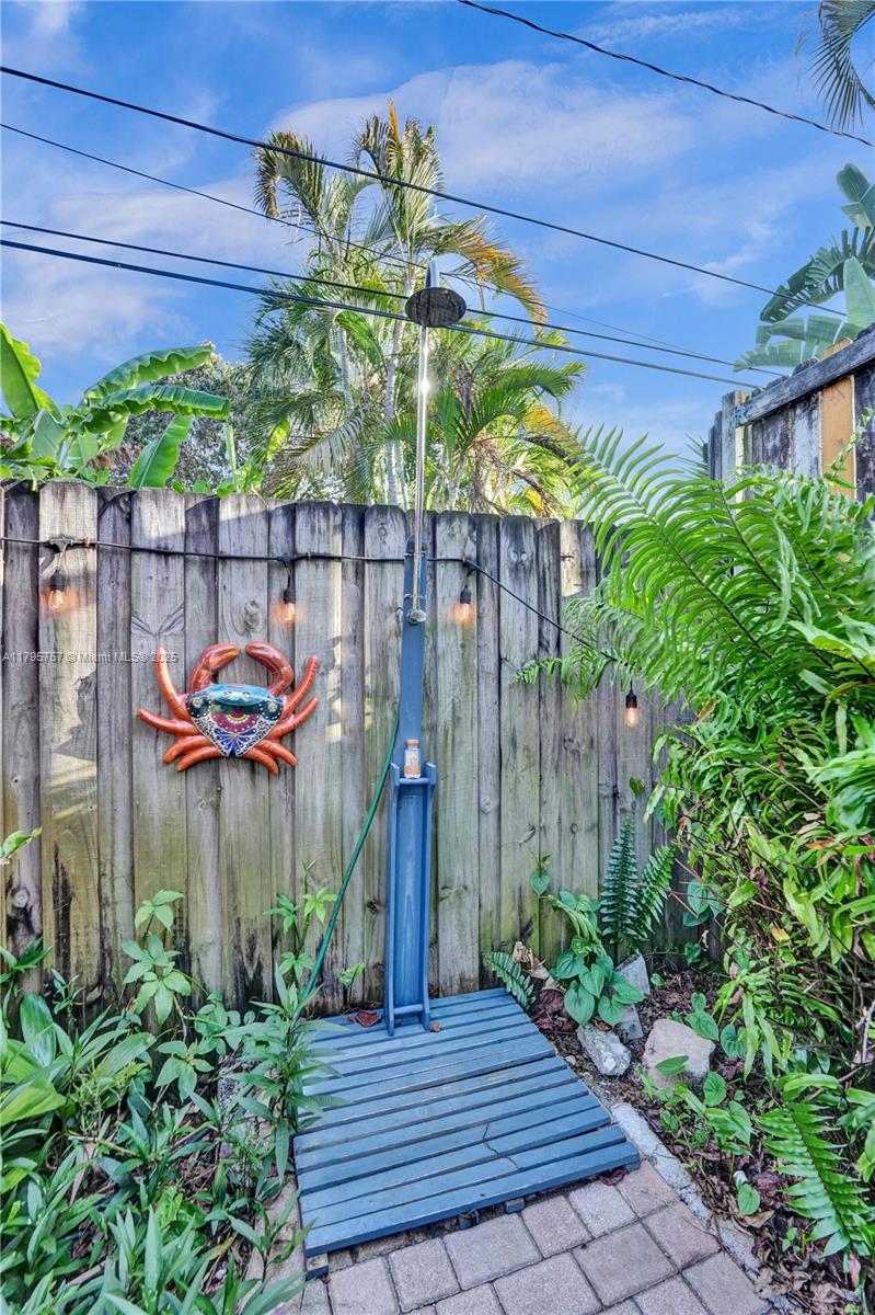 Charming cottage vibe, ranch-style home 1 mile from the beach, tucked away one street off popular Atlantic Blvd. NEW 2021 roof, PVC plumbing, AC 4 yo, 2025 renovated primary bathroom, hurricane impact windows/doors, & spacious basement with both interior & private exterior access, perfect for guests, storage, or studio. Open kitchen with white cabinetry, marble countertops, & stainless steel appliances. Island provides additional prep space & casual seating, seamlessly transitioning into dining area. Large fully enclosed yard with garden, porch & outdoor area ideal for entertaining or relaxing under the sun. Enjoy the zen-inspired outdoor shower, or soak under the stars in the private jacuzzi included with the sale. Oversized driveway perfect for vehicle, boats, jet skis, work trucks etc.