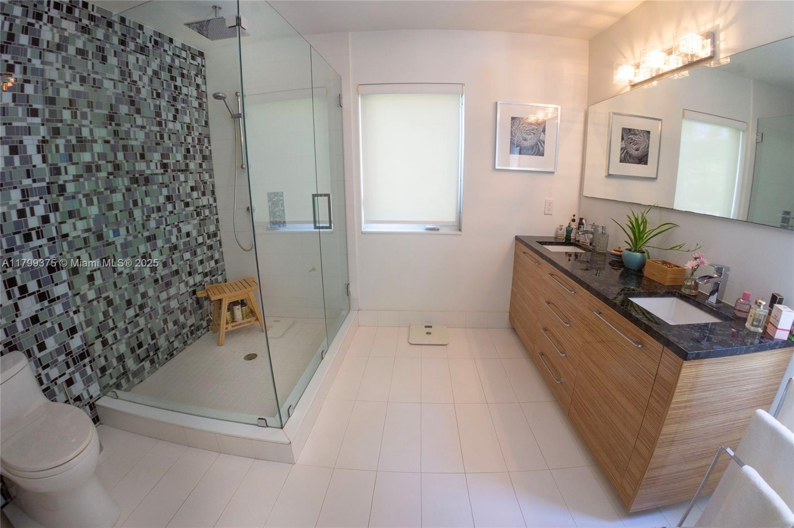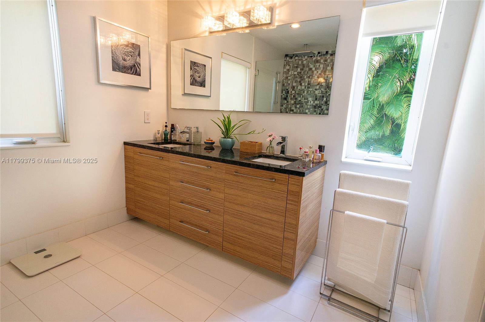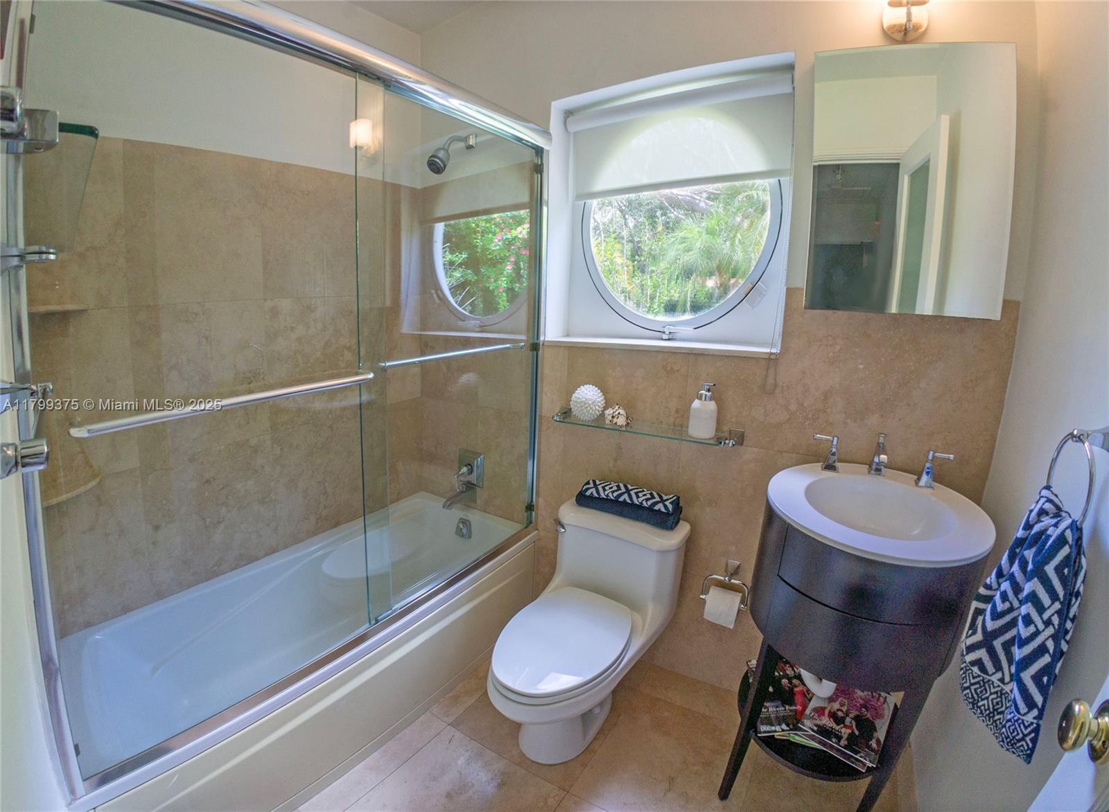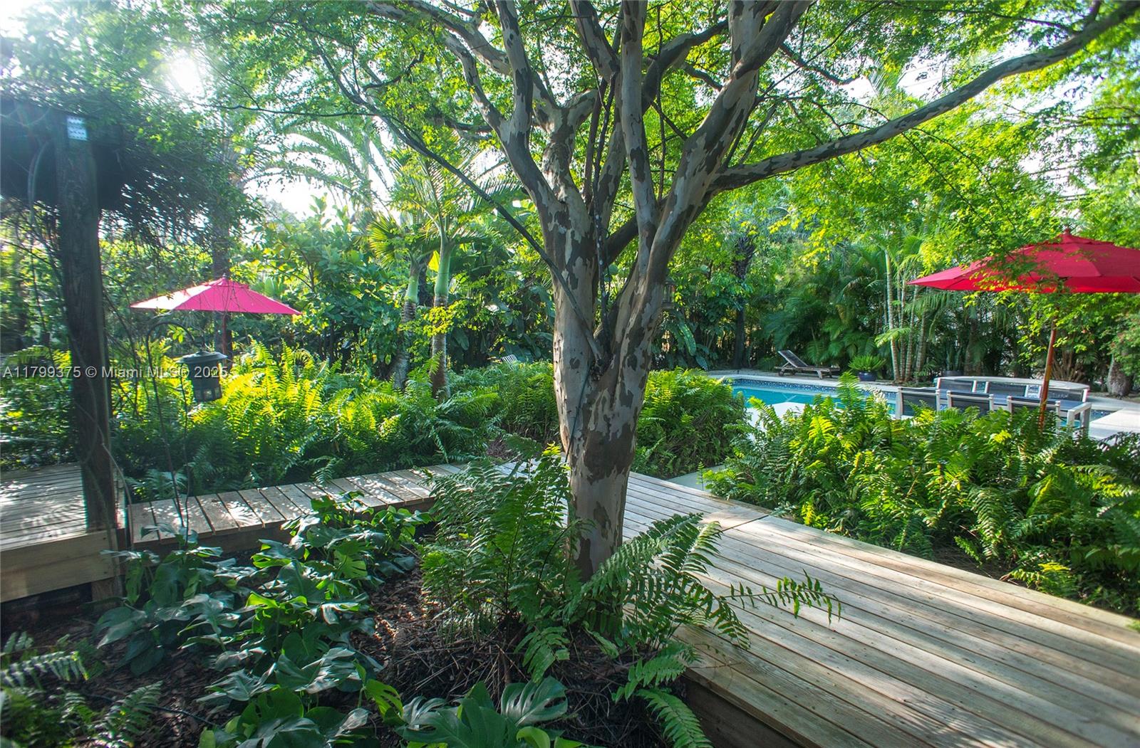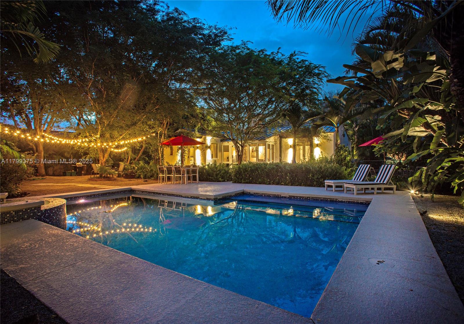 Tropical Charm meets California Cool in a unique pool home in prime Miami Shores location. This storybook house blends vintage character with modern updates and artistic touches w/ a serene private backyard on an oversized 11,700 sq ft lot. Non flood zone. This bright airy home features a desirable split-bedroom layout. The expansive master suite offers generous walk-through closets, a spa-like bathroom and direct access to the lush backyard. A sunny Family Room opens to shaded wood decks and large pool with sun shelf and jacuzzi, ideal for lounging and entertaining! Laundry room w/ ample storage, new spacious storage shed, newer aluminum roof. Live the Miami Shores lifestyle, oak-lined streets, minutes to top schools, golf course, trendy restaurants, shops and beaches. Actual Sq Ft 1,850