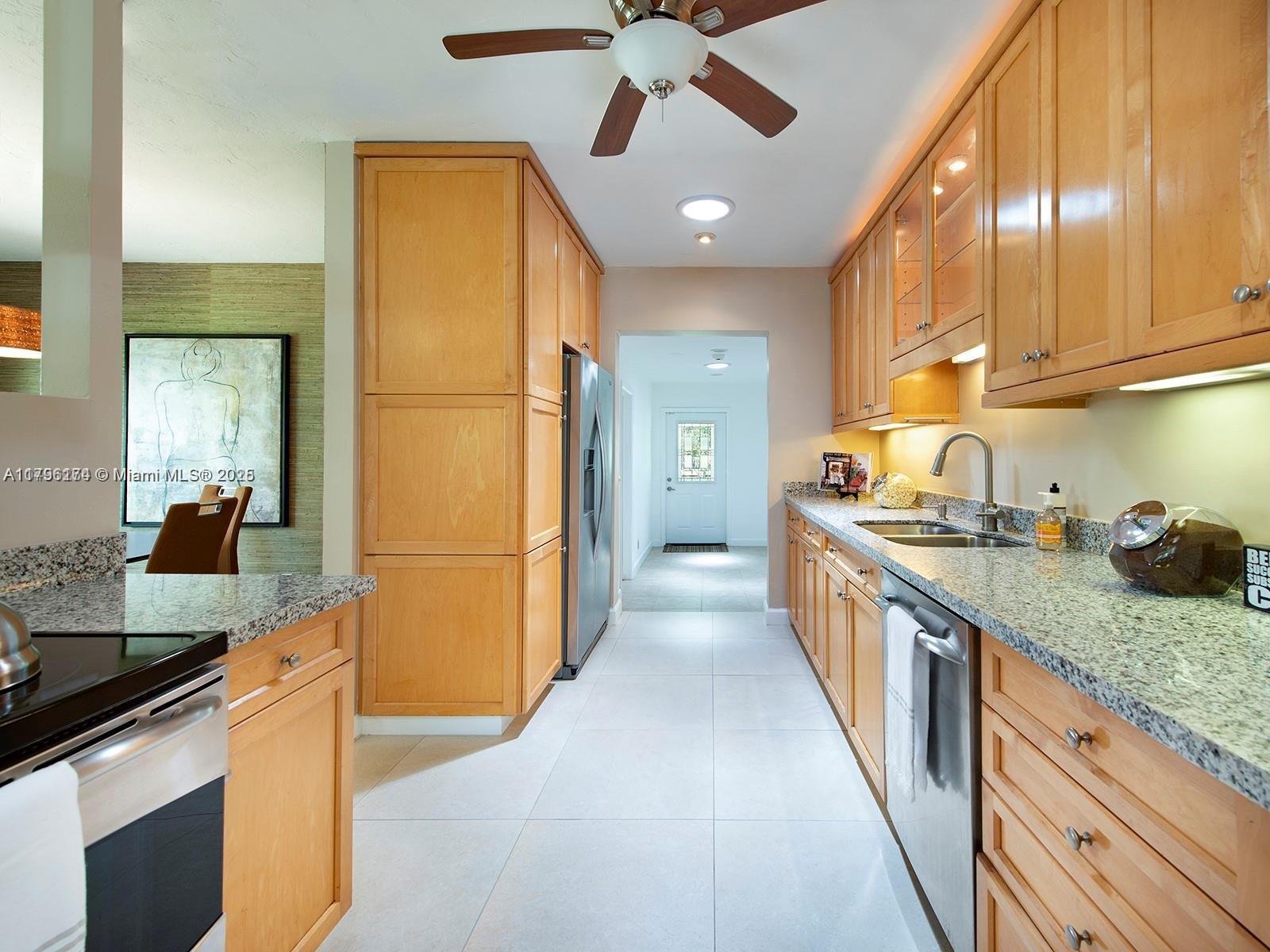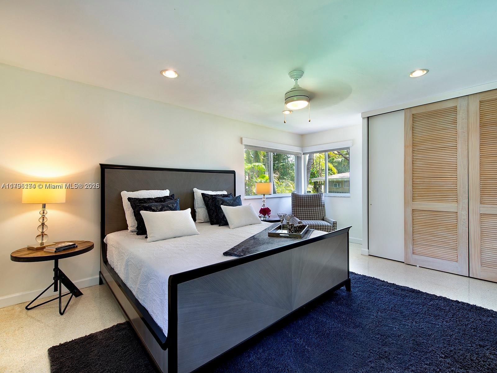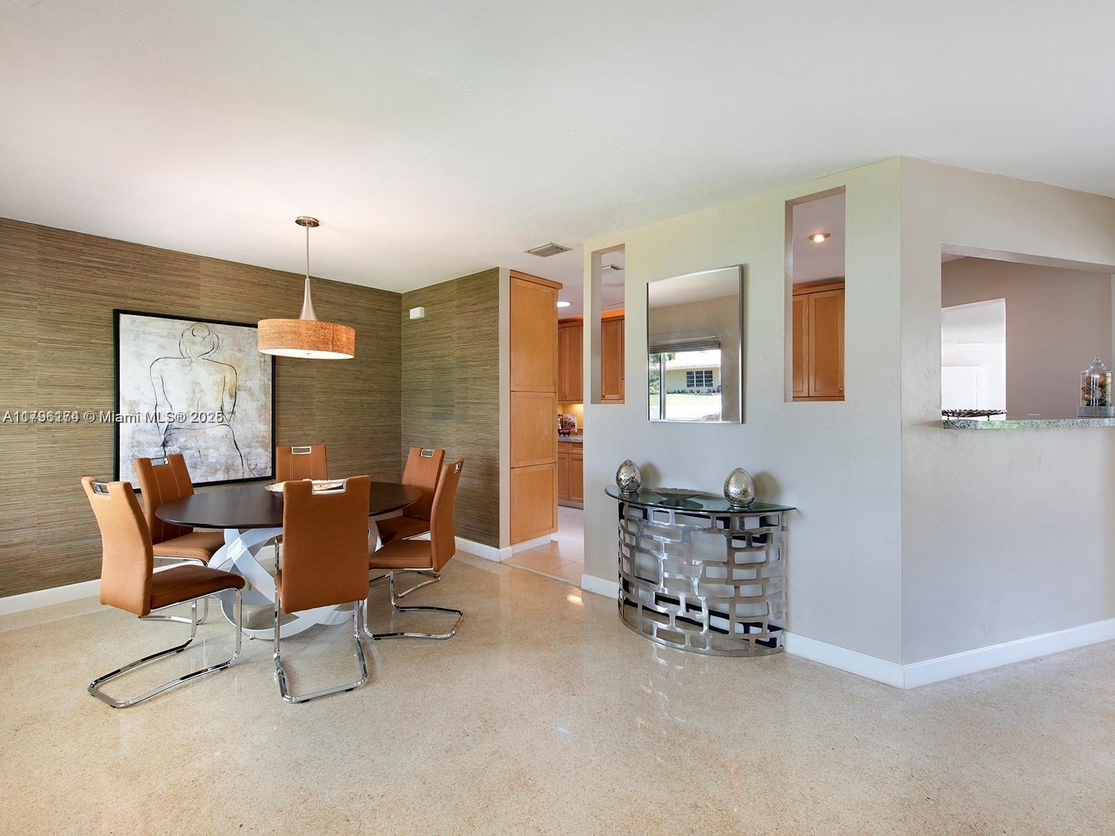 Spacious mid-century modern family home, located on an expansive, oversized lot in Miami Shores, steps from the golf course and Miami Country Day School. Comfortable split floor plan includes 4 bedrooms, 3 bathrooms, laundry room, storage room, double carport, large driveway. Original terrazzo floors in the living room extend into a bright, window-lined Florida room that overlooks stunning, recently updated pool (2019). Separate cabana perfect for entertaining or an artist studio. Notable features include mature landscaping providing privacy and shade, skylights, impact windows, stainless steel appliances, and granite countertops. This exceptional property presents a rare opportunity to purchase a large 2799 SF home with ample room for expansion on 17,875 SF lot. Photos 2018. Needs TLC.