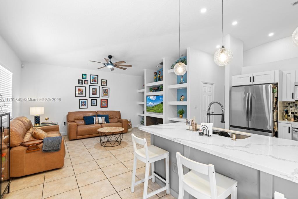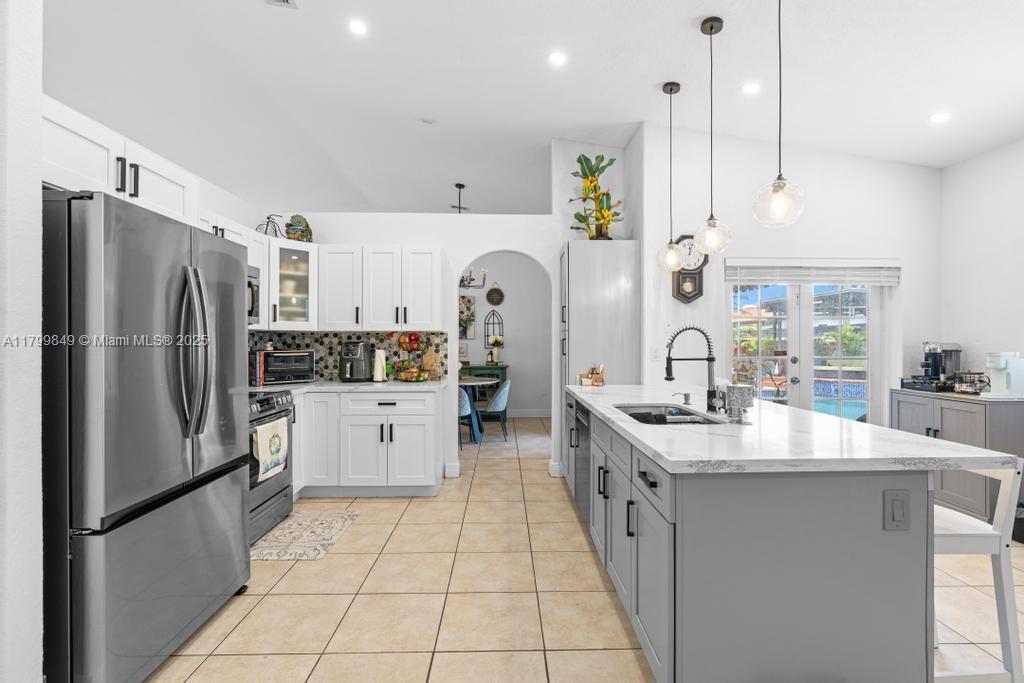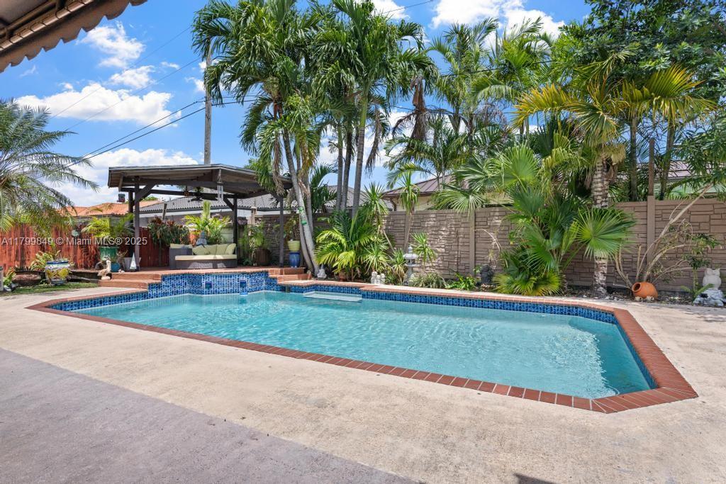 Welcome to your slice of paradise in the desirable Miami Lakes area! This beautifully designed 3-bedroom, 2-bathroom home is perfect for families and entertainers alike. Step inside to discover a brand-new kitchen that boasts elegant marble countertops and modern stainless appliances, ideal for culinary enthusiasts. The spacious master bedroom features a luxurious newly renovated bathroom, providing a serene retreat for relaxation. Enjoy Florida's sunshine in your expansive outdoor space, complete with a large pool, generous patio area, and outdoor kitchen, are perfect for hosting gatherings or simply lounging in the sun. With a two-car convertible garage and a spacious driveway, parking is never an issue. Don't miss your chance to make your dream home a reality!