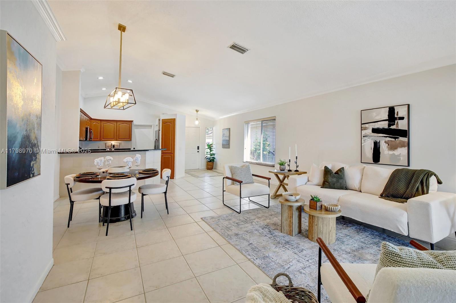 Enjoy beautiful sunsets and peaceful water views from this charming 3-bedroom, 2-bathroom home in San Sebastian, Weston. The home features high ceilings, tile floors in the main living areas, and laminate wood flooring in the bedrooms. A split floor plan offers privacy, with the spacious master suite set apart from the secondary bedrooms. The open kitchen is equipped with wood cabinets, stainless steel appliances, and granite countertops. New impact door lead to a screened-in patio where you can relax and take in the serene lake view. San Sebastian offers desirable amenities such as a community pool, playground, and access to top-rated schools. Conveniently situated near parks, shopping, dining, and entertainment.