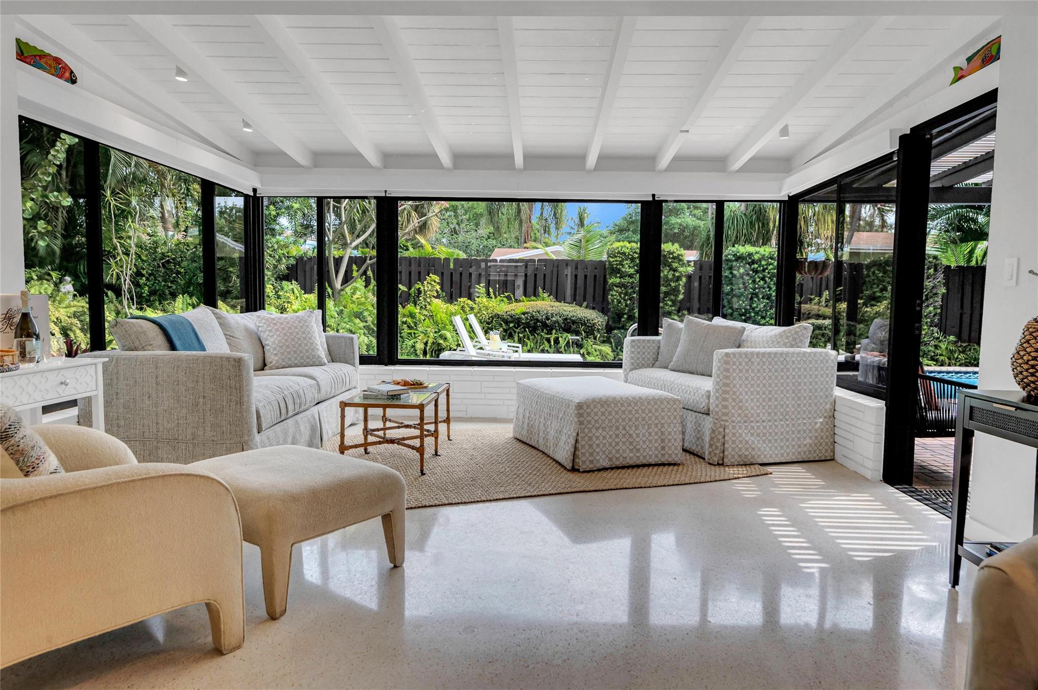 Boho-chic 3BR/2BA bungalow in Fort Lauderdale’s exclusive Harbor Beach Inlet neighborhood. This open-concept home features original refinished terrazzo floors throughout with 2 spacious living areas, fully equipped kitchen, dining room for 8, & a laundry room. The lush tropical backyard is a private oasis with a heated pool, outdoor dining for 6, grill, & loungers—perfect for entertaining & relaxing. Attached carport for 2 plus a driveway for an additional 2 cars. Ideally located .5mi from world-renowned Pier Sixty-Six, Port Everglades, Las Olas, & top restaurants. Whether used as a private retreat or high-demand rental, this home offers the perfect blend of style, comfort, & unbeatable beachside convenience. Currently a high income producing Luxury Short term rental w. Latitude Key.