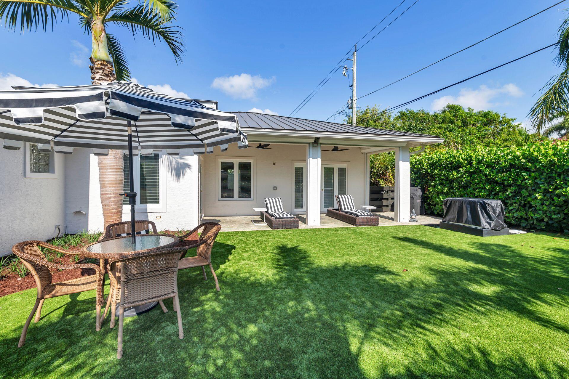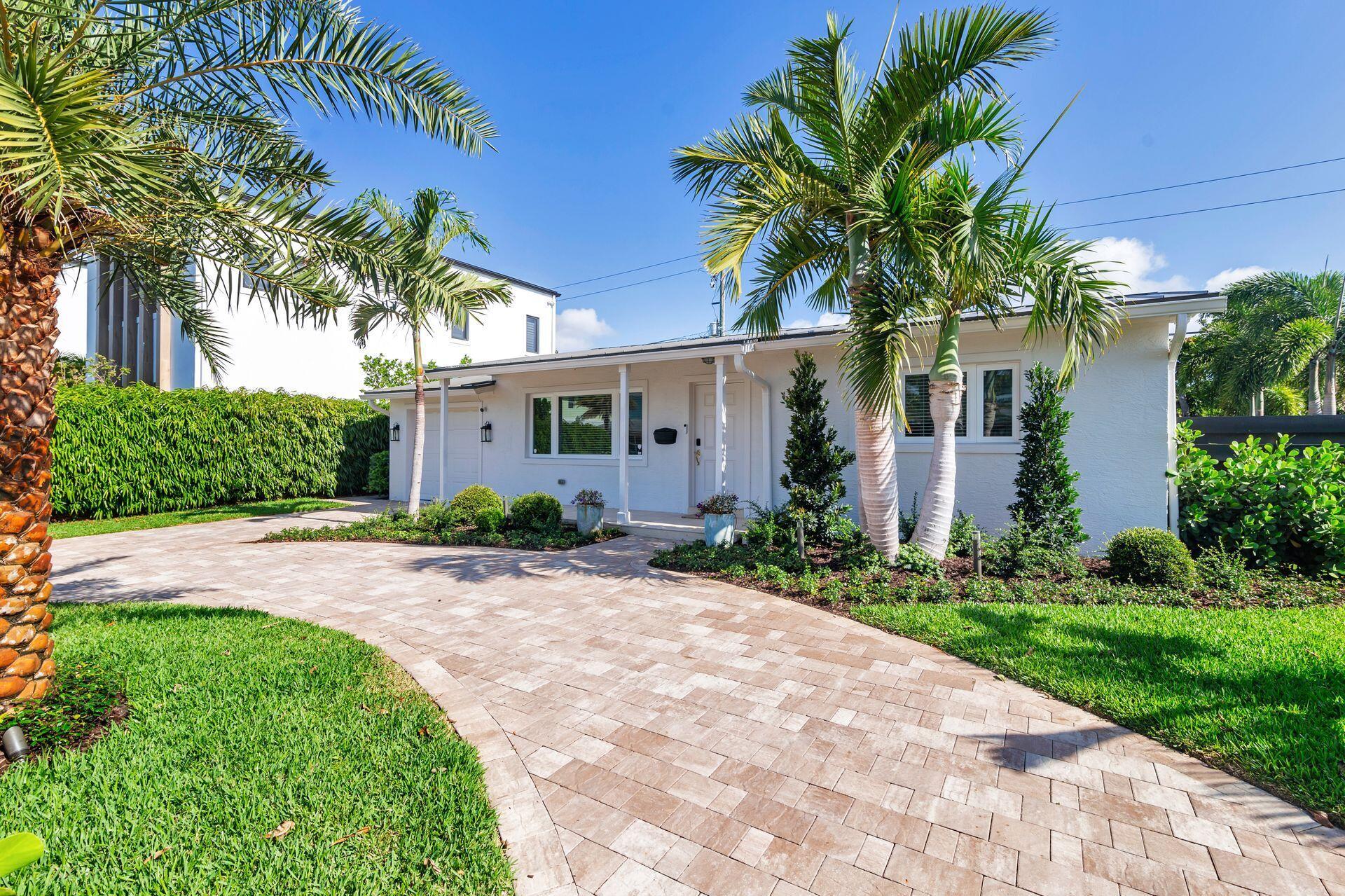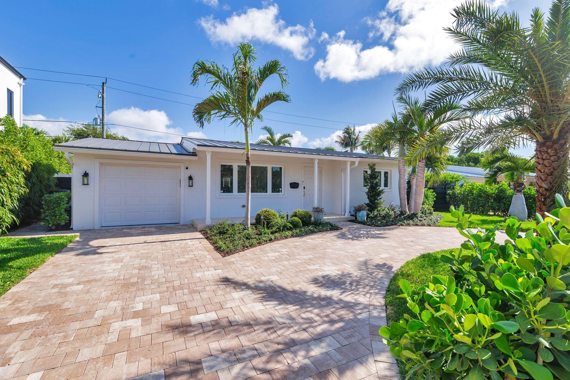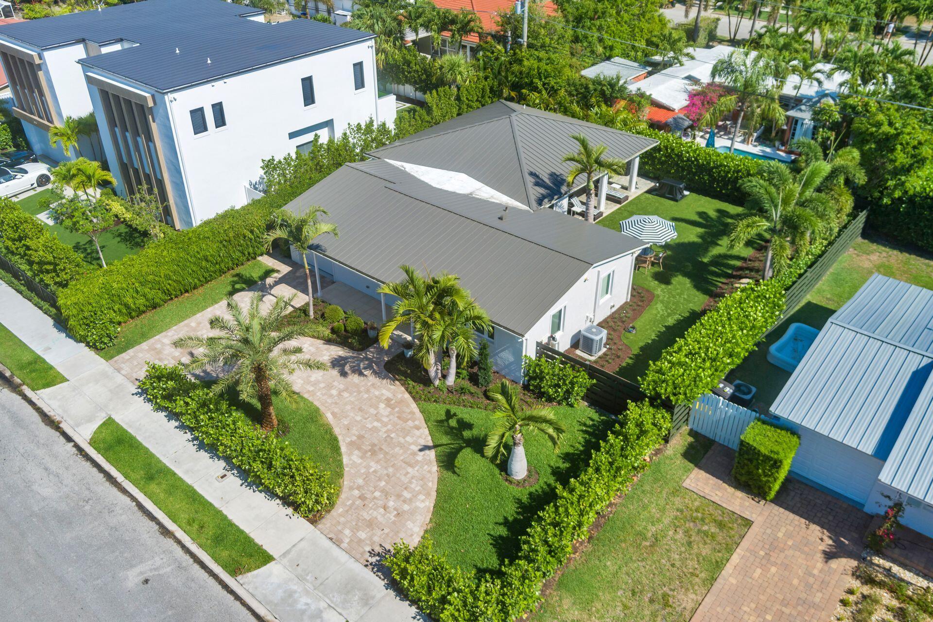 Set among waterfront and multi-million dollar properties, this 3BR/2BTH located in SoSo is just delightful. Raised seam metal roof, freshly painted, gorgeous curb appeal, welcoming porch, light & bright interiors, impact windows, 22kw generator & garage! Tile and wood floors, large family room & dining area with10 foot ceilings, great open kitchen with granite counters & stainless steel appliances. Primary bedroom with ensuite bath, French doors to lanai & walk-in closet. Two comfortable guest bedrooms have large closets & beautiful marble guest bath. Beautiful lanai overlooks private lush tropical gardens and faces east to catch Intracoastal breezes. Paver circular driveway. Close to Flagler Drive Promenade, Intracoastal Waterway, Palm Beach Island, Antique Row, CityPlace and PBI airport