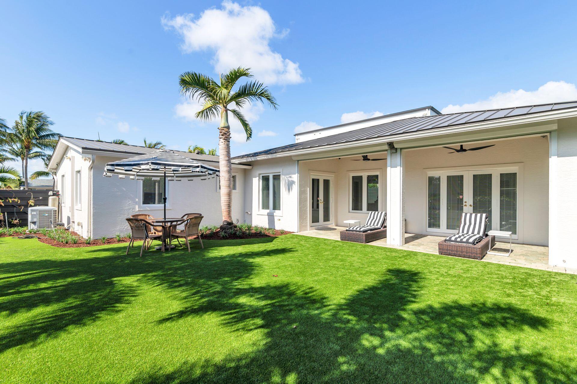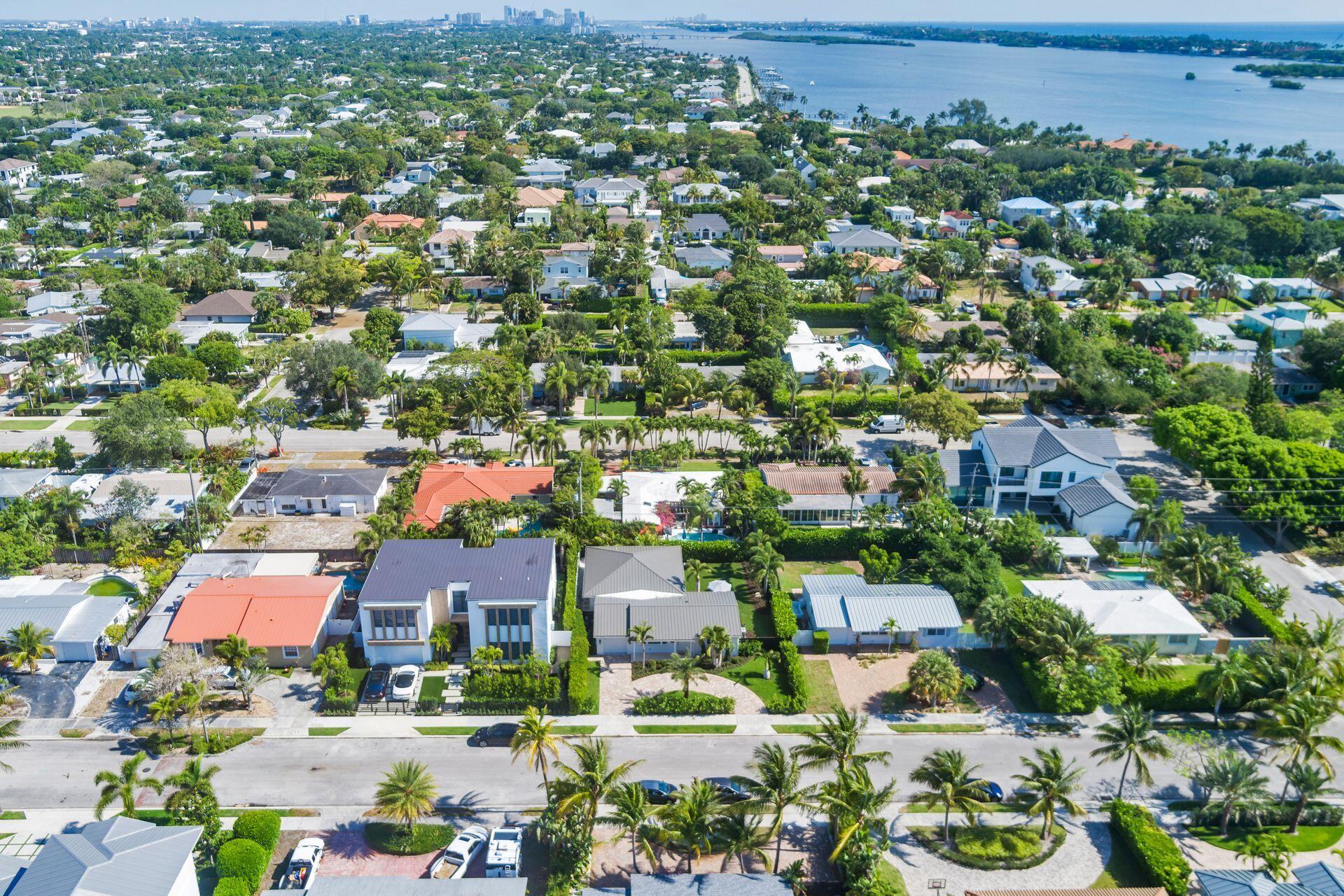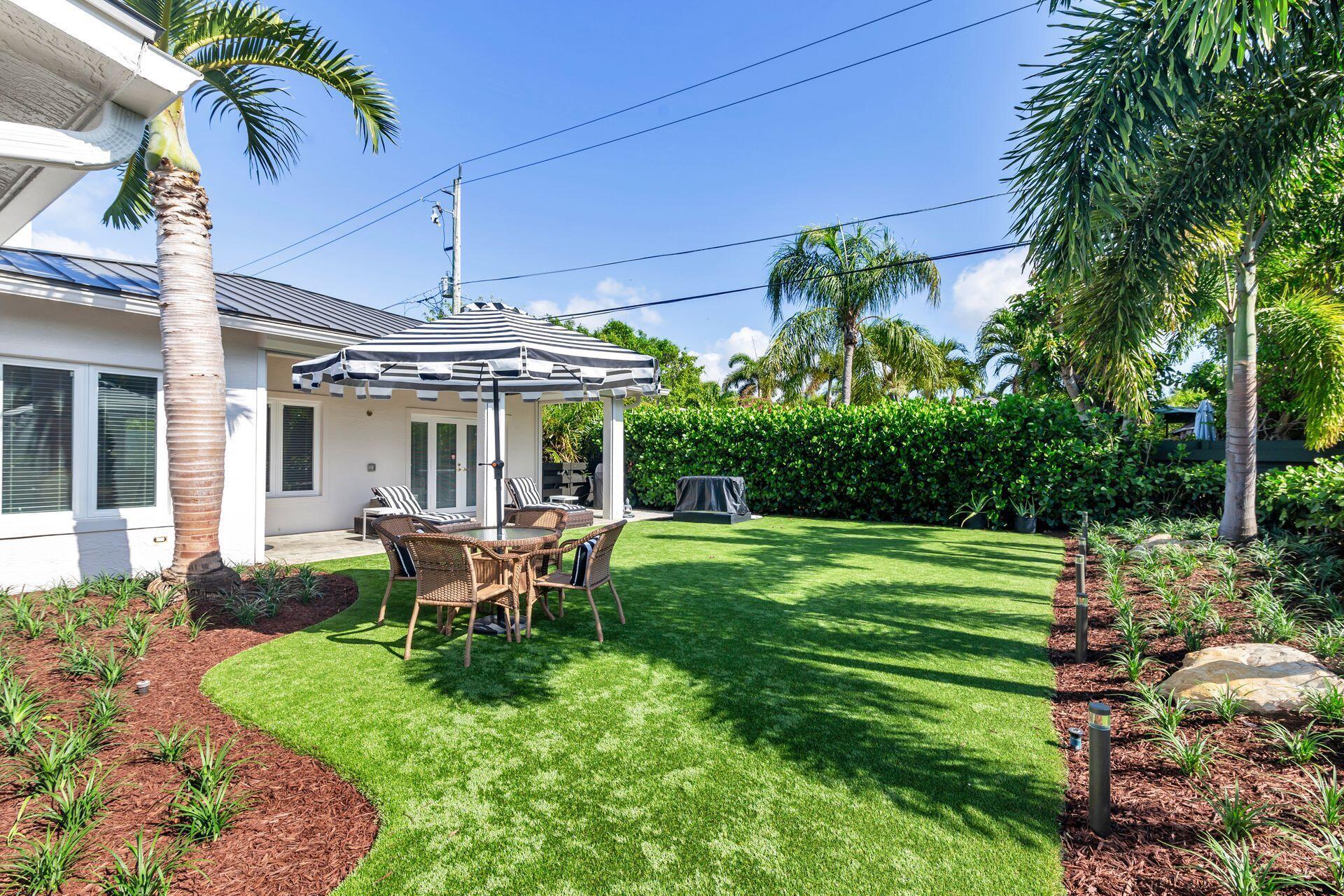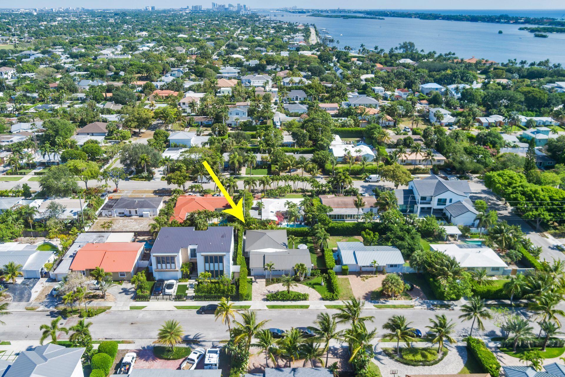 Set among waterfront and multi-million dollar properties, this 3BR/2BTH located in SoSo is just delightful. Raised seam metal roof, freshly painted, gorgeous curb appeal, welcoming porch, light & bright interiors, impact windows, 22kw generator & garage! Tile and wood floors, large family room & dining area with10 foot ceilings, great open kitchen with granite counters & stainless steel appliances. Primary bedroom with ensuite bath, French doors to lanai & walk-in closet. Two comfortable guest bedrooms have large closets & beautiful marble guest bath. Beautiful lanai overlooks private lush tropical gardens and faces east to catch Intracoastal breezes. Paver circular driveway. Close to Flagler Drive Promenade, Intracoastal Waterway, Palm Beach Island, Antique Row, CityPlace and PBI airport