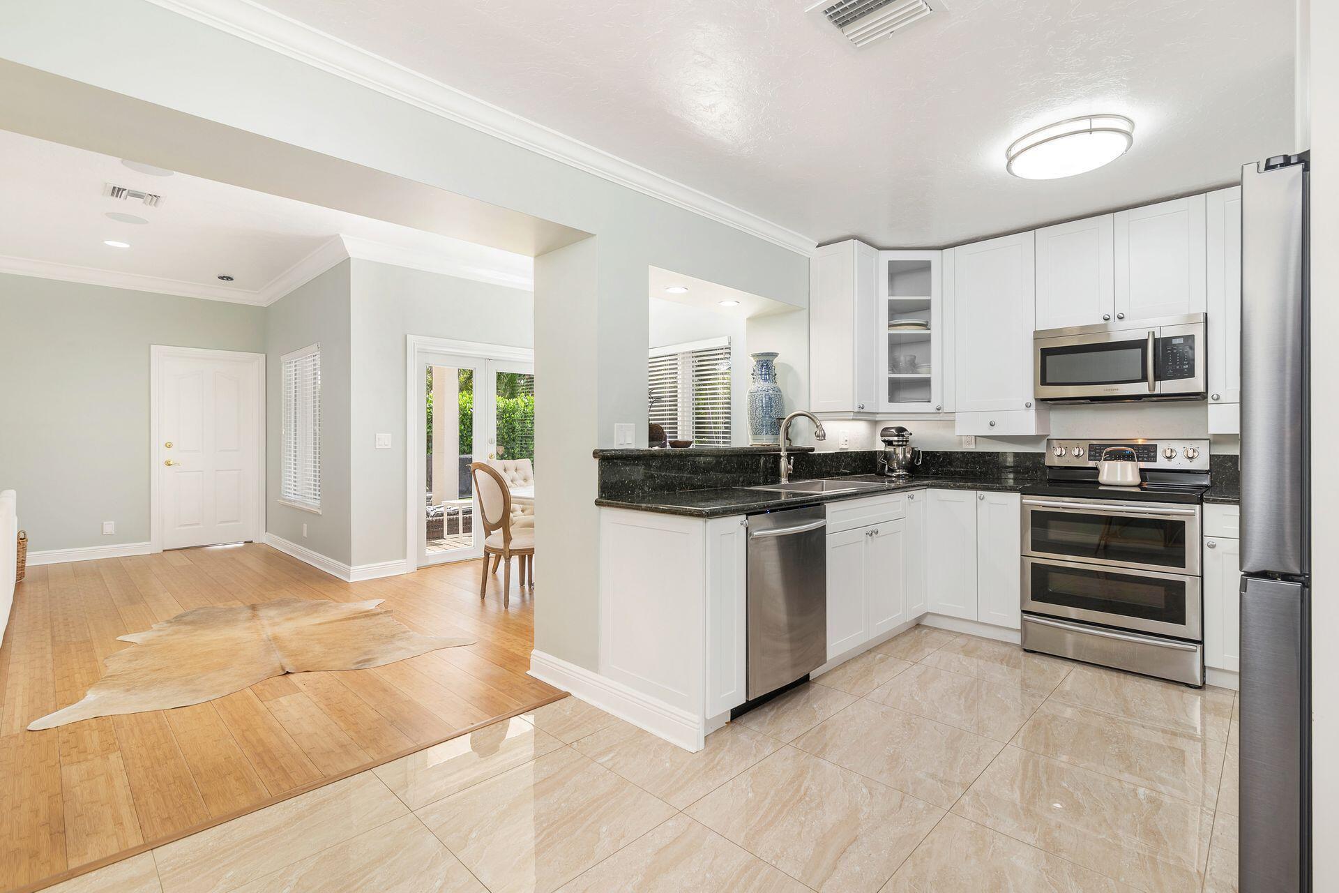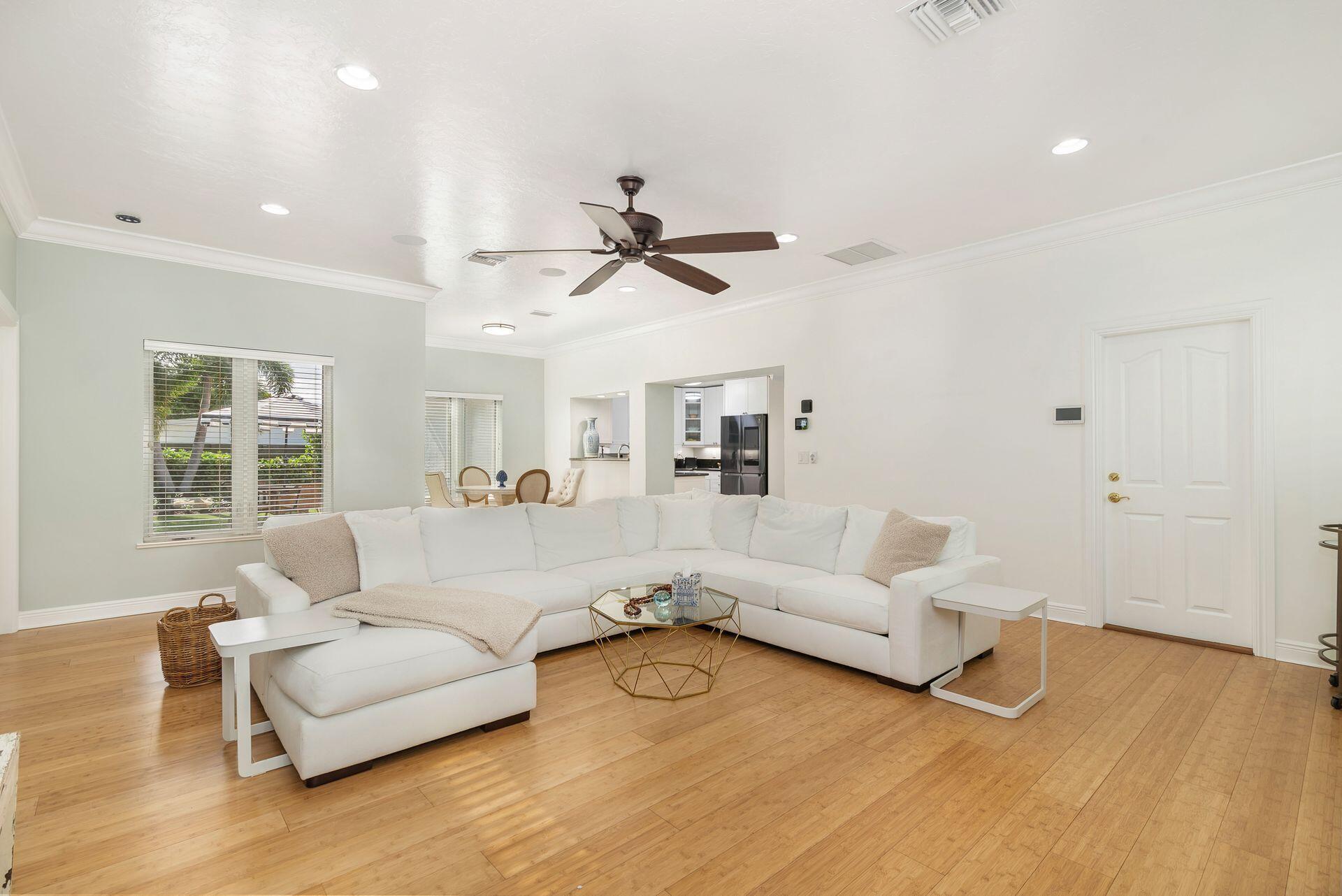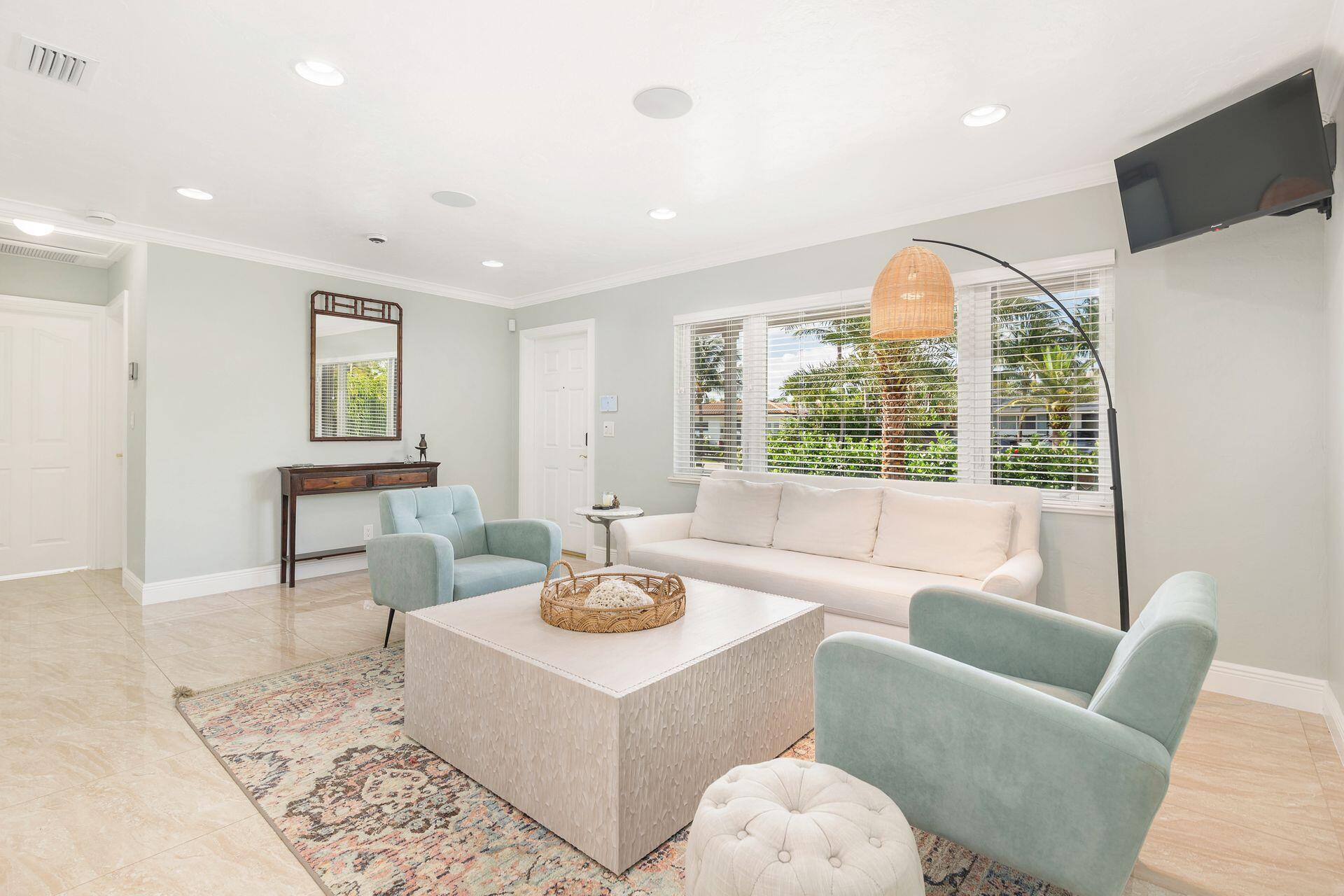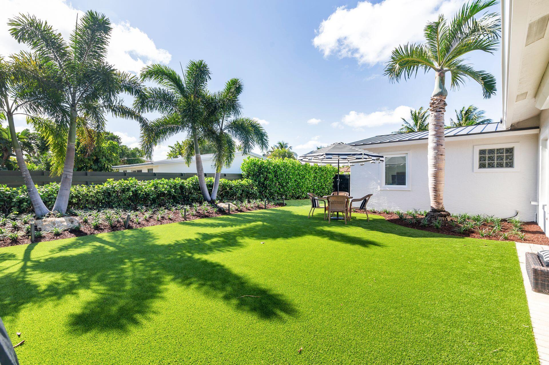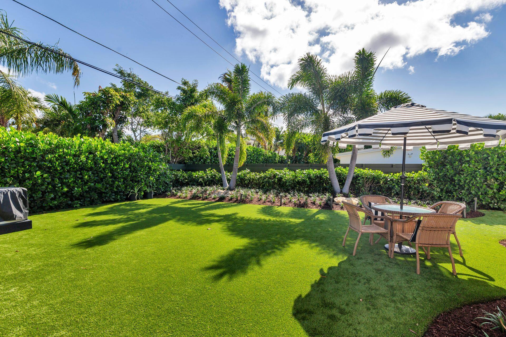Set among waterfront and multi-million dollar properties, this 3BR/2BTH located in SoSo is just delightful. Raised seam metal roof, freshly painted, gorgeous curb appeal, welcoming porch, light & bright interiors, impact windows, 22kw generator & garage! Tile and wood floors, large family room & dining area with10 foot ceilings, great open kitchen with granite counters & stainless steel appliances. Primary bedroom with ensuite bath, French doors to lanai & walk-in closet. Two comfortable guest bedrooms have large closets & beautiful marble guest bath. Beautiful lanai overlooks private lush tropical gardens and faces east to catch Intracoastal breezes. Paver circular driveway. Close to Flagler Drive Promenade, Intracoastal Waterway, Palm Beach Island, Antique Row, CityPlace and PBI airport