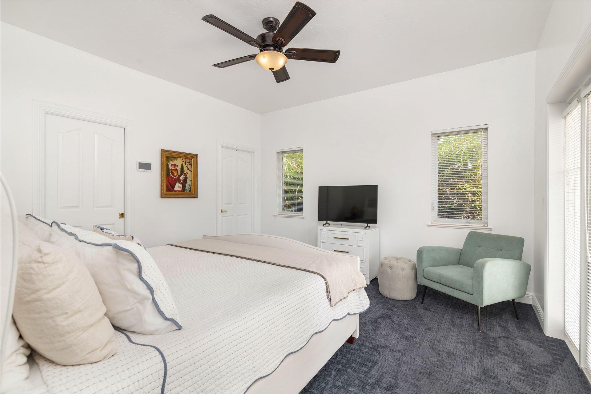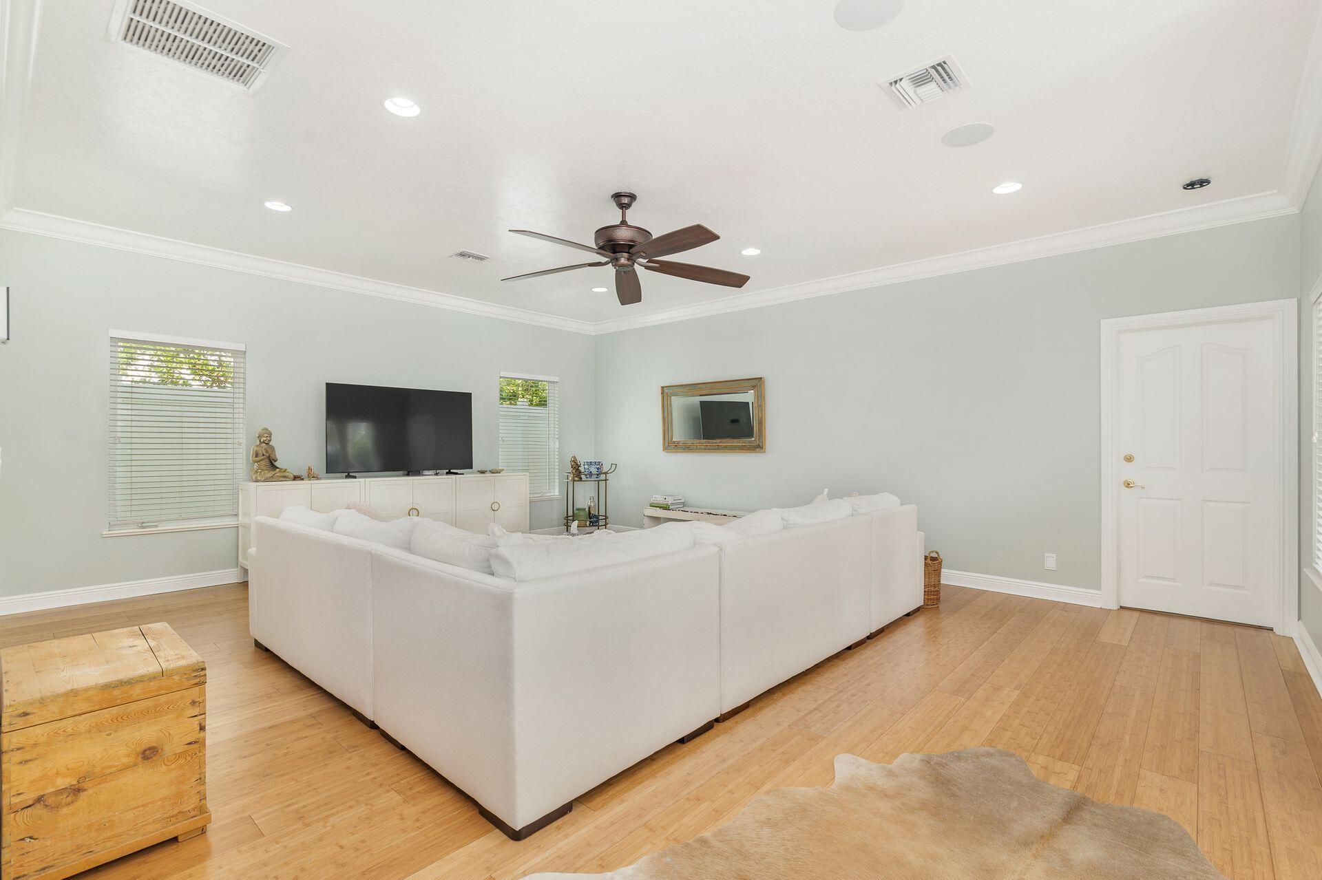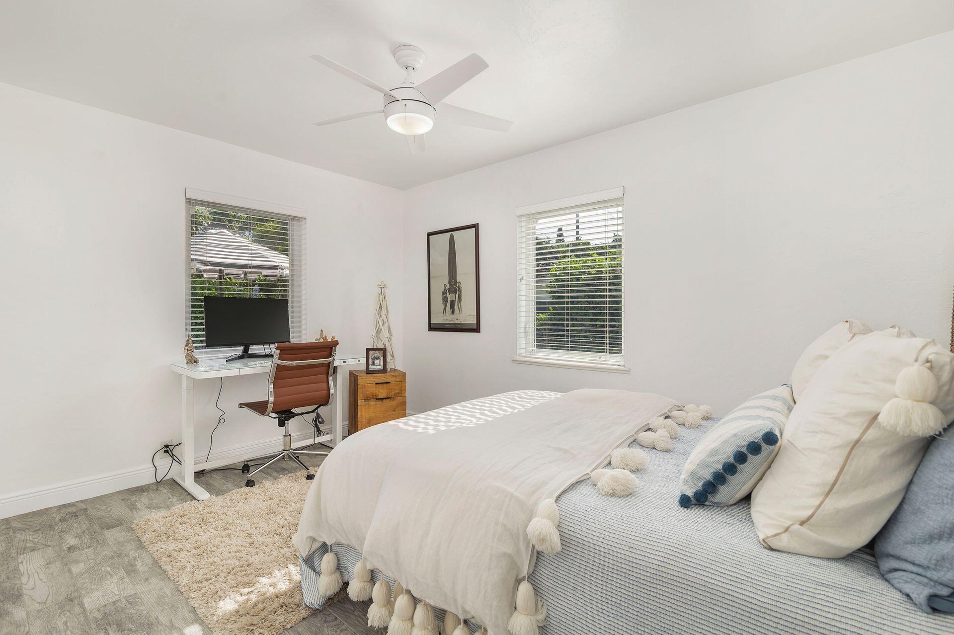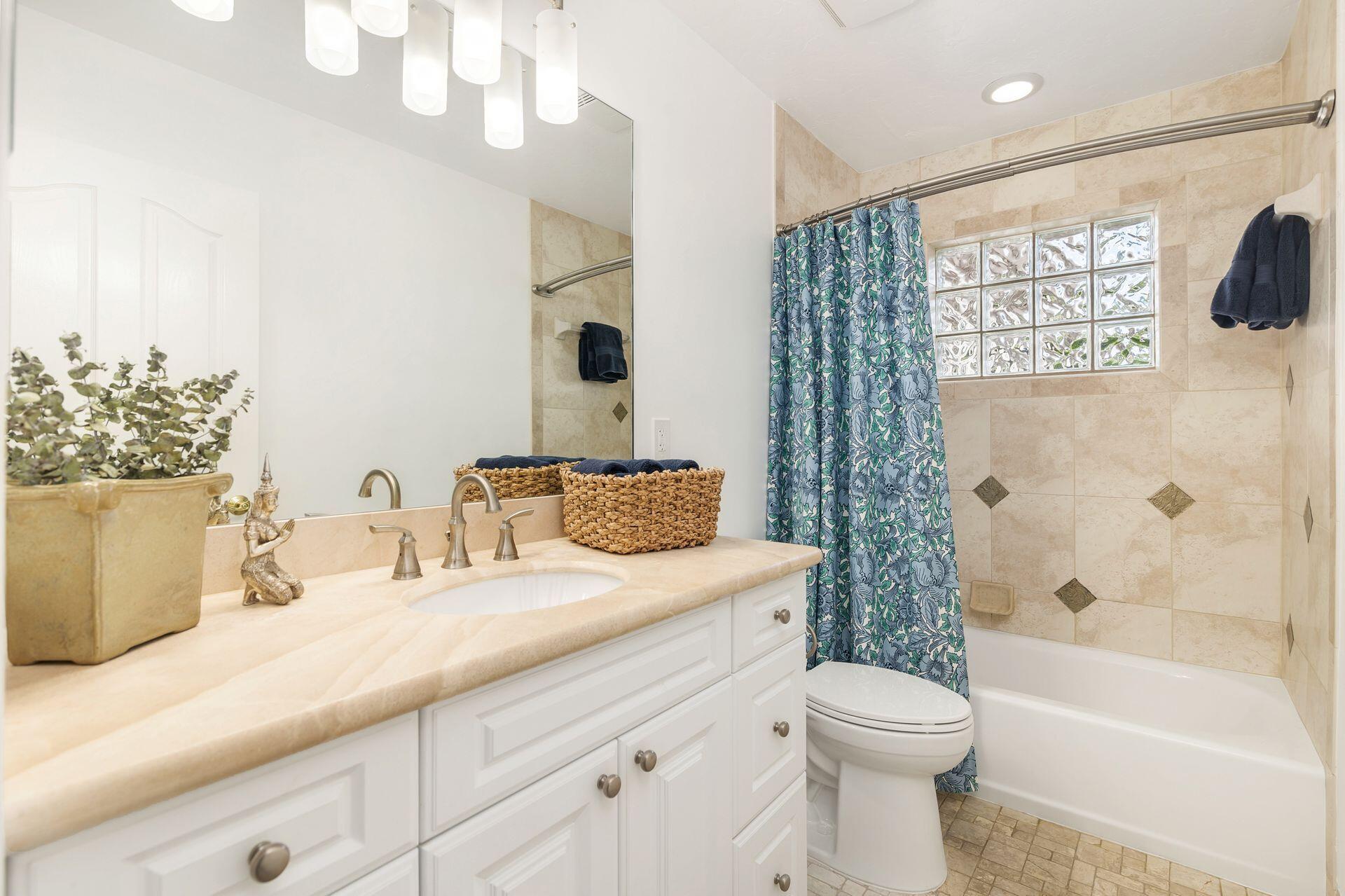 Set among waterfront and multi-million dollar properties, this 3BR/2BTH located in SoSo is just delightful. Raised seam metal roof, freshly painted, gorgeous curb appeal, welcoming porch, light & bright interiors, impact windows, 22kw generator & garage! Tile and wood floors, large family room & dining area with10 foot ceilings, great open kitchen with granite counters & stainless steel appliances. Primary bedroom with ensuite bath, French doors to lanai & walk-in closet. Two comfortable guest bedrooms have large closets & beautiful marble guest bath. Beautiful lanai overlooks private lush tropical gardens and faces east to catch Intracoastal breezes. Paver circular driveway. Close to Flagler Drive Promenade, Intracoastal Waterway, Palm Beach Island, Antique Row, CityPlace and PBI airport