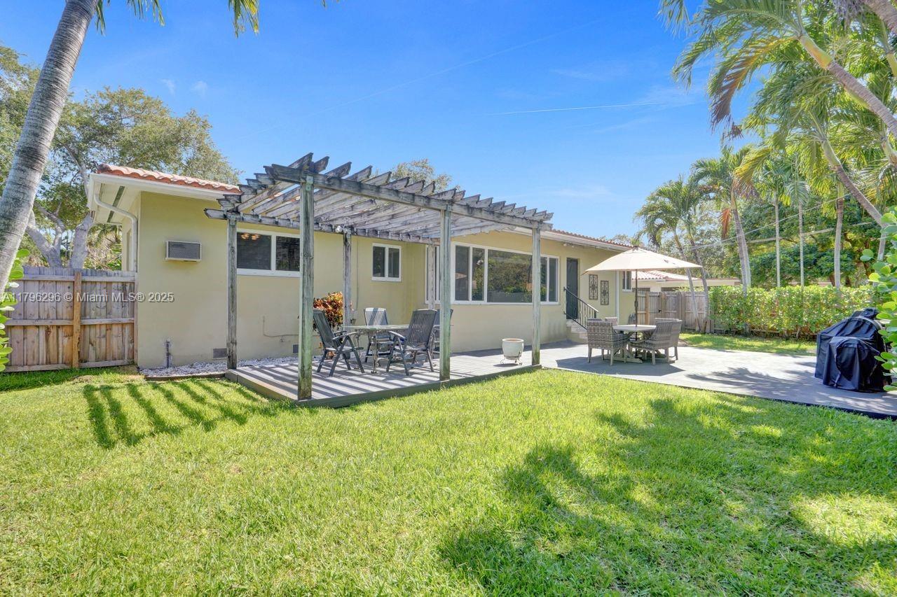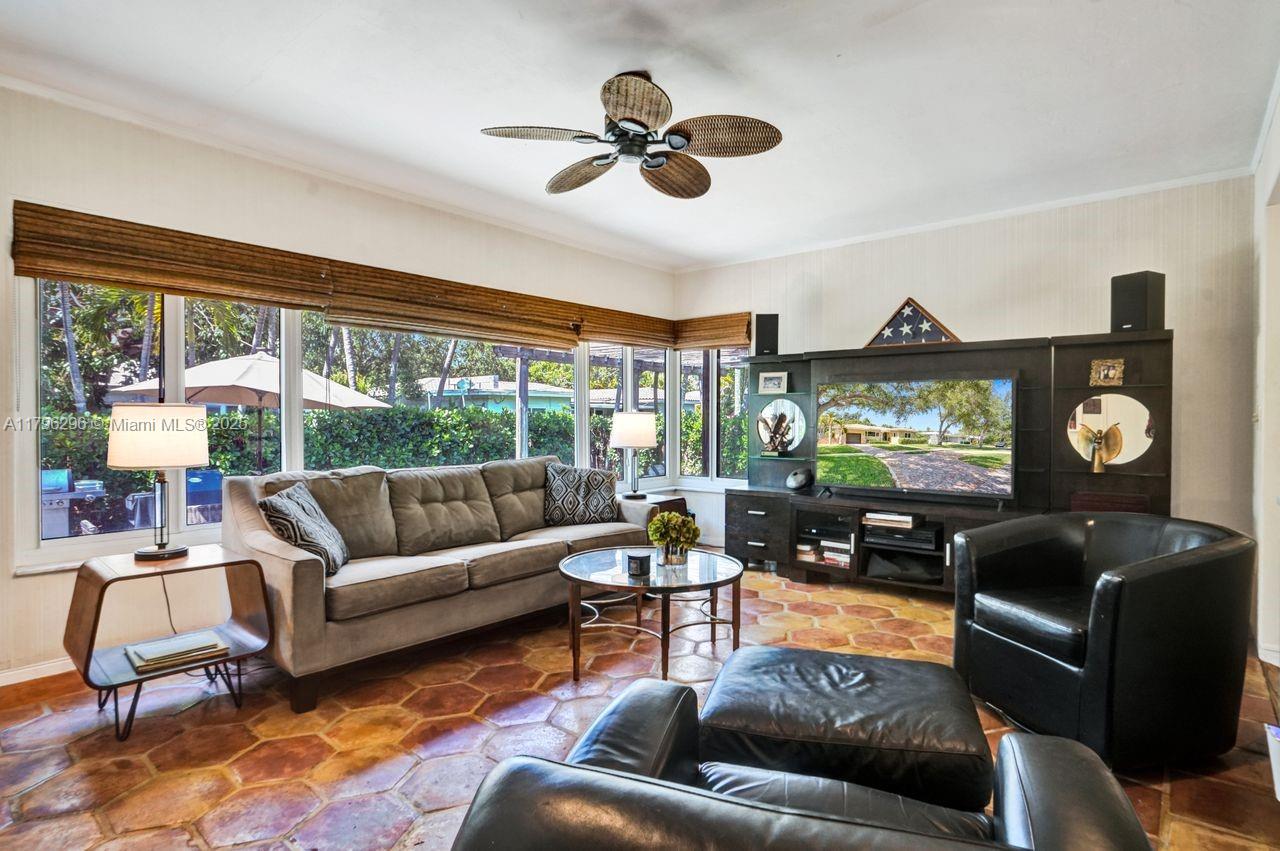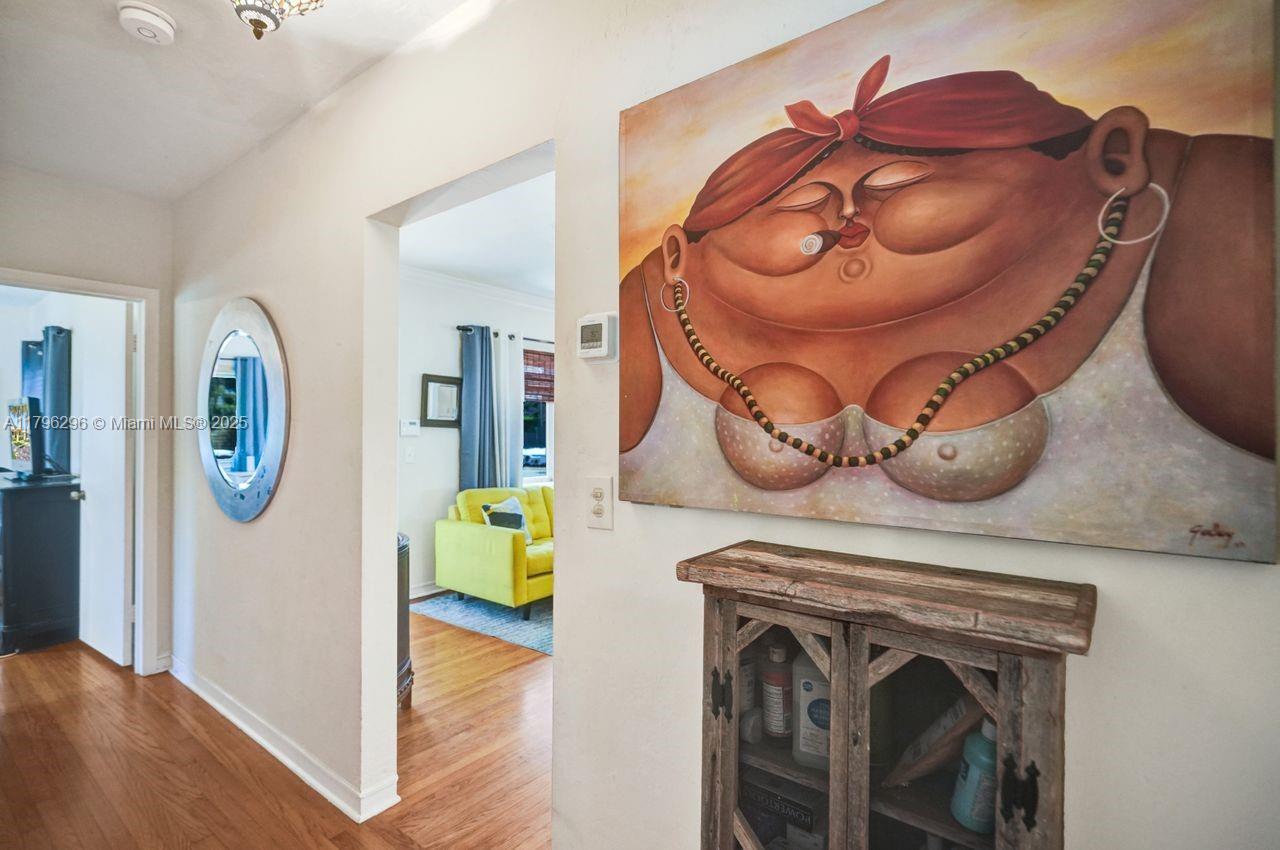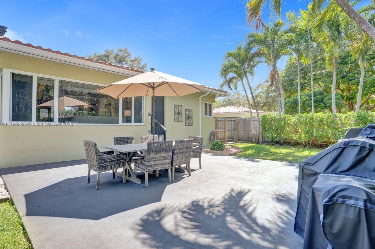 Discover timeless charm in this well-kept Miami Shores gem! Nestled on a quiet, tree-lined street, this inviting home blends classic character with thoughtful updates. Features include: Terracotta Spanish tile and wood floors, hurricane impact windows and front door, brick driveway, sprinkler system on timer, spacious kitchen with tons of cabinets, a 1 car garage with extra overhead storage, wireless alarm system with two keypads, ring doorbell camera system, wood blinds, and other modern touches add comfort and style. The bright, open living spaces, large windows, and a private lushly fenced backyard offer the perfect indoor-outdoor living spaces. Stroll to shops, parks, restaurants and more. A rare opportunity to own a piece of history with room to make it your own. Easy to show!