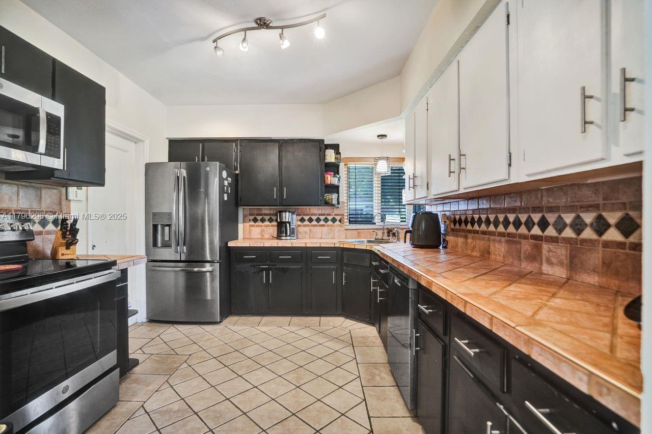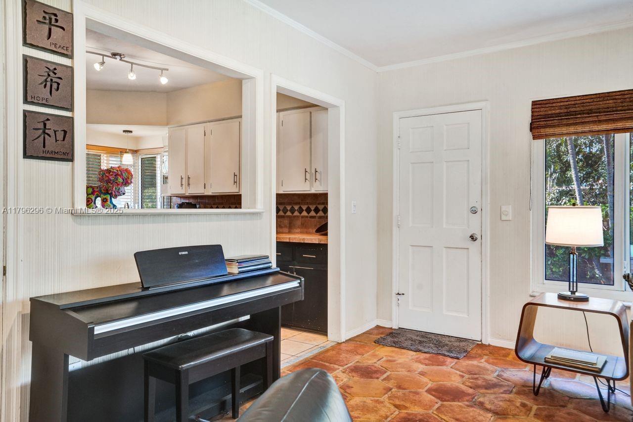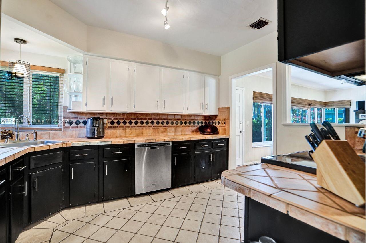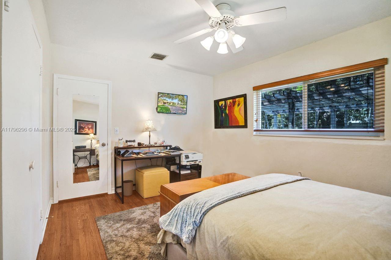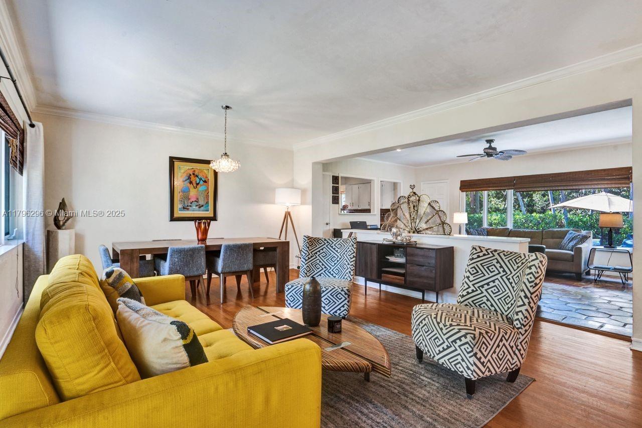 Discover timeless charm in this well-kept Miami Shores gem! Nestled on a quiet, tree-lined street, this inviting home blends classic character with thoughtful updates. Features include: Terracotta Spanish tile and wood floors, hurricane impact windows and front door, brick driveway, sprinkler system on timer, spacious kitchen with tons of cabinets, a 1 car garage with extra overhead storage, wireless alarm system with two keypads, ring doorbell camera system, wood blinds, and other modern touches add comfort and style. The bright, open living spaces, large windows, and a private lushly fenced backyard offer the perfect indoor-outdoor living spaces. Stroll to shops, parks, restaurants and more. A rare opportunity to own a piece of history with room to make it your own. Easy to show!