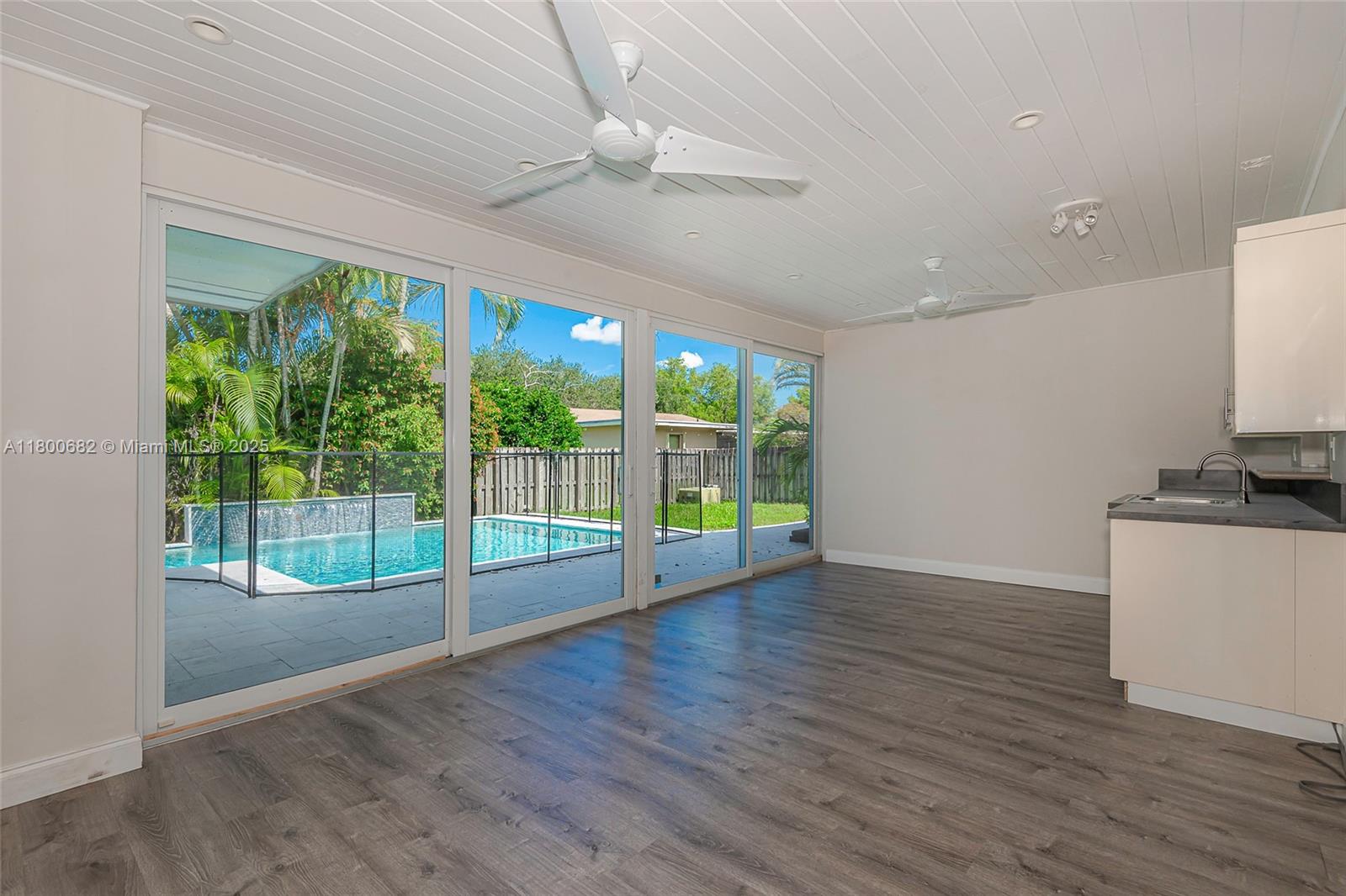 Price Reduction! Introducing an exquisite gem nestled in the heart of Flamingo Gardens, Cooper City! This stunning single-family abode boasts 4 spacious bedrooms & 2 bathrooms. Immerse yourself in the allure of vinyl flooring, adding a touch of modern elegance to every step. The patio has been thoughtfully converted into a delightful room, perfect for hosting gatherings or indulging in moments of relaxation. Step outside to discover a captivating fenced-in yard, complete with a refreshing salt water pool, ideal for entertaining guests. Experience true luxury in the master bedroom, seamlessly connecting to the additional room for added convenience. Plus, indulge your outdoor cooking desires with an additional sink. New roof -2022, Pool renovated in 2021. A+ School district. No HoA approval.