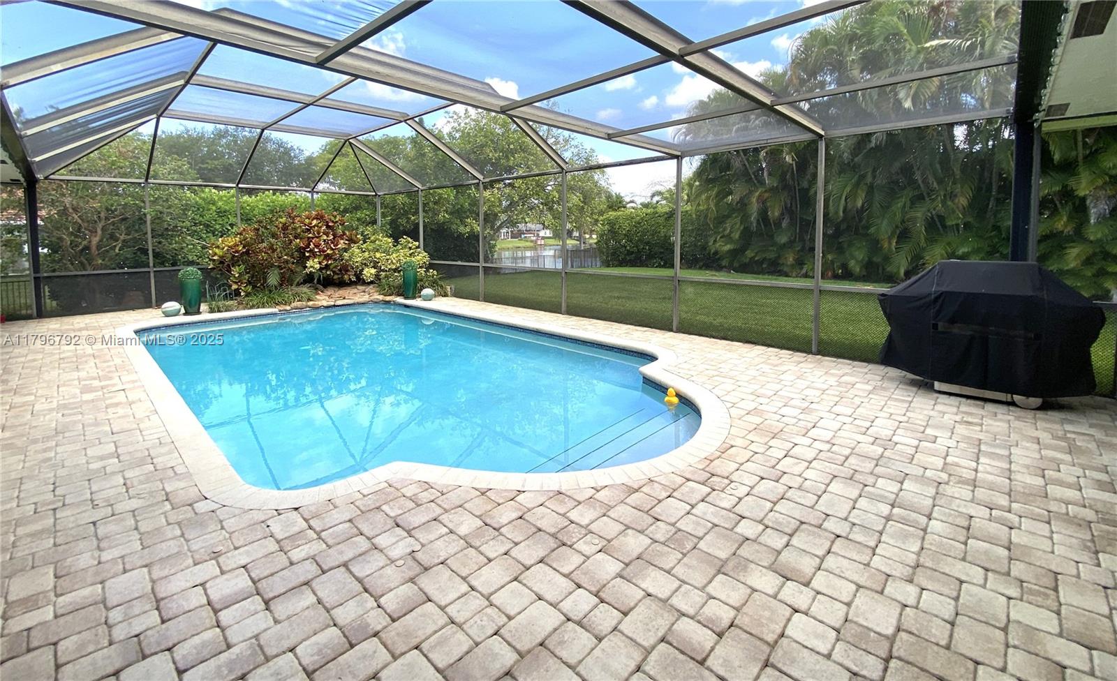 Welcome to this beautifully maintained, 4 Bed/3.5 Bath home in prestigious LAGO MAR COUNTRY CLUB! Just under 3000SF, this home features a split bedroom plan, formal dining room, living room AND family room w/a wood burning fireplace & a wet bar! Beautiful wood floors throughout, spacious kitchen w/solid wood cabinetry & SS appliances. The vaulted ceilings & skylights give it a bright, open feel. Relax & entertain on the oversized, private patio overlooking the pool & lake. Hurricane Impact windows and Doors! Gated, one-of-a-kind neighborhood w/24-hour manned security. LMCC offers a Championship Golf Course, Tennis/Pickleball Courts, & Dining & Entertainment - Optional memberships available. Located minutes to 595 & I-75, FLL Airport, Sawgrass Mills Mall & American Heritage High School.