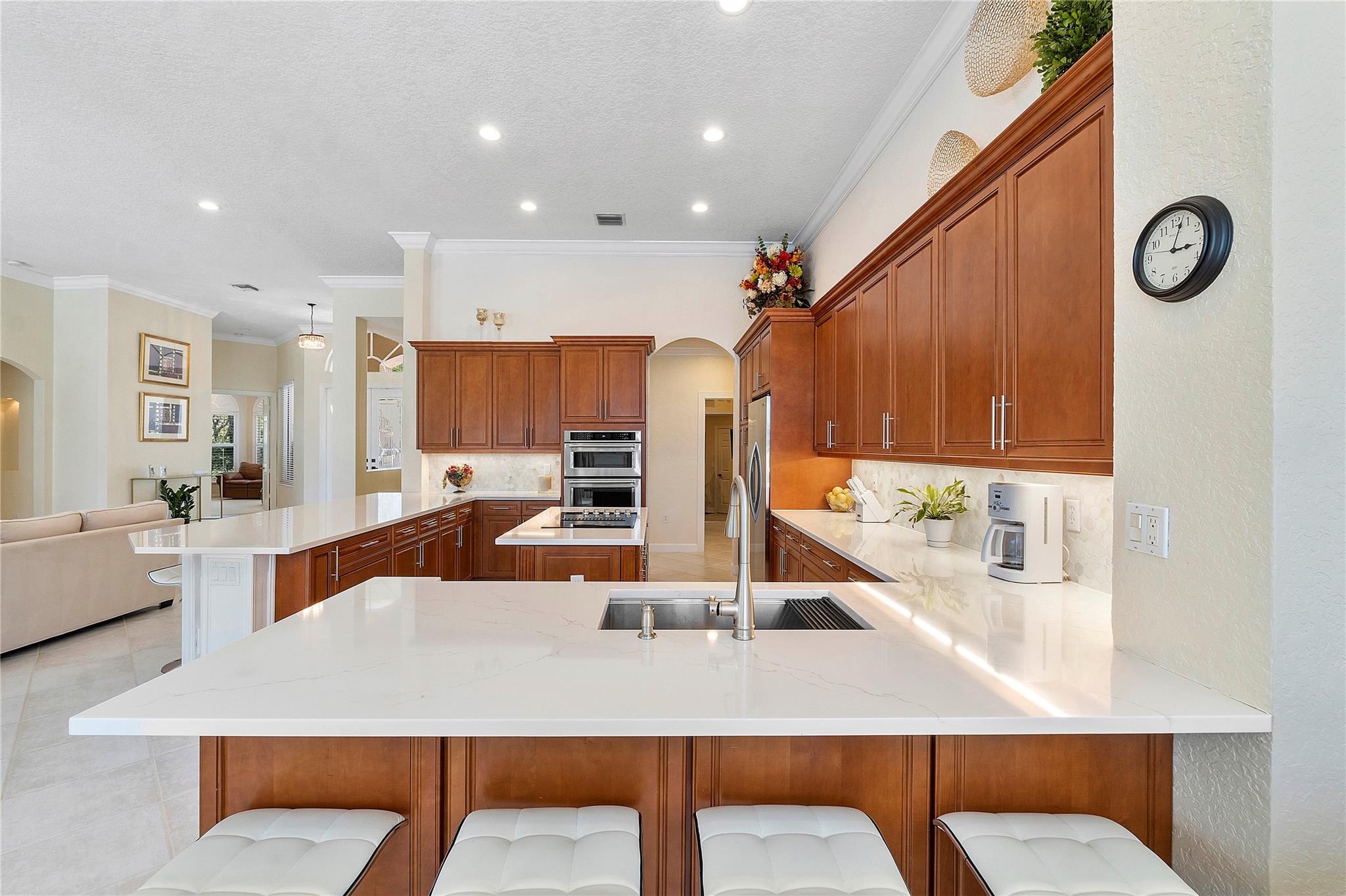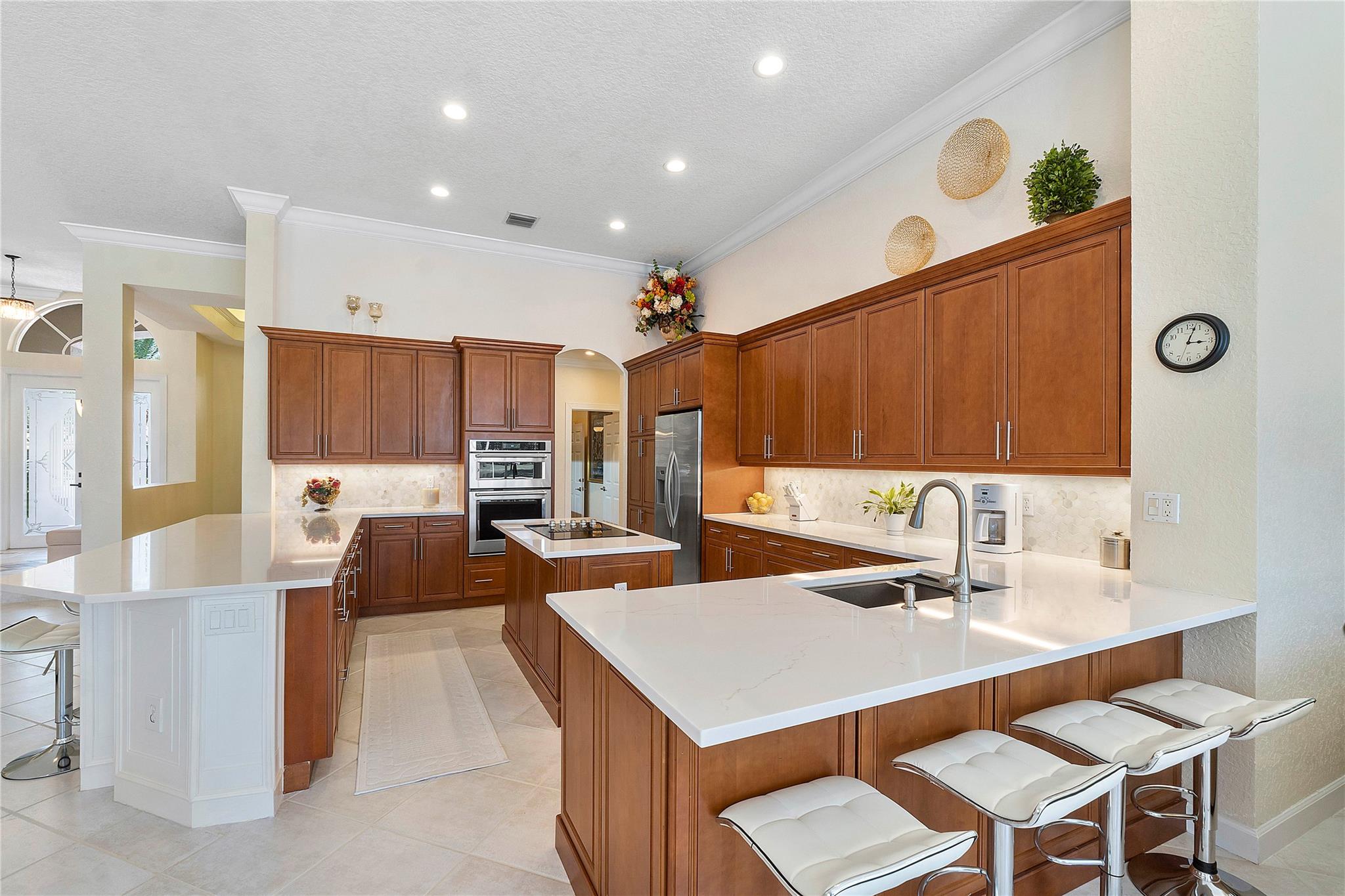 Unique, one of kind, breathtaking views on the best lot in Fox Ridge. The over 30,000 sq ft lot overlooks the gorgeous lake & park offering the ultimate private estate. This meticulously maintained home offers a triple split floor plan w/ 5 bed & 4 baths + bonus room. 1 bedroom being used as office. Roof 2020. Impact windows & 10 ft impact sliders 2019. 2 AC units & duct system 2019. Pool & Spa resurfaced 2023 w/ wifi controlled pool heater & new filter system. Other smart home features include HVAC & 6 zone sprinklers. Updated kitchen w/ quartz counters & tiled backsplash 2021. Gigantic screen enclosure updated 2019 w/ coy fishpond, ready for fish. Primary bedroom overlooks coy fishpond & lake. Primary bathroom w/ dual vanities, jacuzzi tub & huge shower. 15,000 kw generator w/ hook up