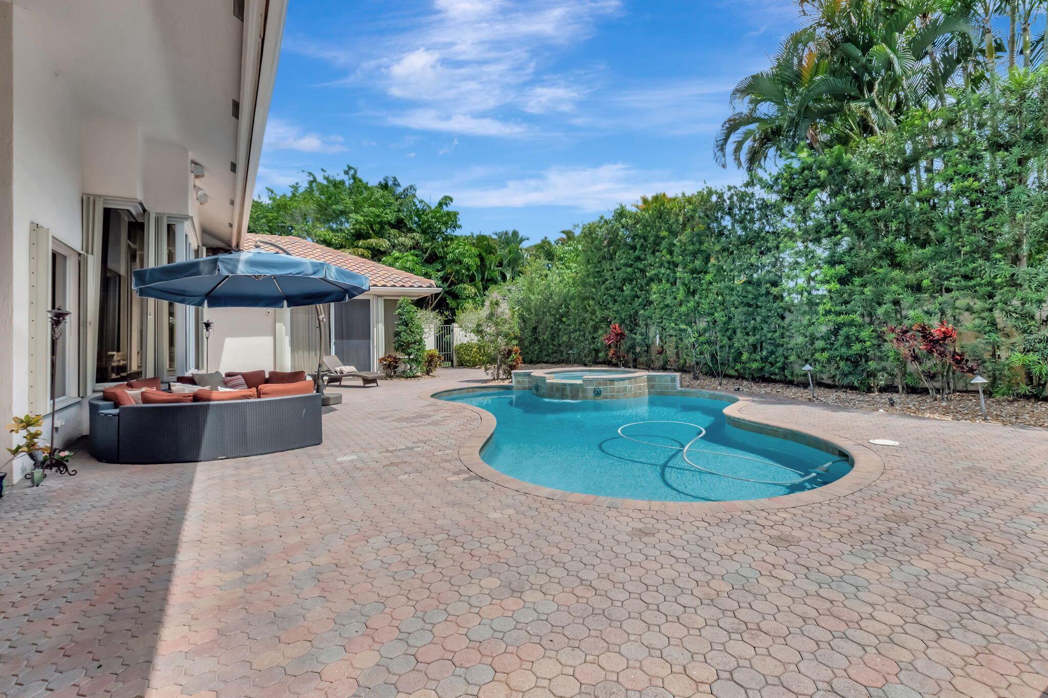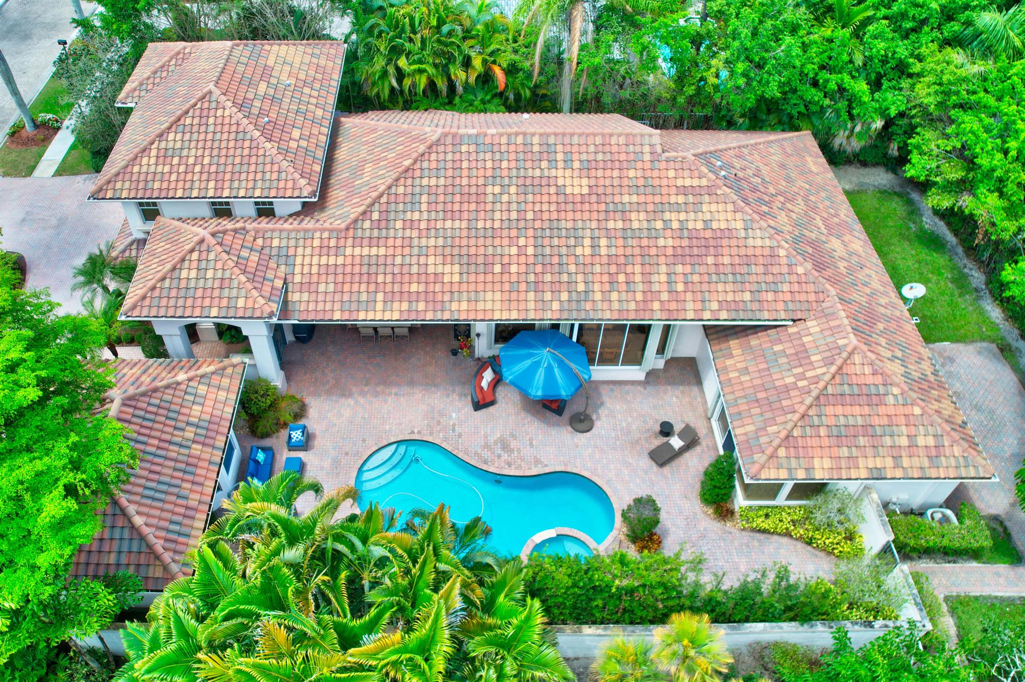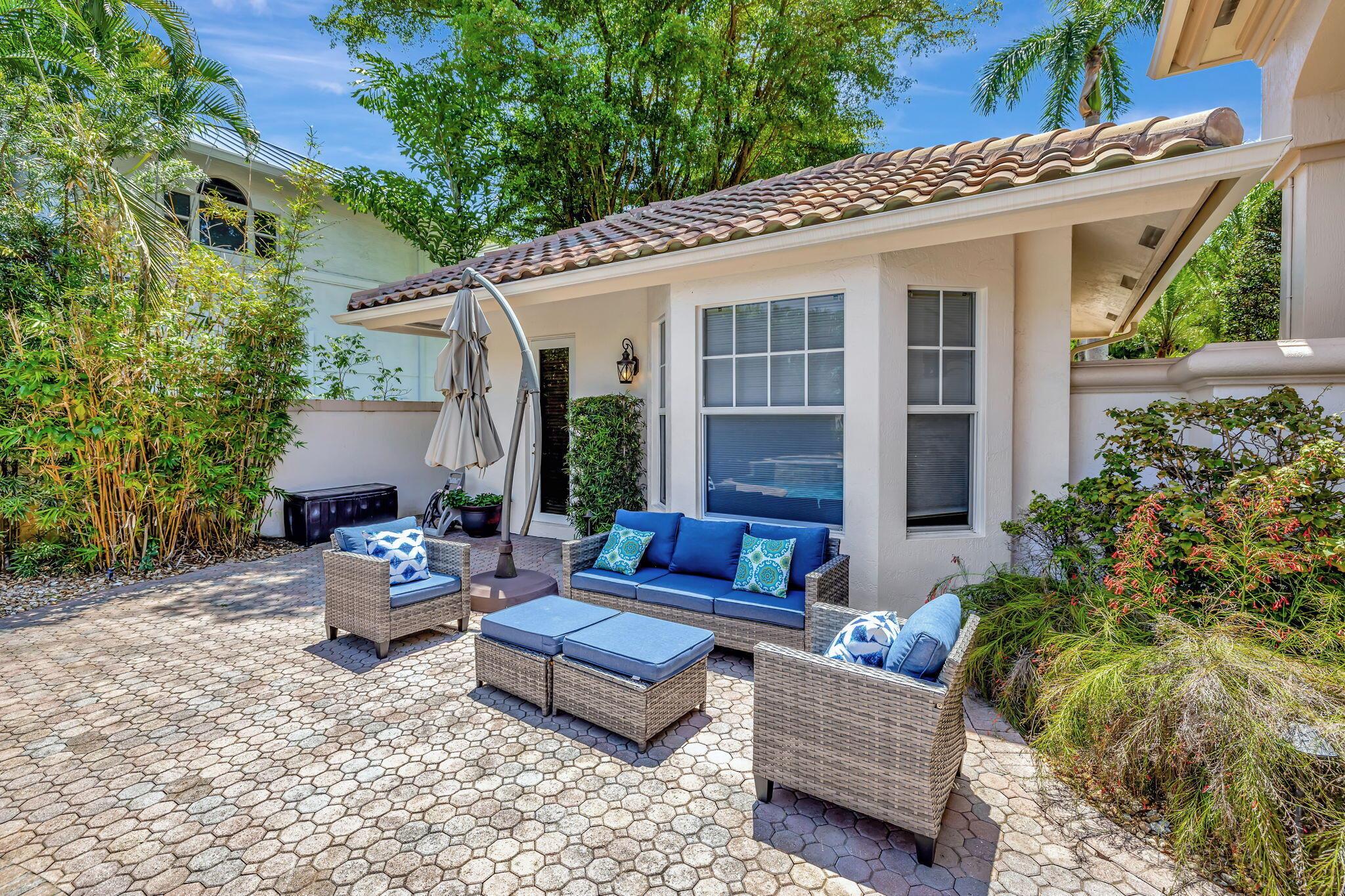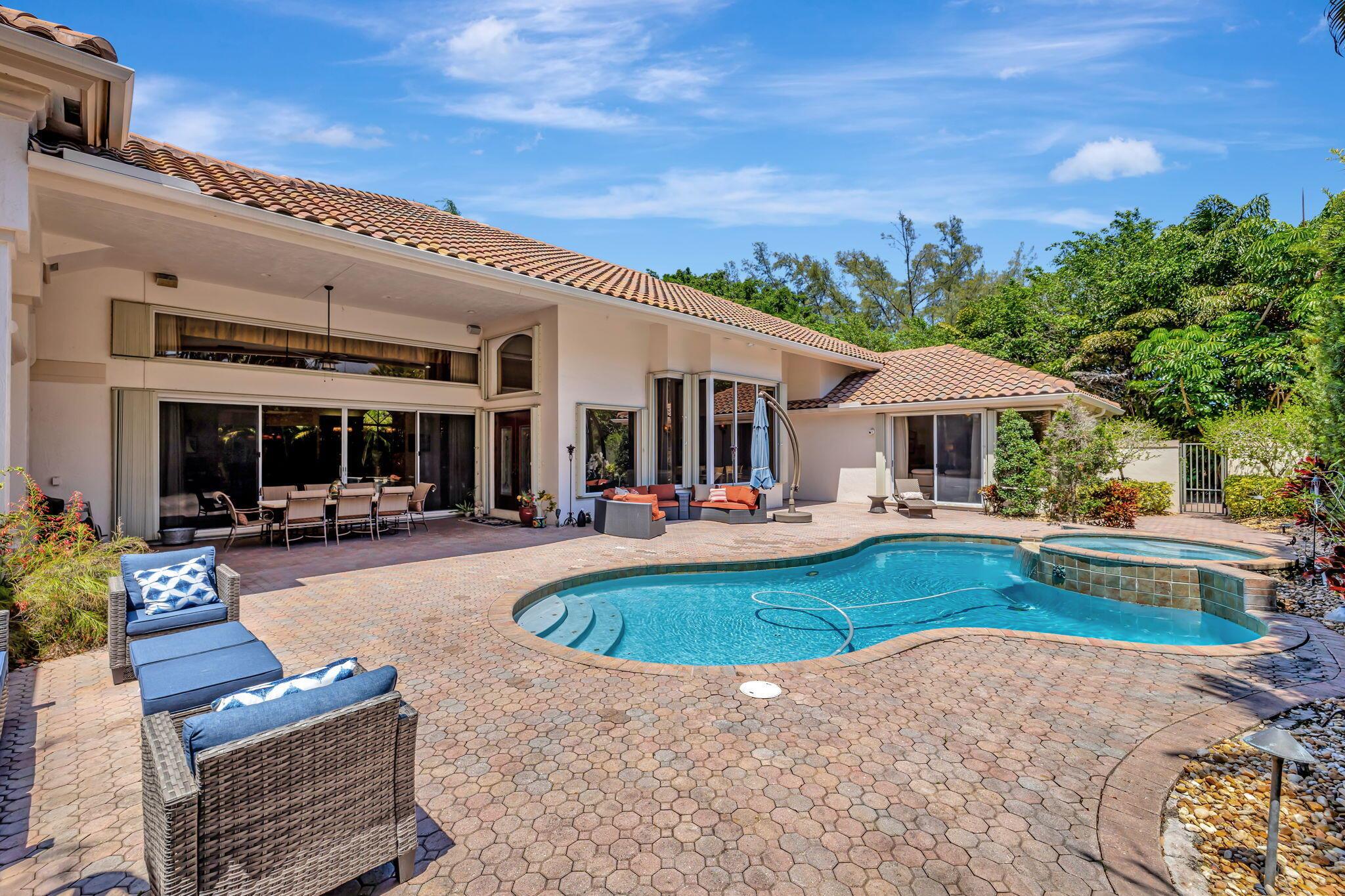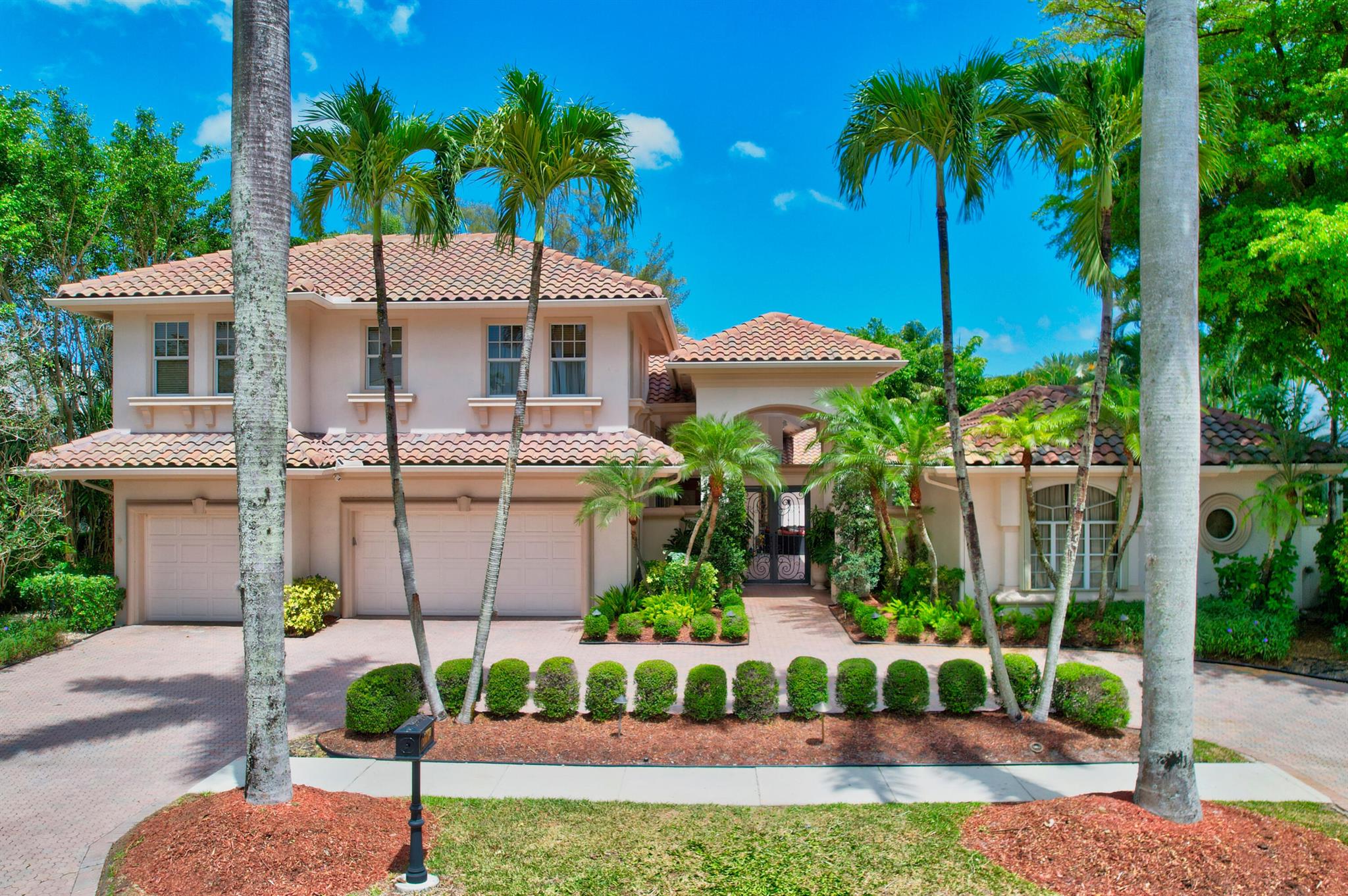 Beautiful two story courtyard style home in Boca Grove featuring six bedrooms with ensuite baths, including a one bedroom/one bath detached guesthouse. This residence offers volume ceilings allowing for plenty of light and an open floor plan which is great for entertaining. The chef's kitchen boasts a gas cooktop, two ovens, two dishwashers and two sinks, and opens to a breakfast area and family room. The living space is completed with a spacious living room and formal dining room. The primary suite, with his/her custom closets and lavish bath, looks out onto the courtyard patio and pool. There are two more guest bedrooms on the main floor, each with their own bath, and two bedrooms and a second laundry room upstairs. The detached guest house is currently set up as a theatre with a