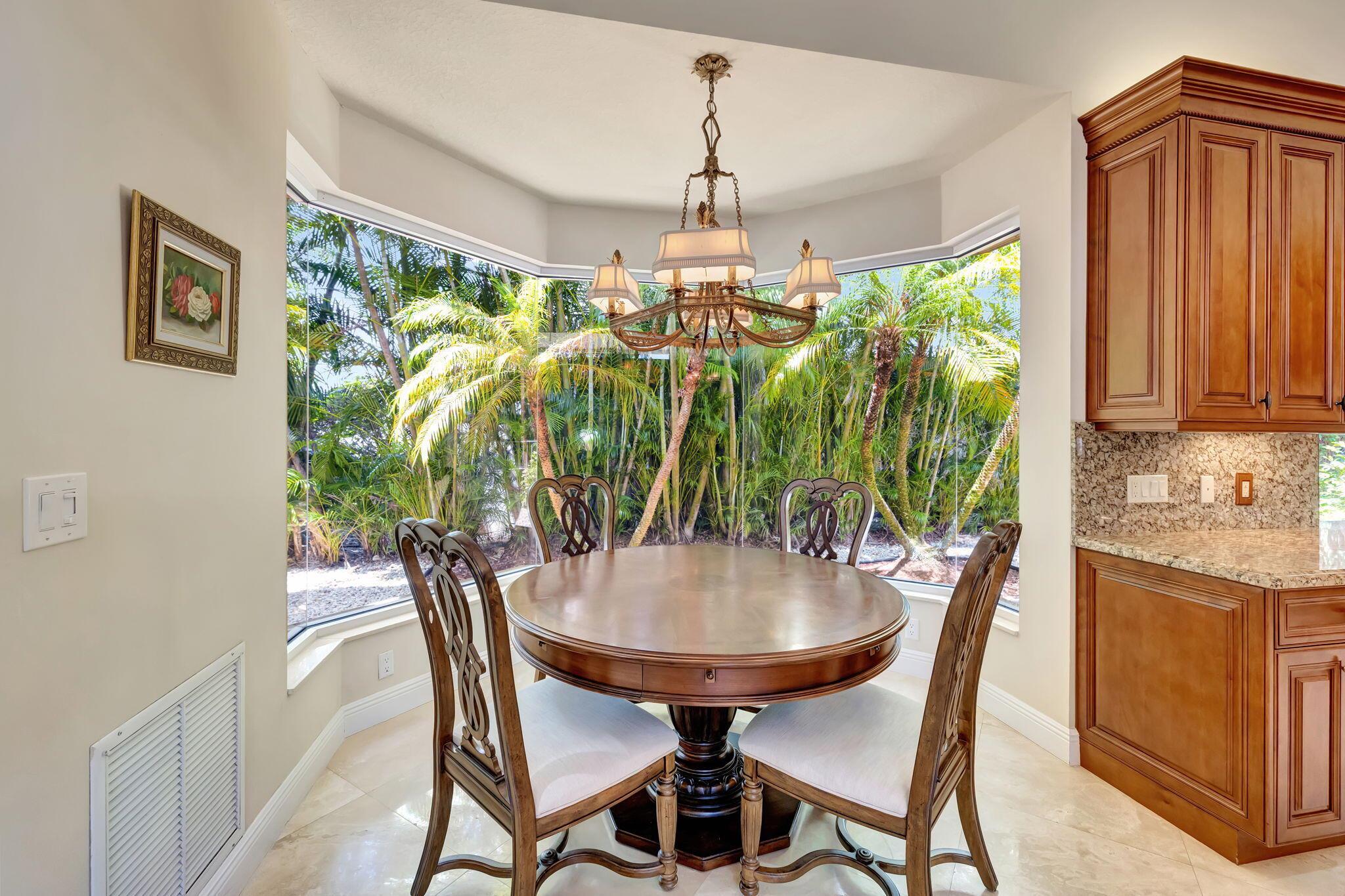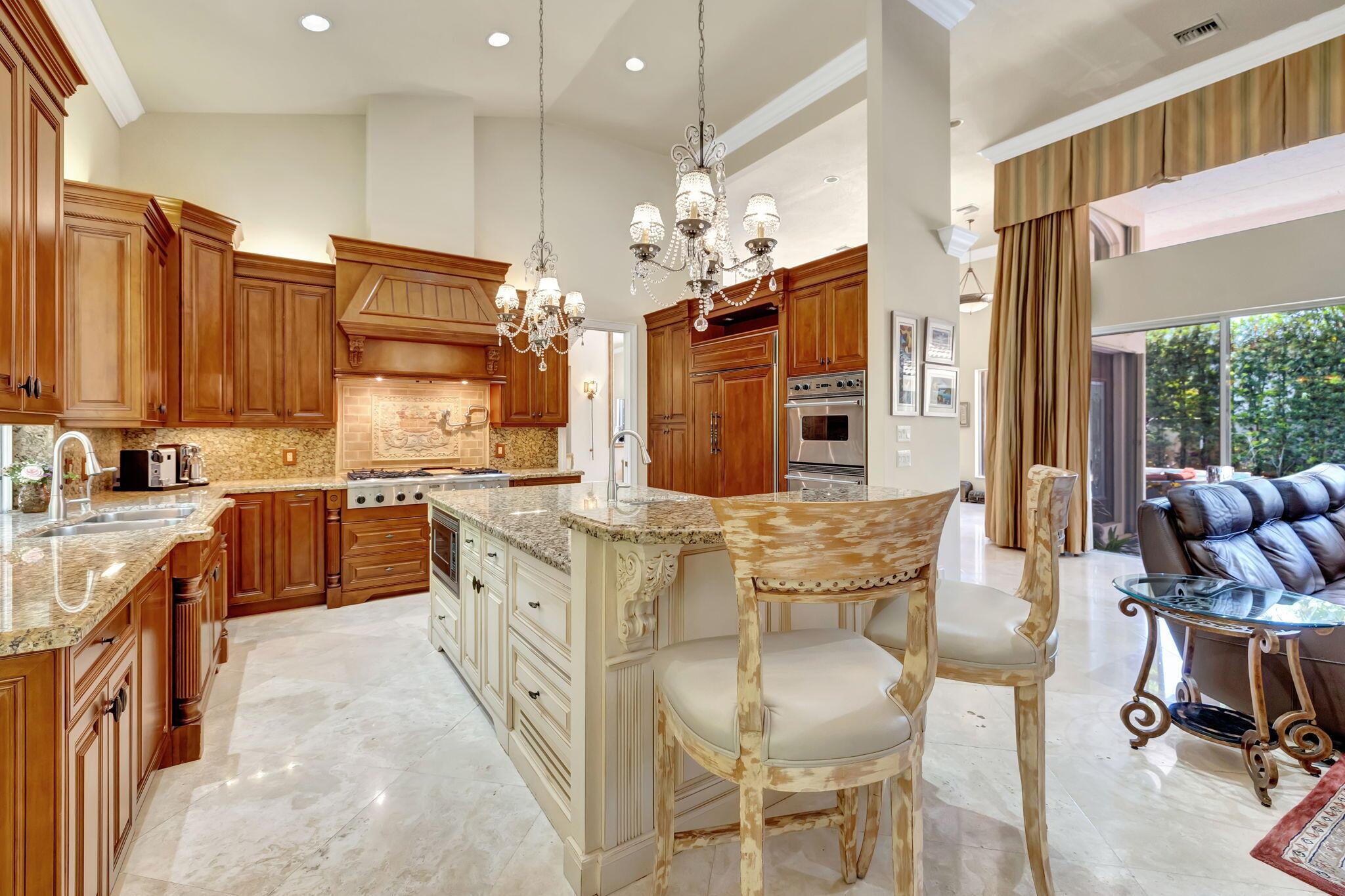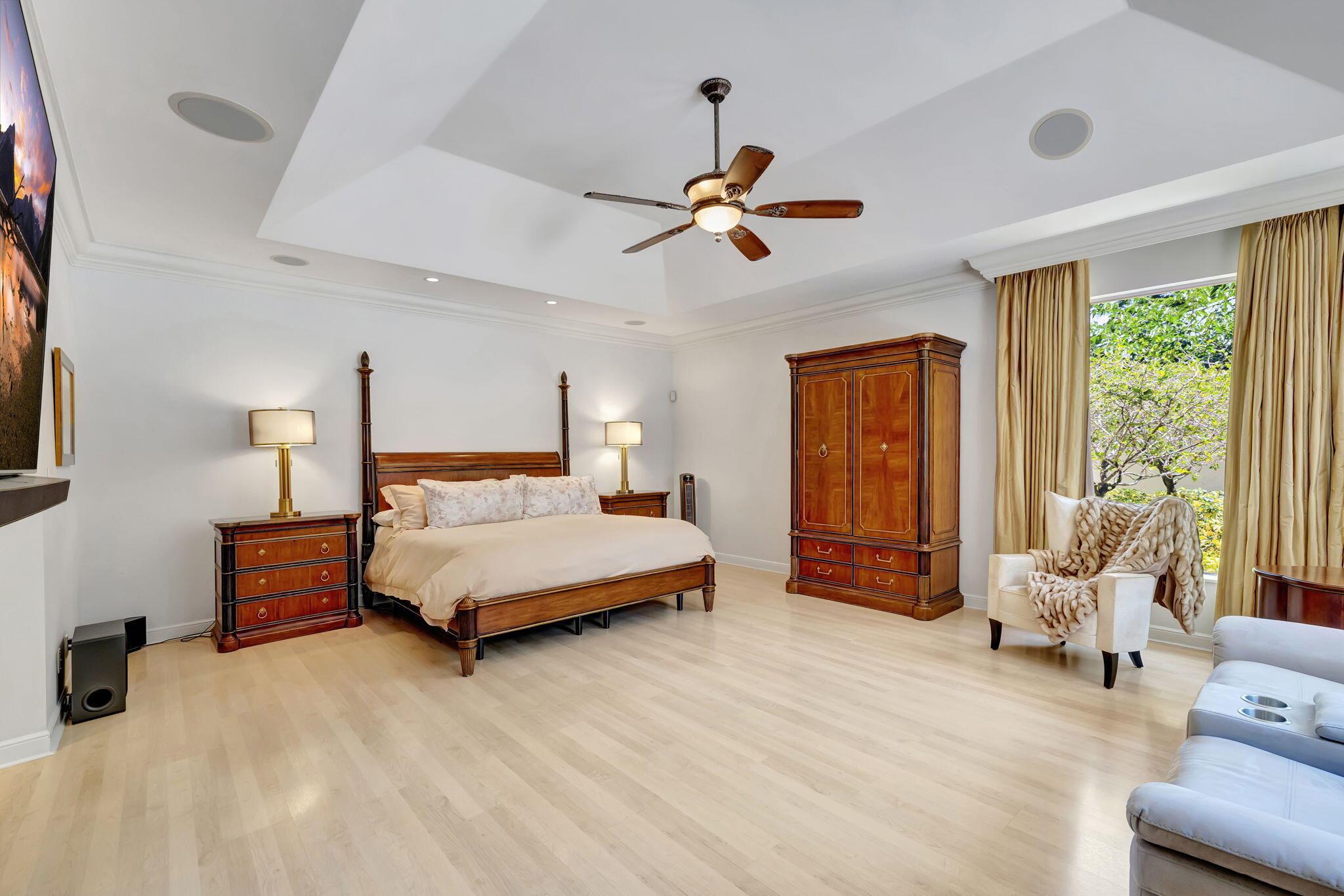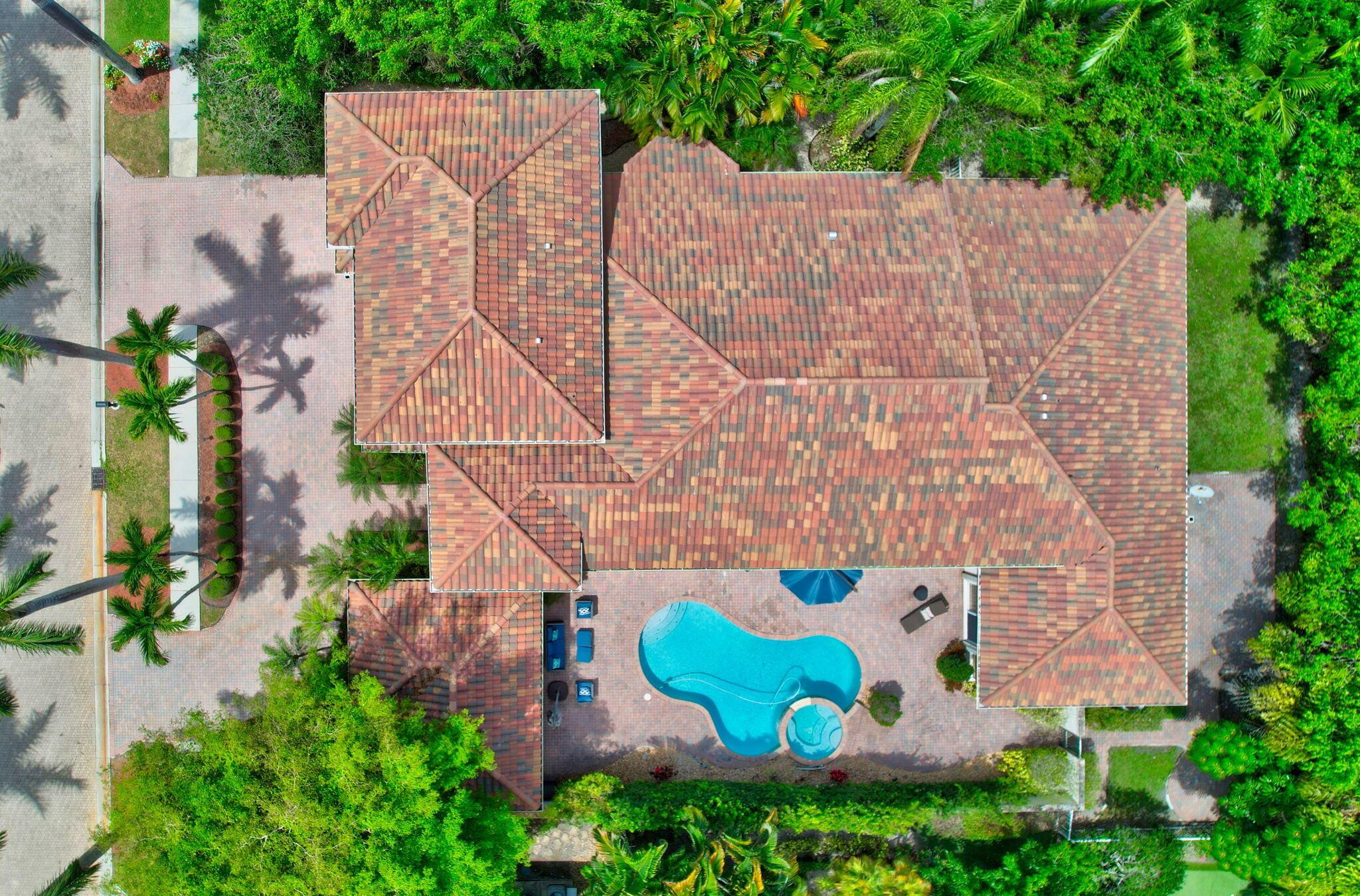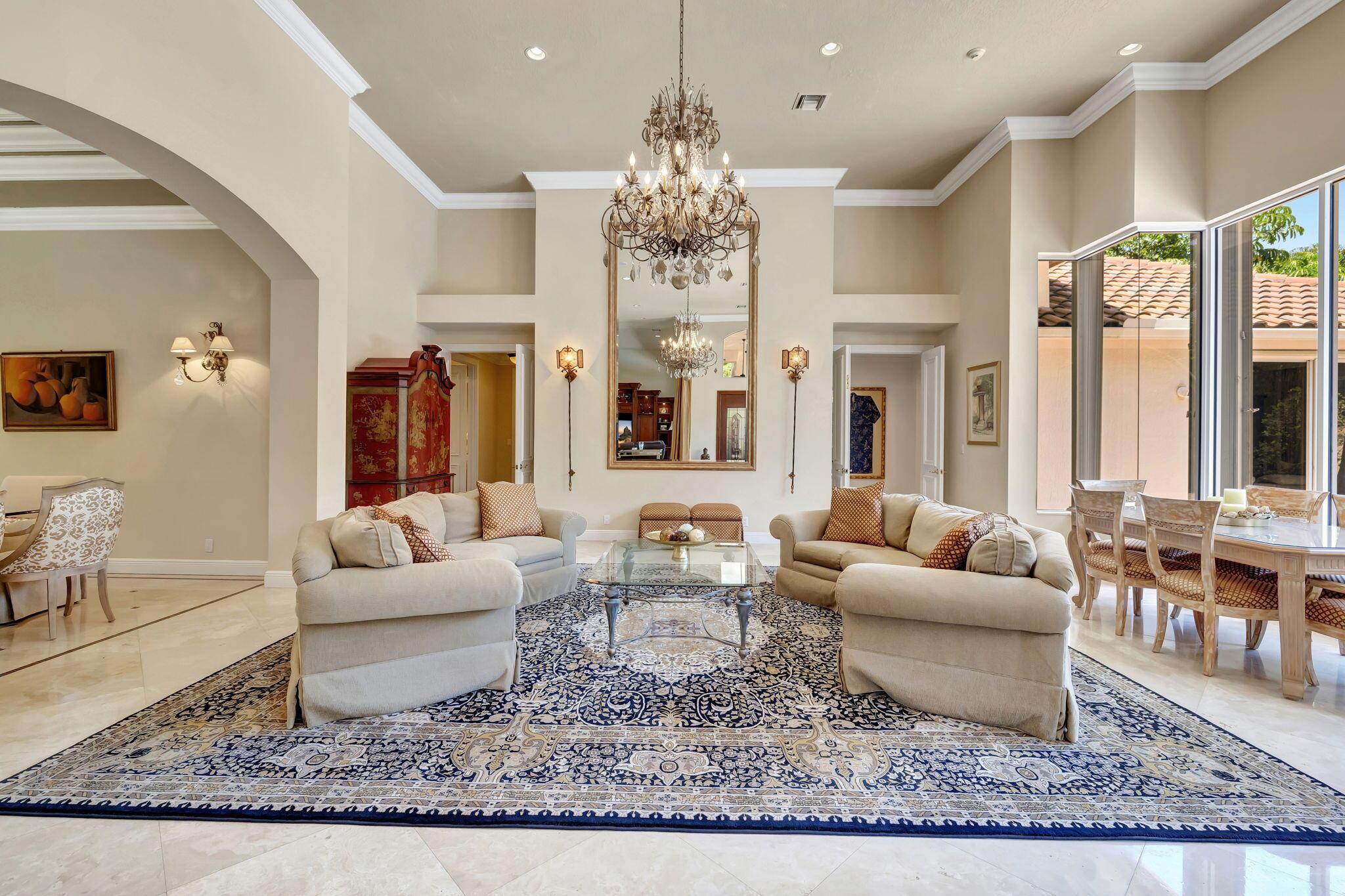 Beautiful two story courtyard style home in Boca Grove featuring six bedrooms with ensuite baths, including a one bedroom/one bath detached guesthouse. This residence offers volume ceilings allowing for plenty of light and an open floor plan which is great for entertaining. The chef's kitchen boasts a gas cooktop, two ovens, two dishwashers and two sinks, and opens to a breakfast area and family room. The living space is completed with a spacious living room and formal dining room. The primary suite, with his/her custom closets and lavish bath, looks out onto the courtyard patio and pool. There are two more guest bedrooms on the main floor, each with their own bath, and two bedrooms and a second laundry room upstairs. The detached guest house is currently set up as a theatre with a