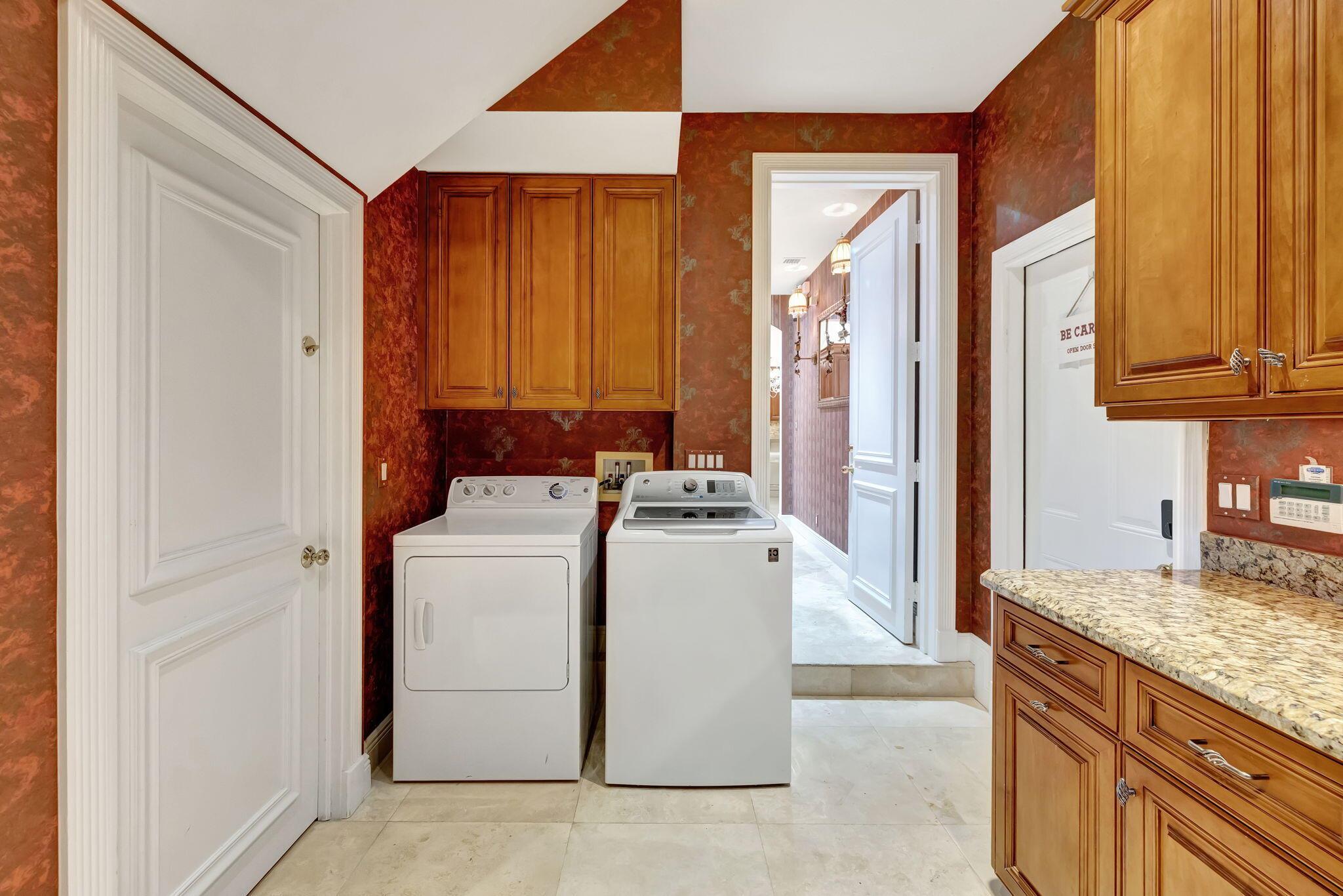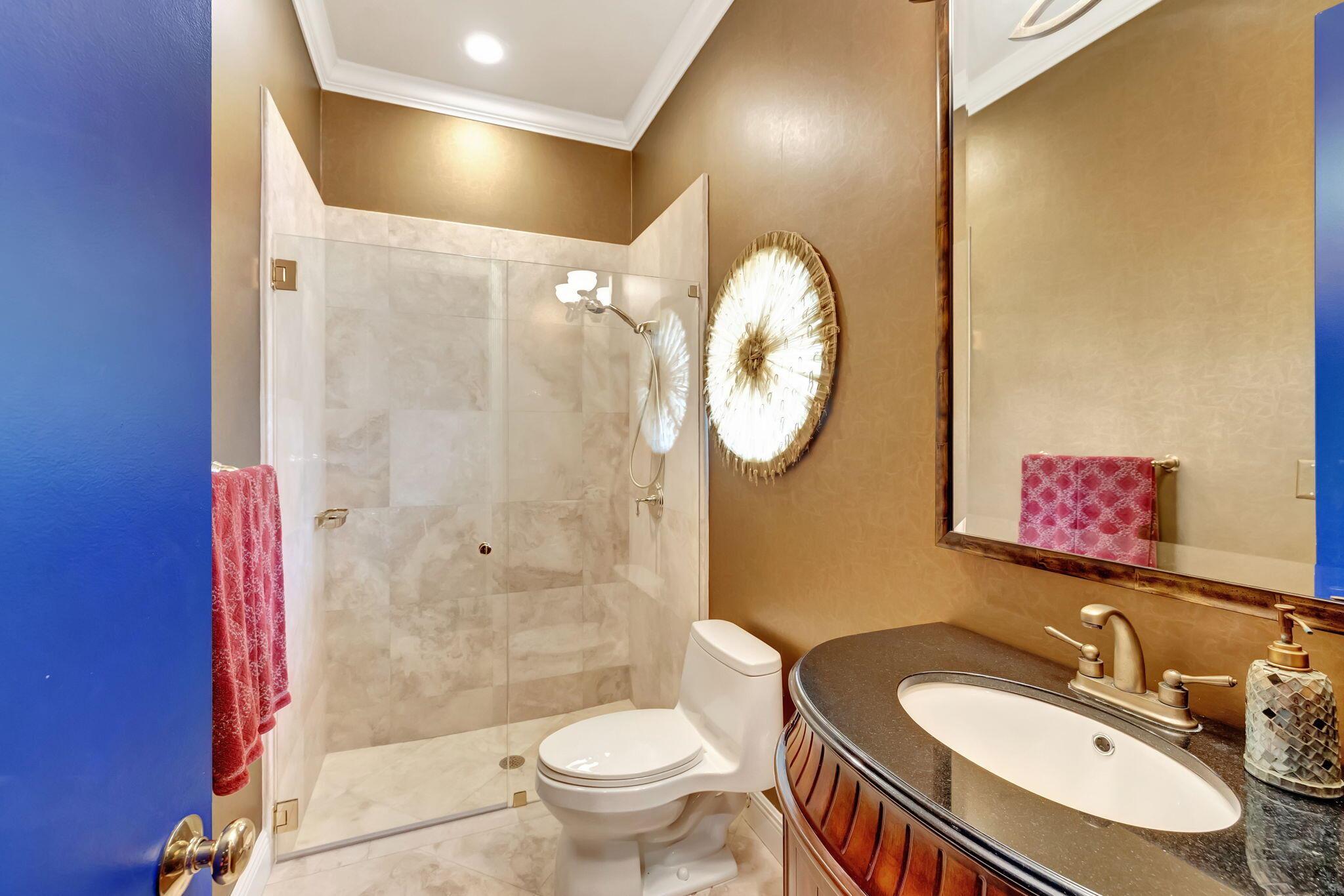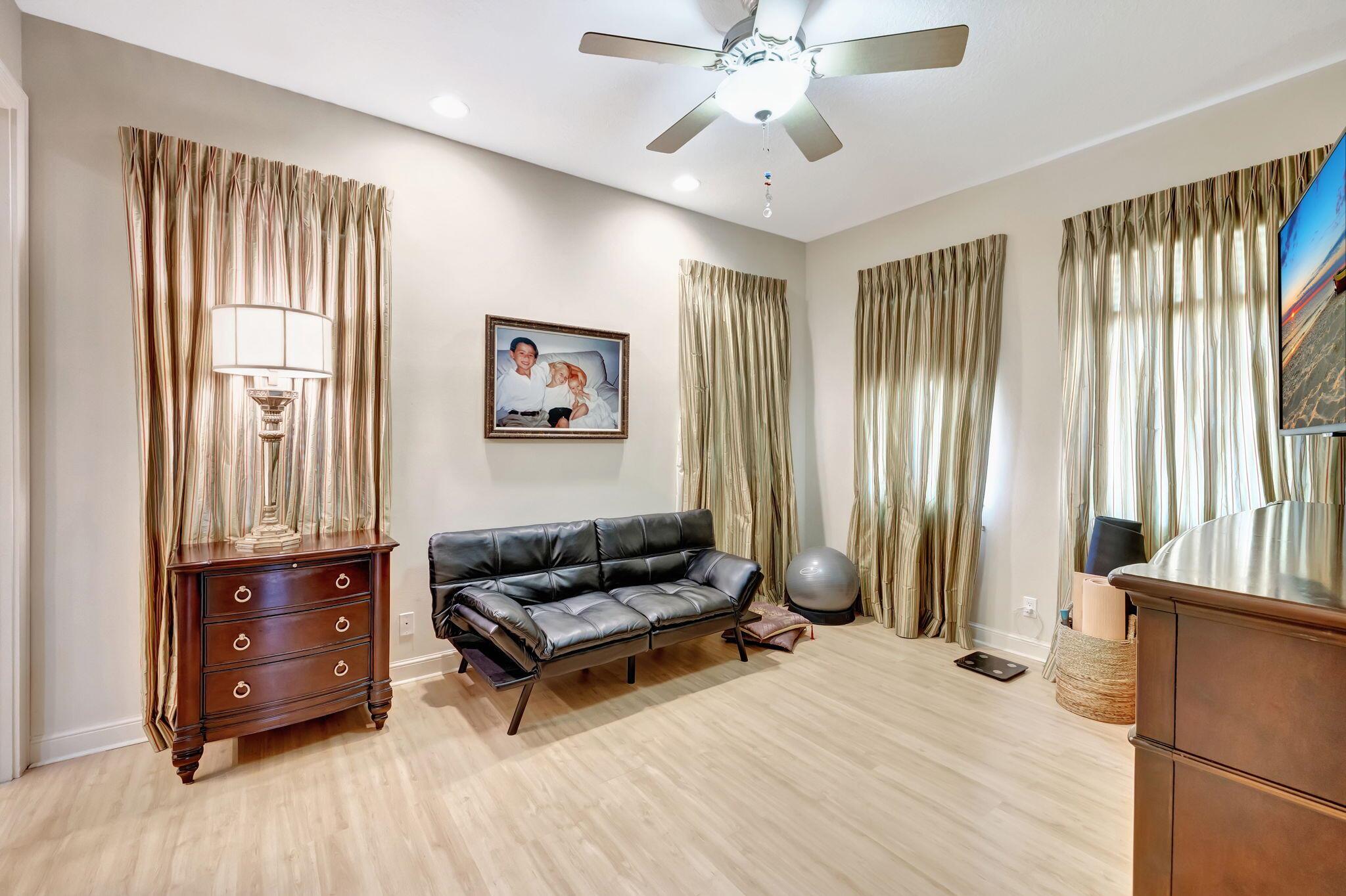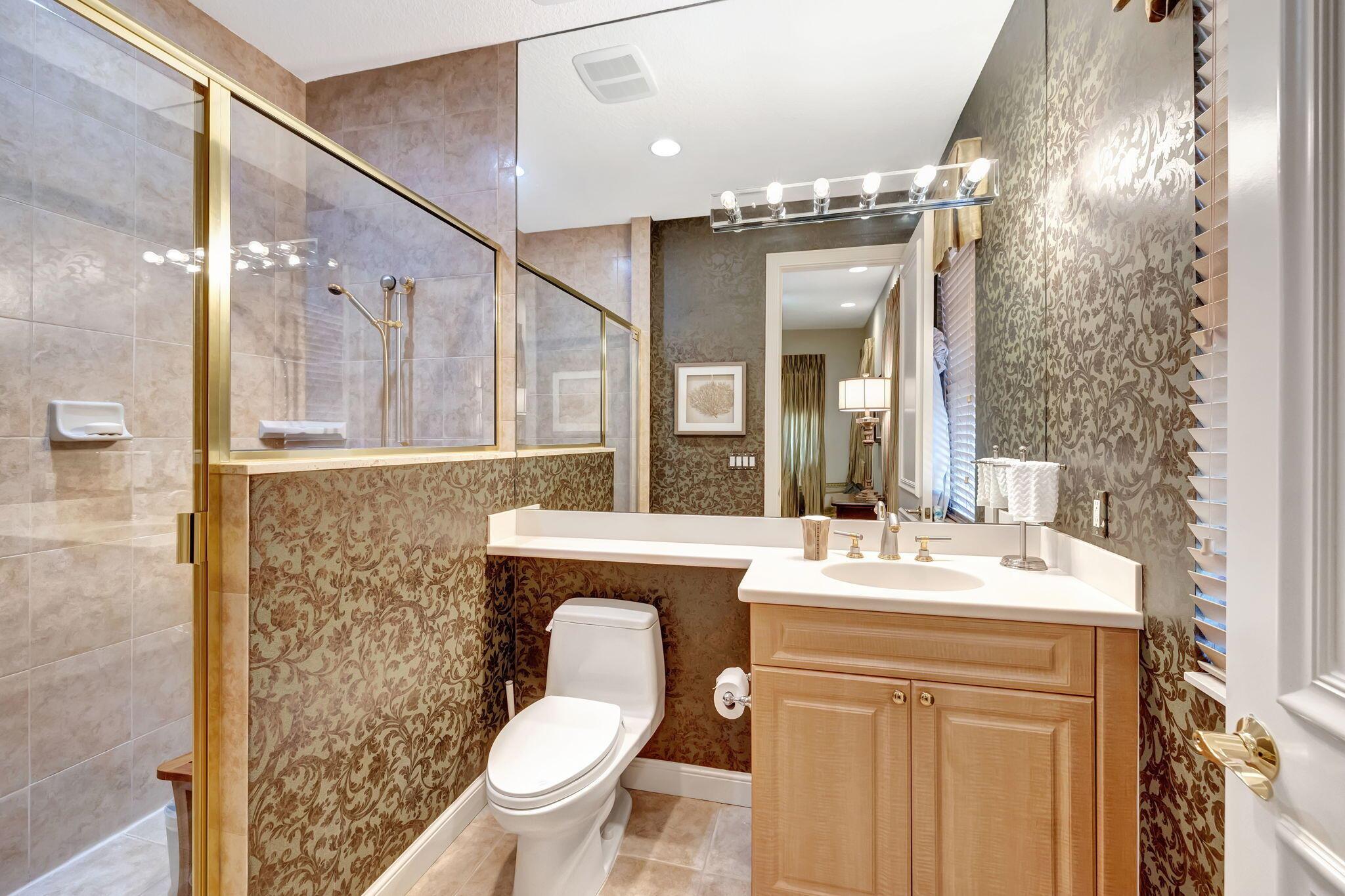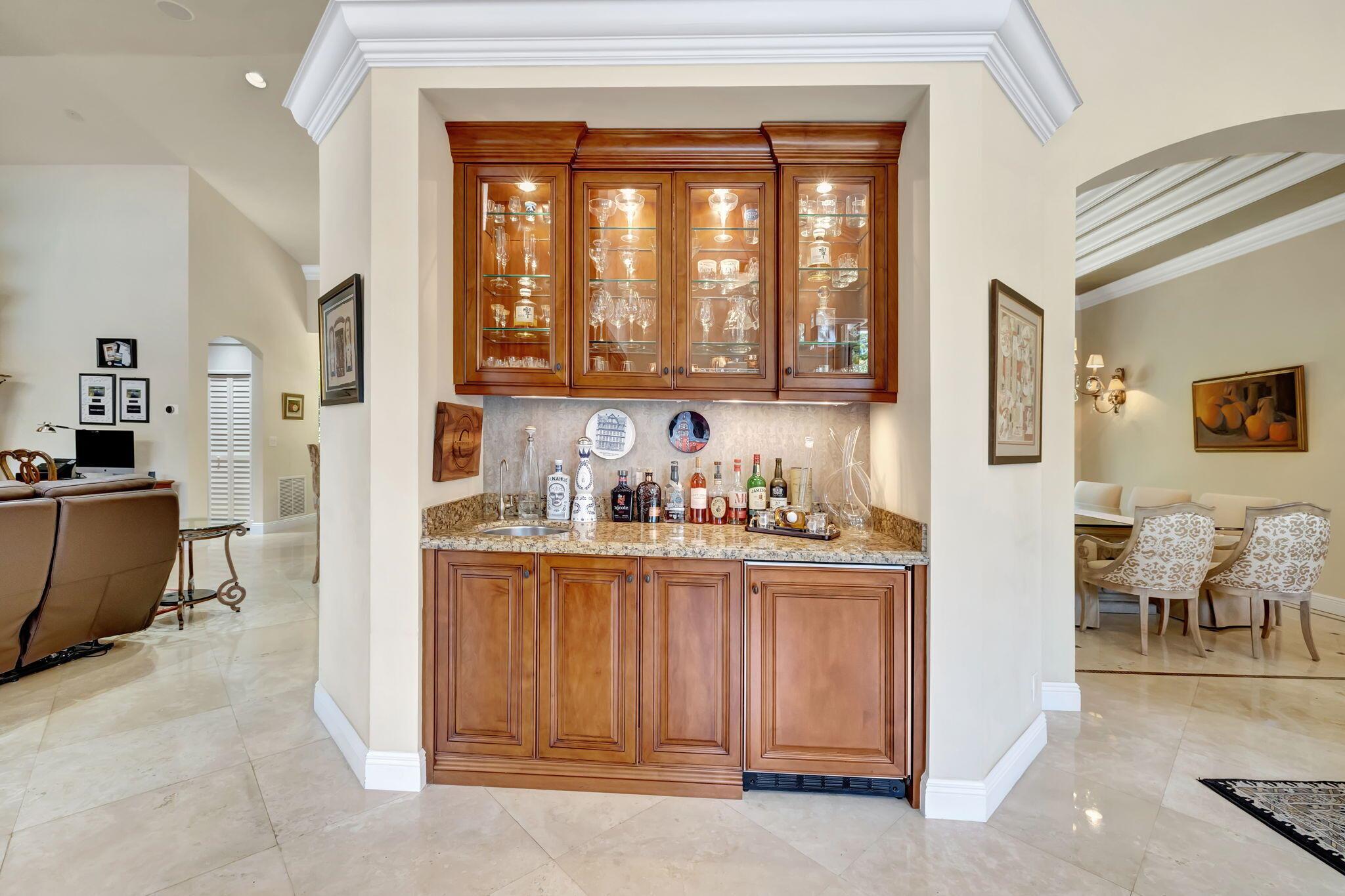 Beautiful two story courtyard style home in Boca Grove featuring six bedrooms with ensuite baths, including a one bedroom/one bath detached guesthouse. This residence offers volume ceilings allowing for plenty of light and an open floor plan which is great for entertaining. The chef's kitchen boasts a gas cooktop, two ovens, two dishwashers and two sinks, and opens to a breakfast area and family room. The living space is completed with a spacious living room and formal dining room. The primary suite, with his/her custom closets and lavish bath, looks out onto the courtyard patio and pool. There are two more guest bedrooms on the main floor, each with their own bath, and two bedrooms and a second laundry room upstairs. The detached guest house is currently set up as a theatre with a