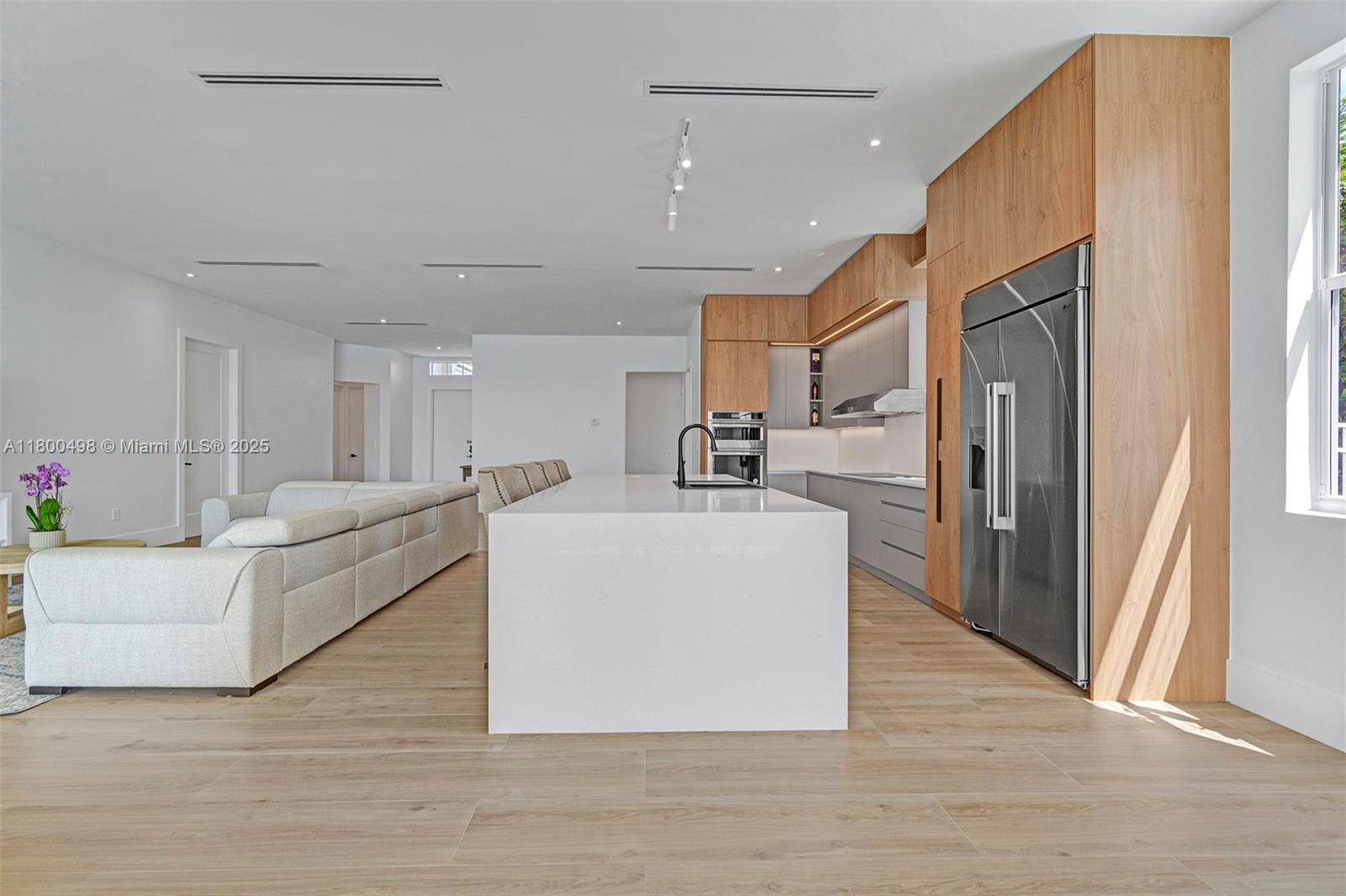 Welcome to this stunning, fully renovated 4-bed, 3-bath residence on an oversized lot in the prestigious, gated community of Riviera Isles. Tucked away on a cul-de-sac, this home offers privacy, elegance, and panoramic lake views. 240sf of living space added during remodel includes a den perfect for a home office or guest suite. The heart of the home is a designer kitchen featuring stainless steel appliances, quartz countertops, and an open concept ideal for entertaining. With volume ceilings, impact windows/doors, and a modern interior design, this residence is flooded with natural light and exudes luxury living at every turn. The spacious, fully fenced backyard with 152ft of lake frontage offers ample room for a pool, outdoor kitchen, or even a cabana house.