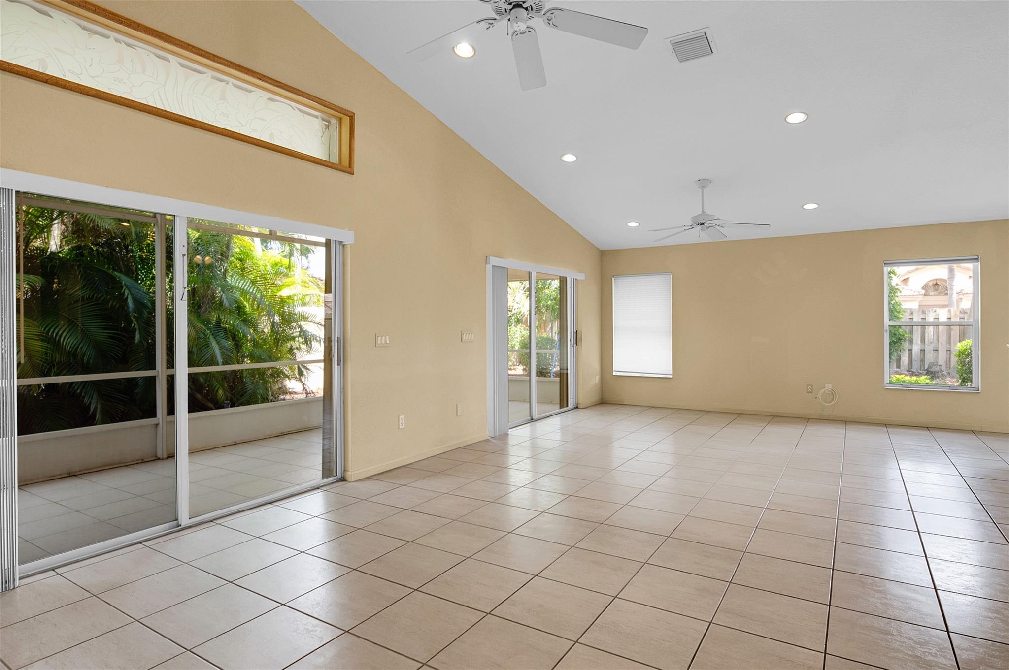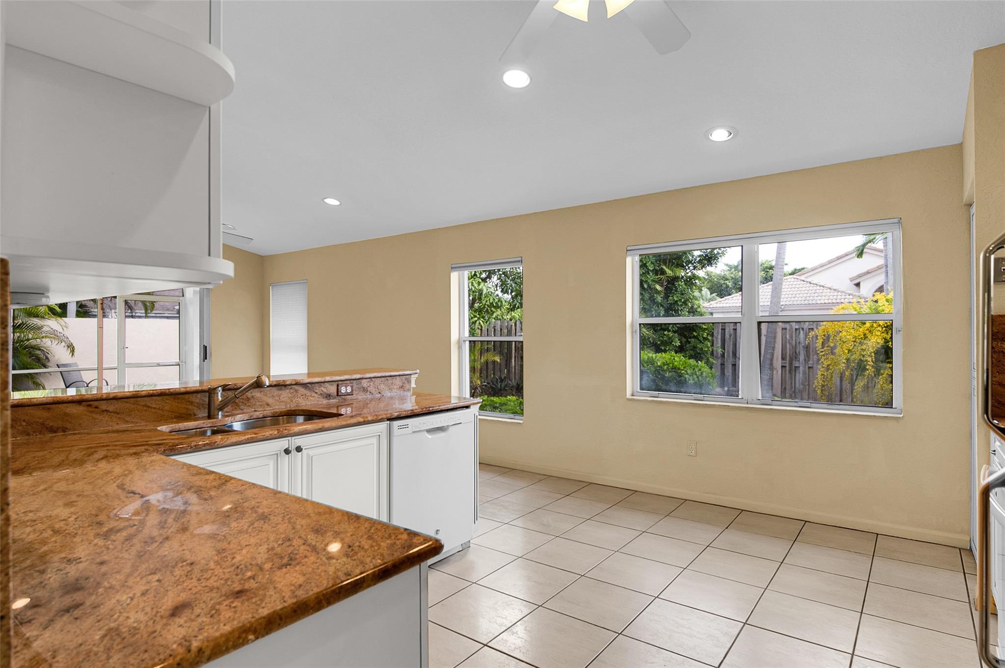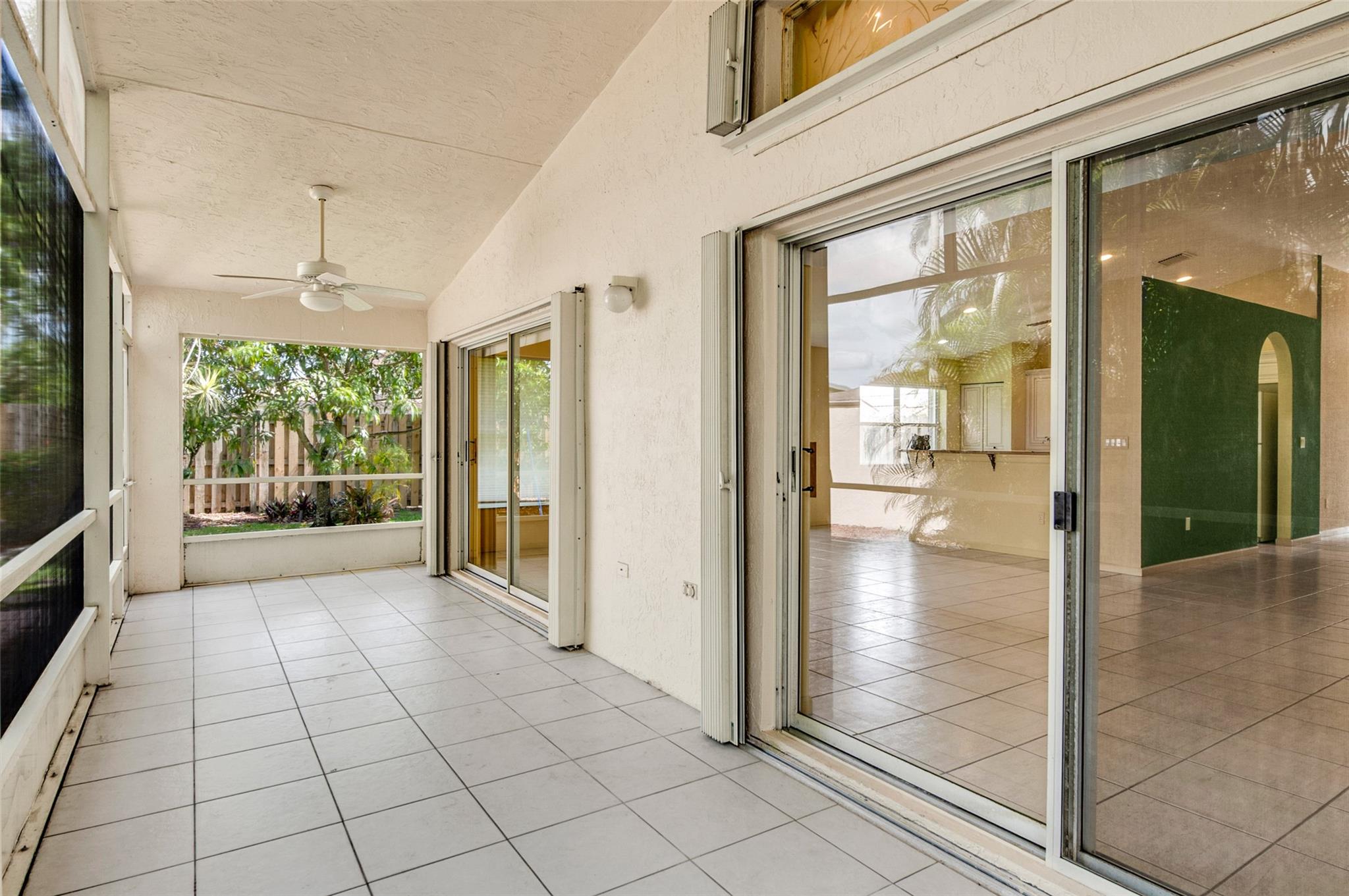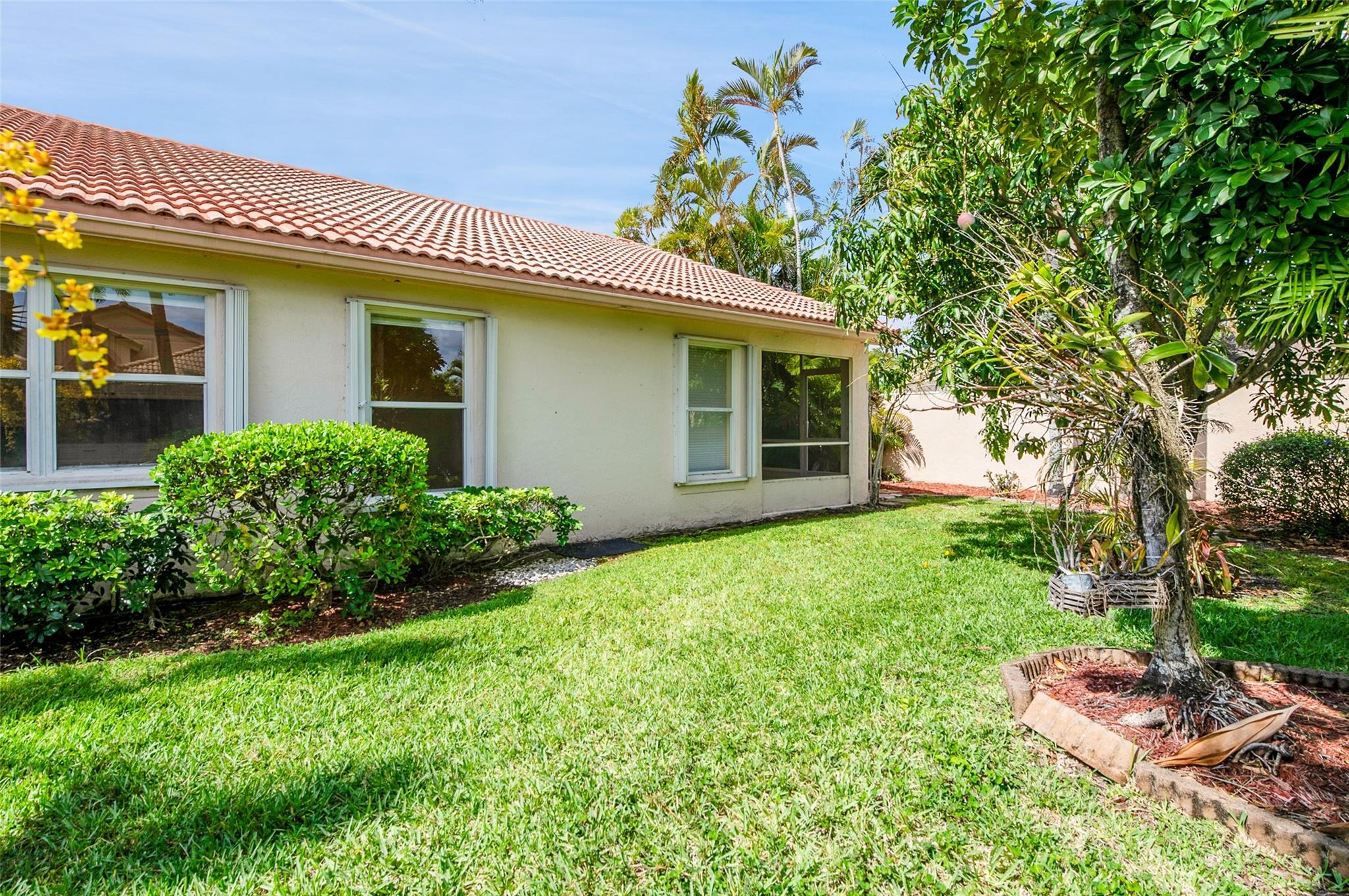 Lovely 3/2 Single Family Home on a desirable corner lot in highly sought after Gated Community of Crescent Lakes. This well-maintained home features an open-concept kitchen with granite countertops, newer appliances, wood cabinets and vaulted ceilings. Step outside to an enclosed back porch, surrounded on one side by a tiled area perfect for grilling or al fresco dining—while the other side offers an oversized side yard with ample space for a playground, future pool, or peaceful garden seating. Crescent Lakes offers many amenities including a community pool, hot tub, tennis courts, fitness center, and billiards room. This all-ages community is perfectly situated close to Boca shops, dining, and highways for easy commuting. Hurricane shutters included for peace of mind.