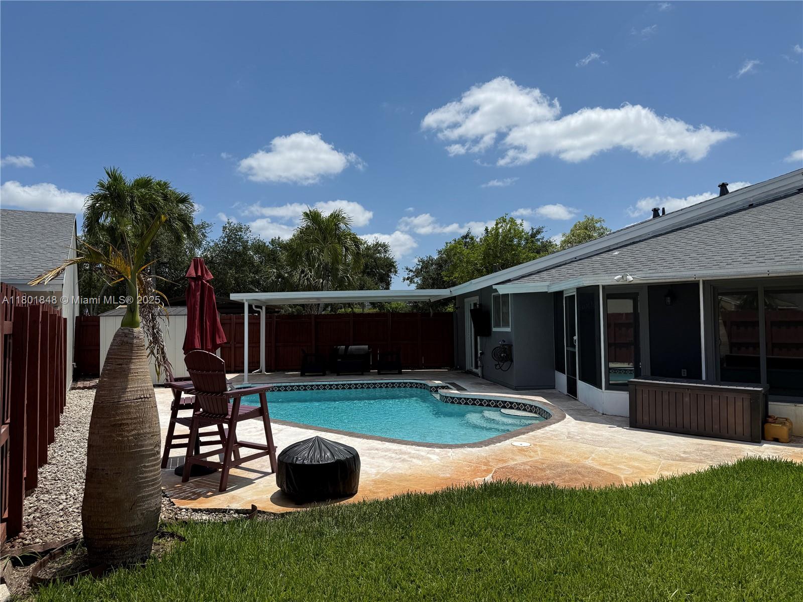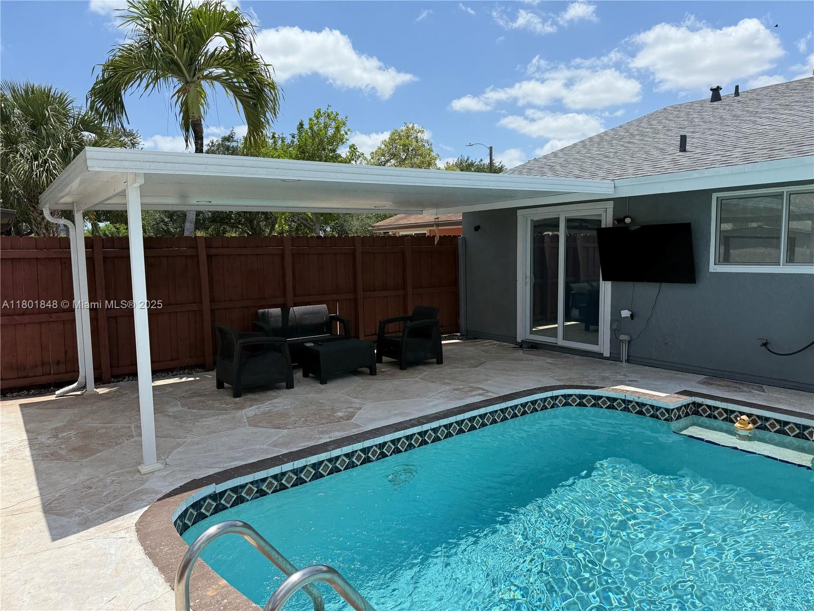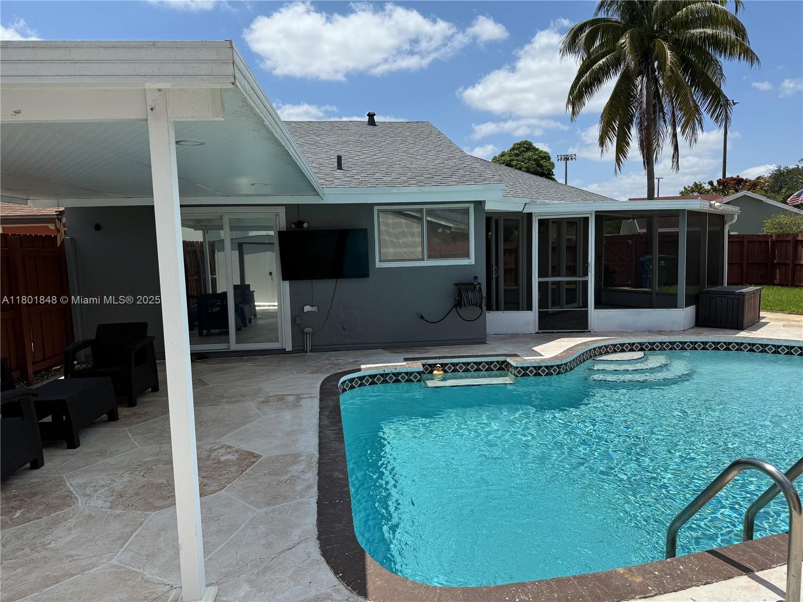 Beautifully renovated 3 bedroom 2 bath home, has new roof from 2025, new a/c and air handler, new impact windows and doors. Come enjoy this wonderful backyard with your own inground swimming pool and covered patio for family gatherings.