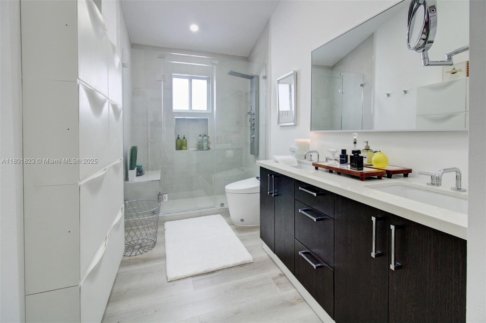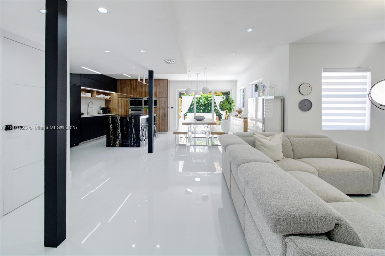 The pinnacle of modern luxury is in this fully redesigned 4-bed, 3-baths+den home in beautiful North Miami Beach. Crafted with top-tier materials, the open-concept layout features striking Black Fusion Quartzite and Ultra white quartz countertops & backsplashes, sleek Italian cabinetry w/matte & gloss finishes complements luxury appliances by Miele, Thermador, a 48" panel-ready KitchenAid fridge & Samsung washer/dryer. high-end Crystal White flooring on 1st floor & wooden upstairs w/incredibles design details. Brand-new electrical double-combo main panel & CPVC pipes & drains, Tesla EV charger & metal roof. Driveway fits 6 cars, spacious front porch & patio offer exceptional outdoor living, at just 10min. from the beach. Assumable loan at 3% int. rate!!! CHECK ATTACHMENTS!