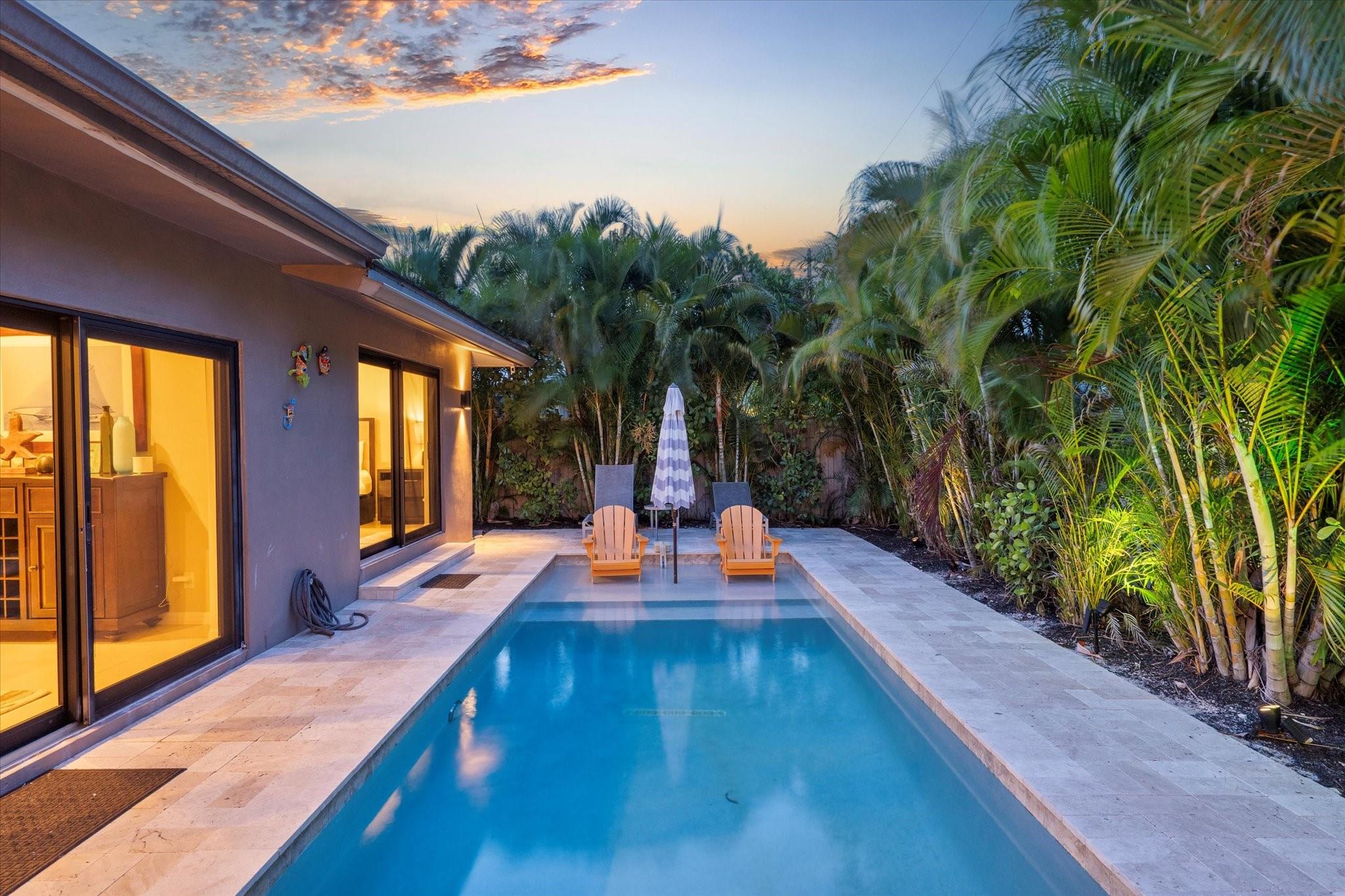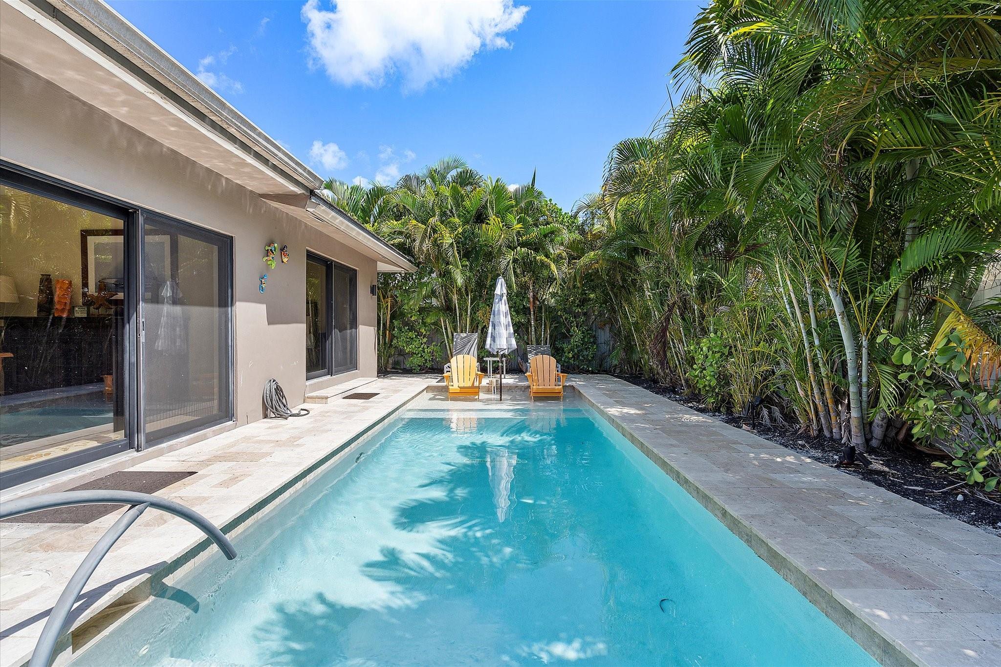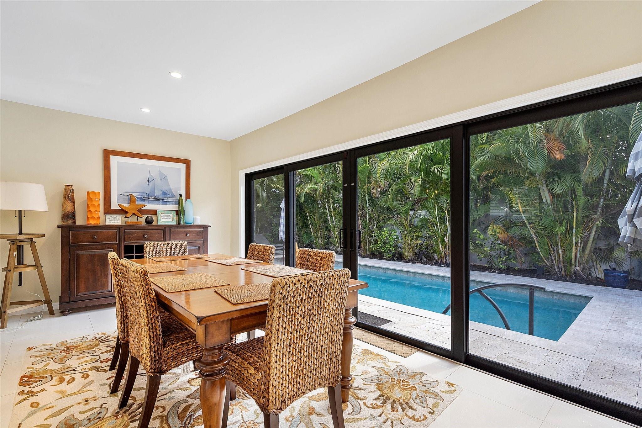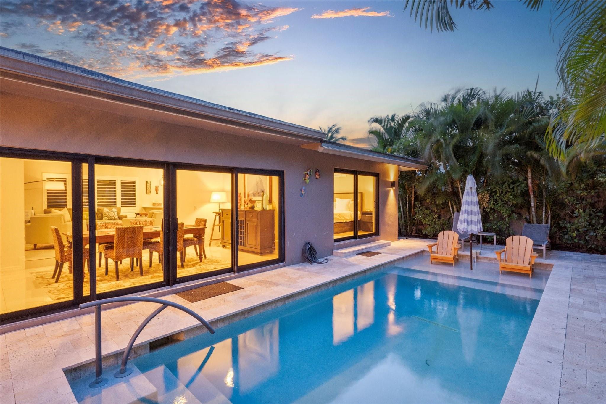 Gorgeous and move-in ready! This Coral Heights gem features glistening large ceramic tile, impact windows, and spacious bedrooms. The open kitchen offers abundant cupboard space and stainless steel appliances, flowing seamlessly into a formal dining area with full pool views and high hat lighting. Beautifully updated bathrooms and plantation shutters on most windows add comfort and style. Outdoors, enjoy a fenced backyard, sparkling pool with sundeck, and a private front porch perfect for morning coffee or evening wine. Located in a no-HOA area, this home includes a primary suite with a bonus split A/C—ideal for those who love it cool at night.