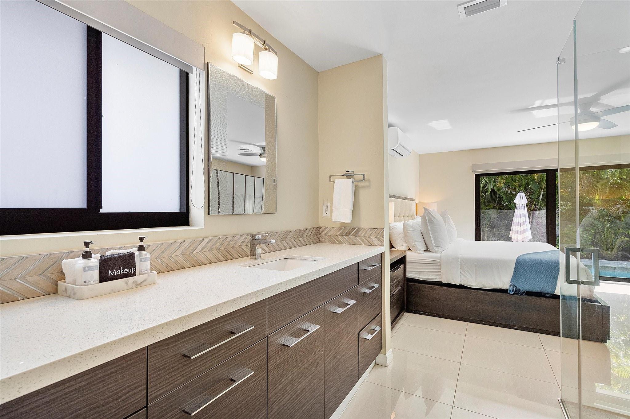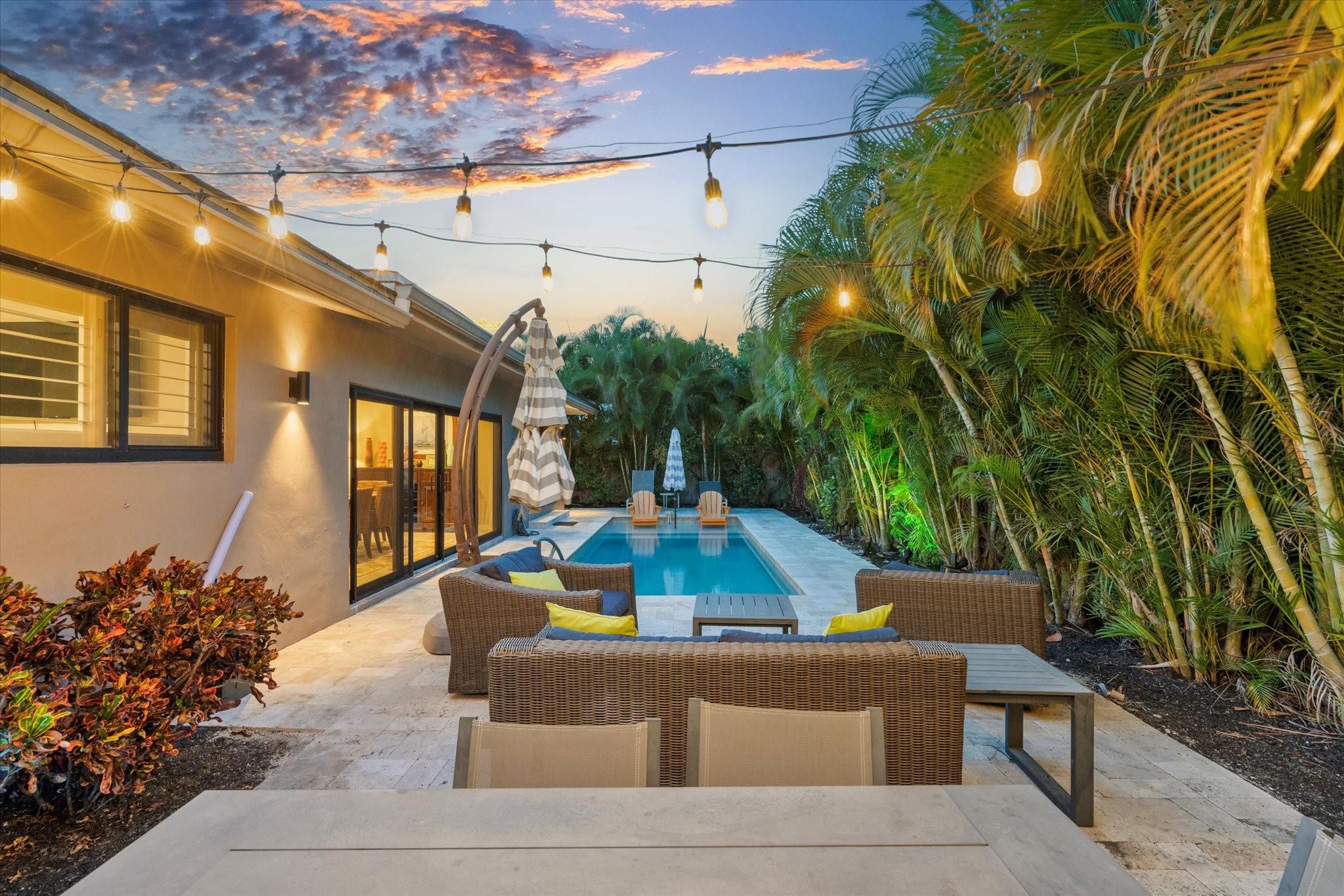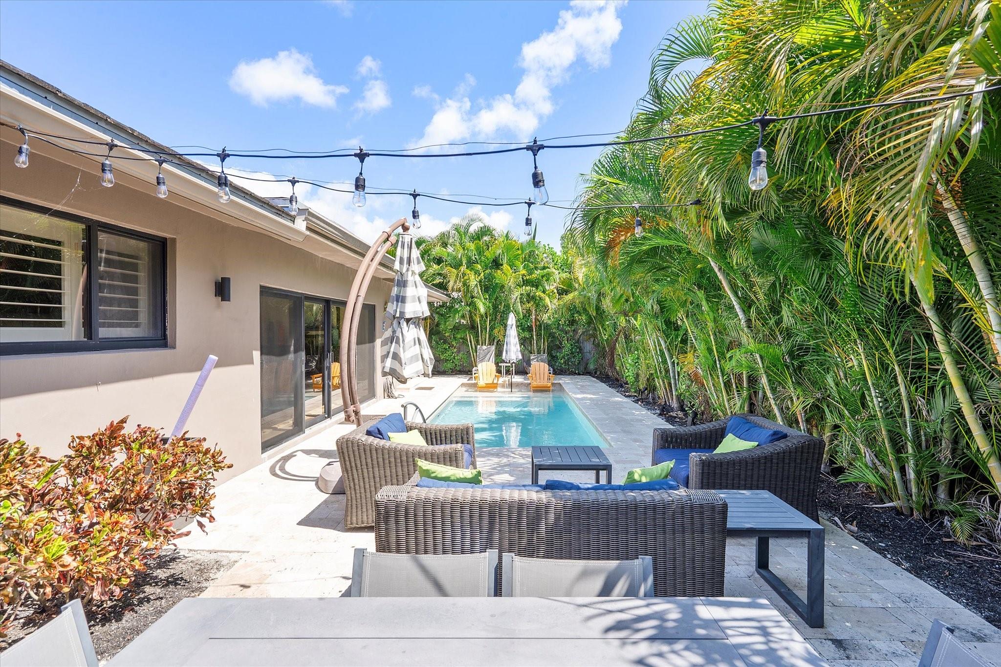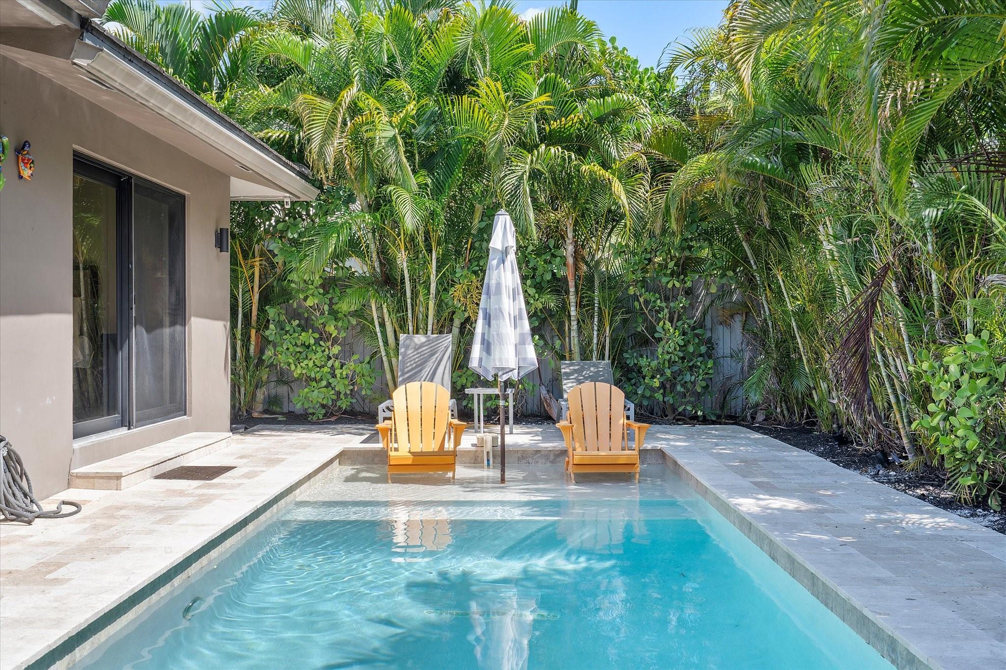 Gorgeous and move-in ready! This Coral Heights gem features glistening large ceramic tile, impact windows, and spacious bedrooms. The open kitchen offers abundant cupboard space and stainless steel appliances, flowing seamlessly into a formal dining area with full pool views and high hat lighting. Beautifully updated bathrooms and plantation shutters on most windows add comfort and style. Outdoors, enjoy a fenced backyard, sparkling pool with sundeck, and a private front porch perfect for morning coffee or evening wine. Located in a no-HOA area, this home includes a primary suite with a bonus split A/C—ideal for those who love it cool at night.