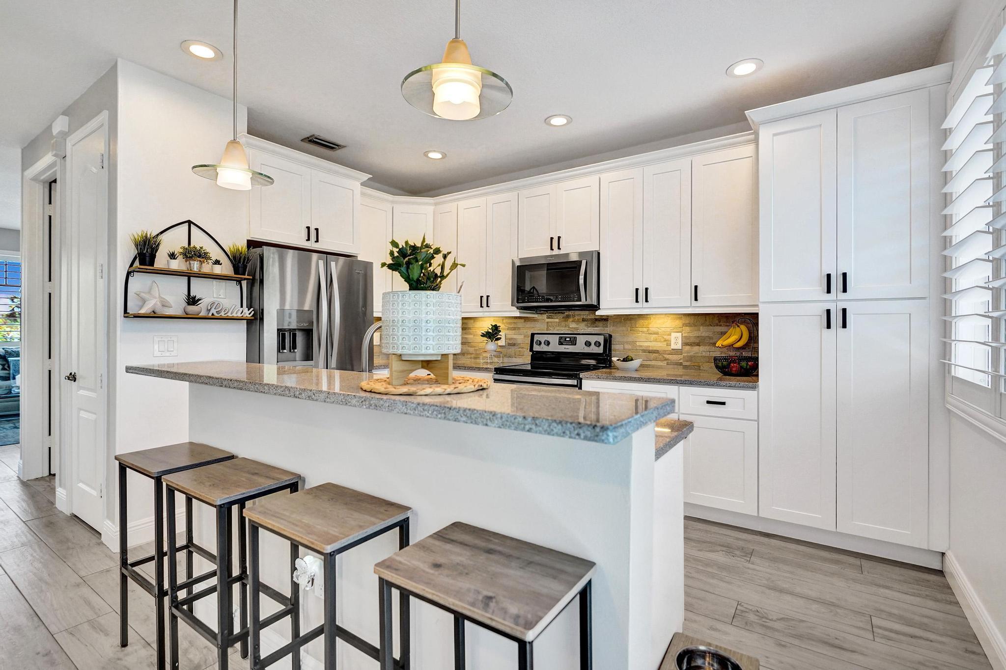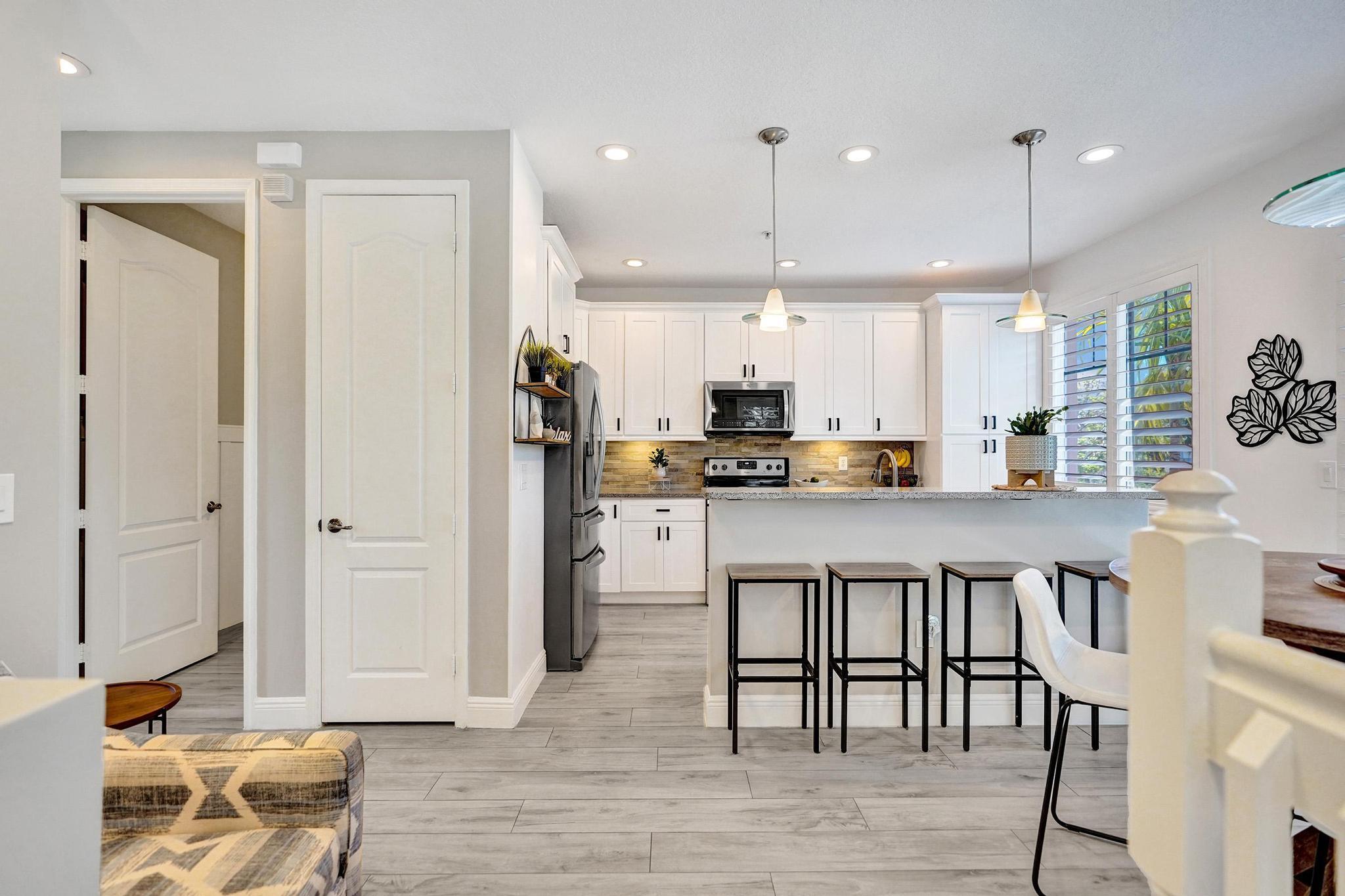One-of-a-kind stunning Tri-Level remodeled Townhome, 3-bedroom 3.5 bath 2 car garage corner unit located in one of the most desirable communities in East Boca Raton, 1.25 miles to the beach and 3.1 miles to Mizner Park, downtown Boca Raton. Walking distance to FAU and LYNN University. Property features extra windows with lots of natural lighting, Townhome offers newer gourmet kitchen with granite countertops, newer stainless-steel appliances and beautiful wood cabinetry, gorgeous new flooring throughout, all remodeled bathrooms, newer A/C and W/H! Owner who has kept this home in excellent condition with a Gorgeous view of the pond and the pool area. Private walkway to your front door with gorgeous, lush landscaping all around!
