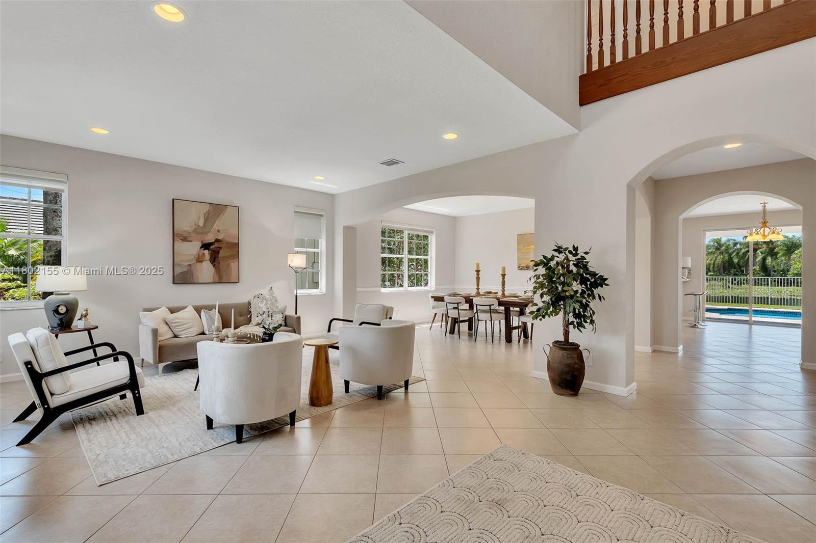 Lakefront luxury in Weston Hills--a must see!! Discover elegance and comfort in this six-bedroom oasis, boasting stunning lake views, a private pool, and a brand- NEW 2025 roof (currently being installed). Soaring ceilings, elegant tile flooring, and fresh neutral paint create a welcoming ambiance. The kitchen shines with granite countertops, backsplash, and ample storage. A first-floor bedroom (used as office) and full bath offer flexibility for guests or remote work. Step outside to a travertine patio with a spacious overhang—perfect for entertaining while enjoying the serene water views. Master bedroom upstairs is very spacious with a sitting room used as a study room. Accordion Shutters throughout. Don’t miss this exceptional opportunity!