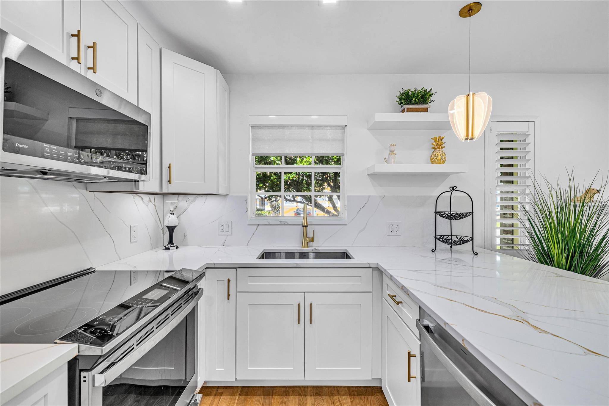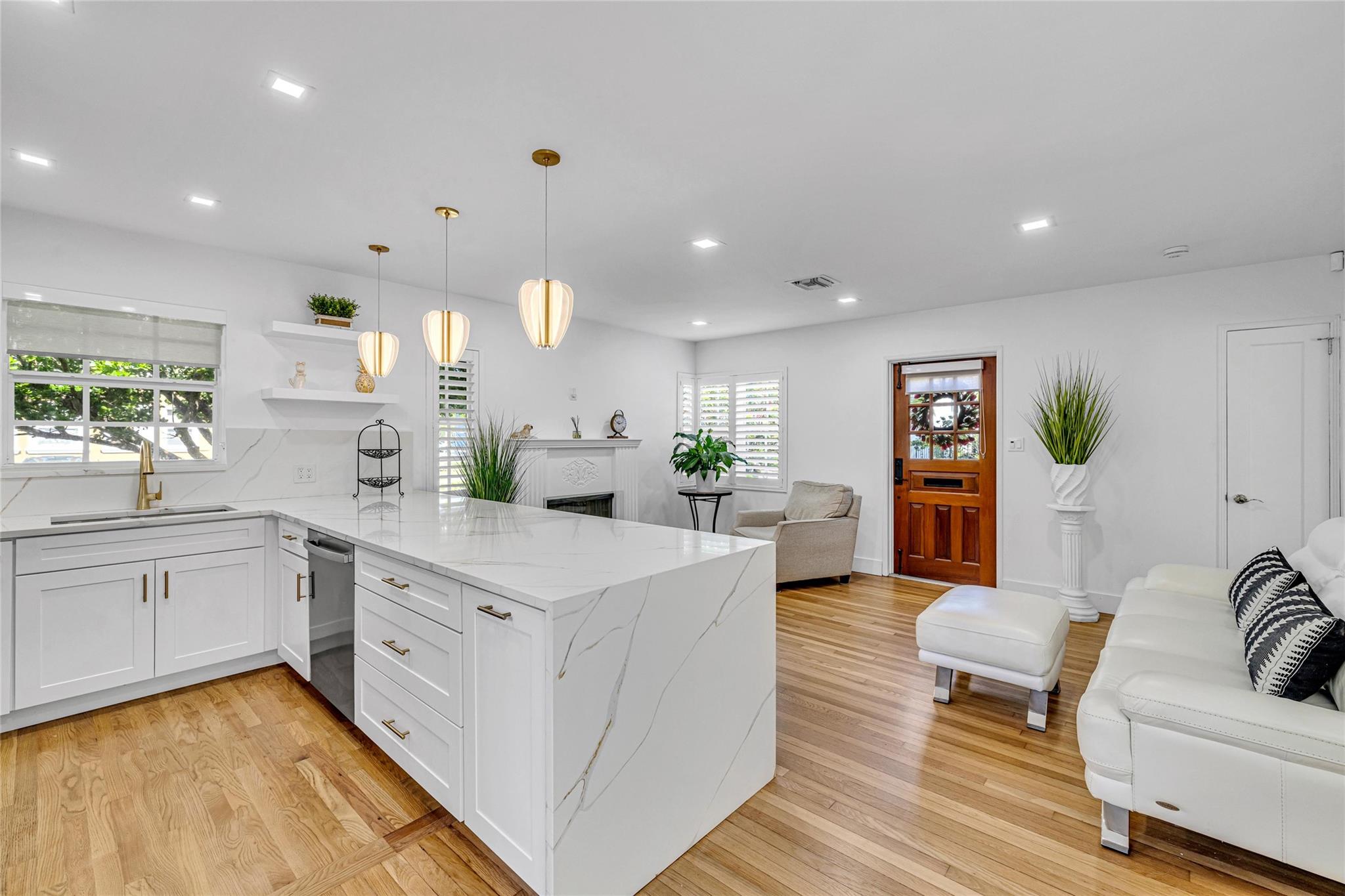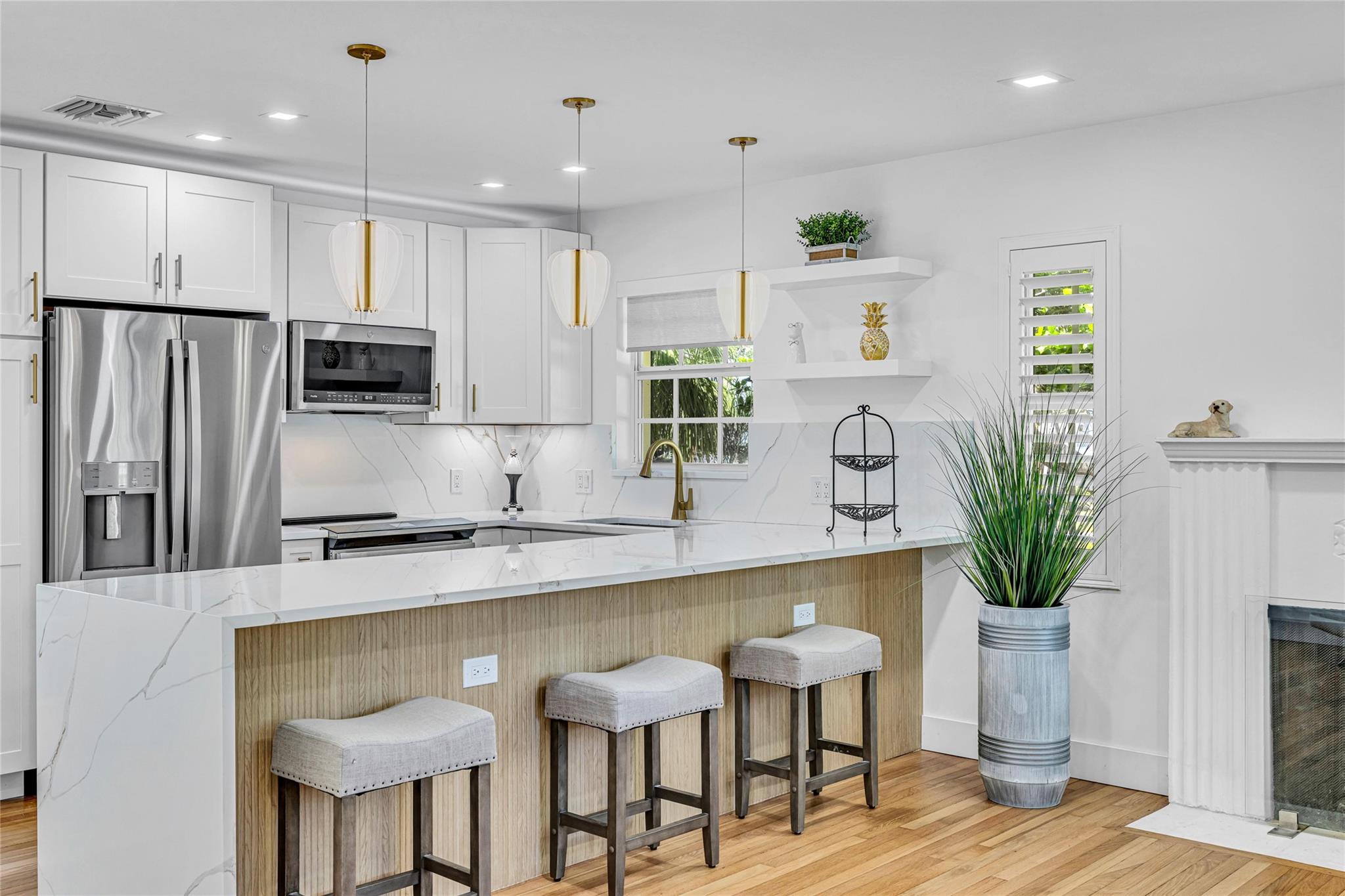 Comes with a full home warranty! Set on a coveted corner lot in Victoria Park, this timeless residence impresses w/ vaulted ceilings, original wood & Cuban tile floors, and a natural gas fireplace. A reimagined kitchen shines with quartz counters, brass hardware, and premium appliances, while brand-new spa-inspired baths elevate daily living. Impact windows/doors, updated systems, and newer A/C ensure peace of mind. The rare oversized air-conditioned garage—with vaulted ceiling and plumbing—offers potential for a 4th bedroom, gym, office, or nursery. French doors open to lush gardens, brick paths, and room for a pool. Walk to Las Olas, just 2 miles from Fort Lauderdale Beach, minutes to airport & Brightline. Prime location, endless possibilities, & unmatched character—this home has it all!
