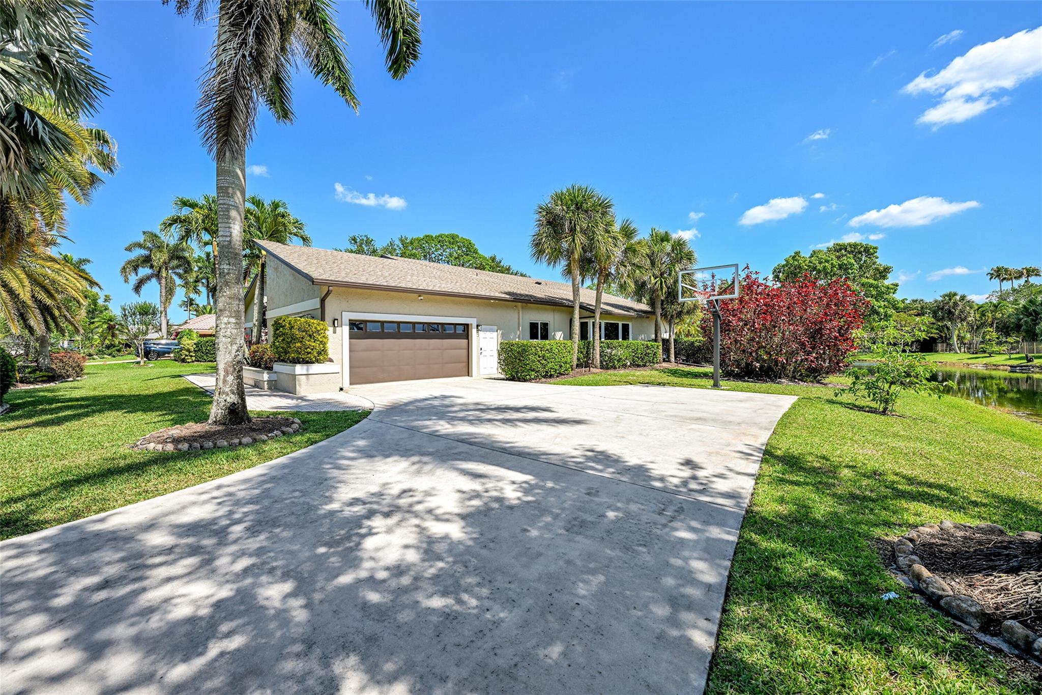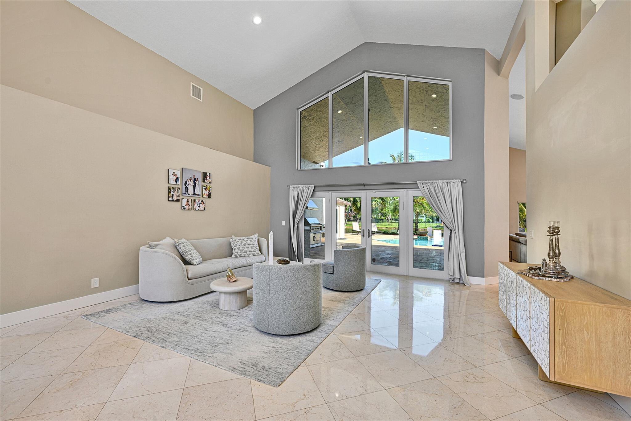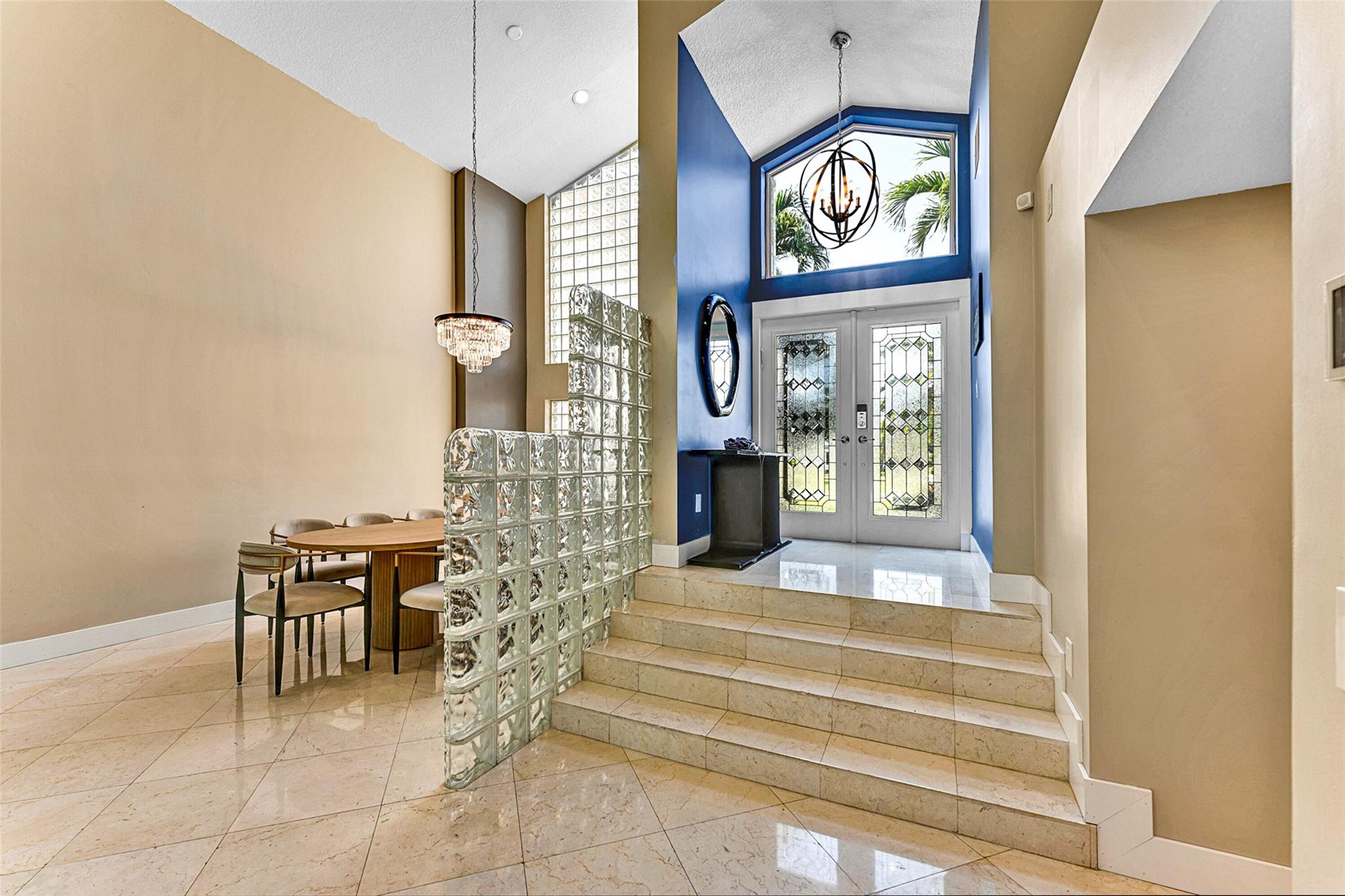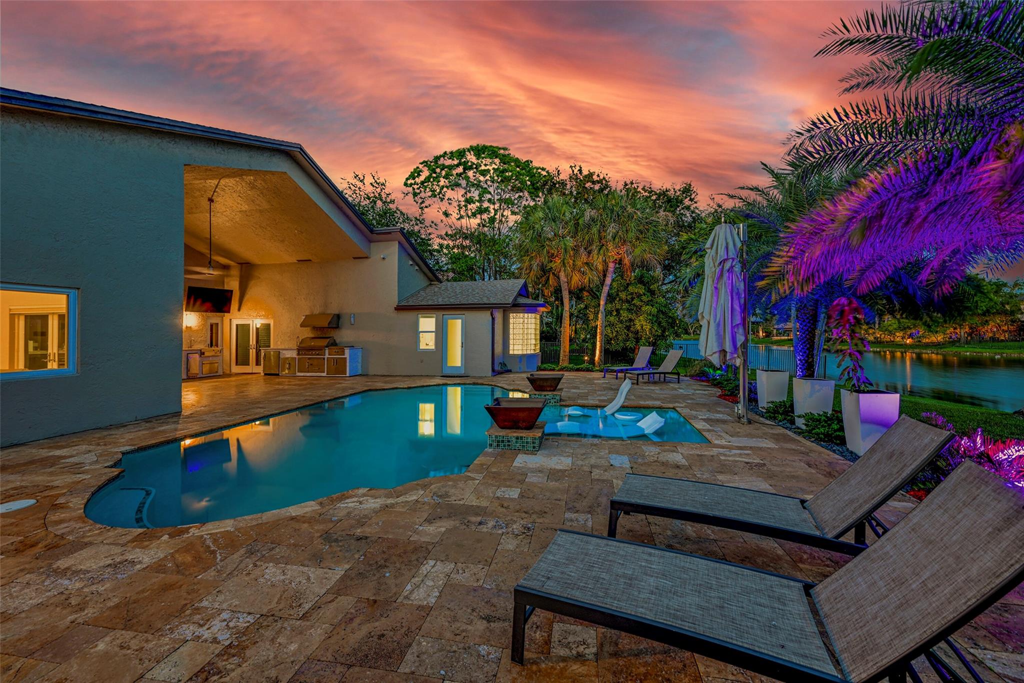Discover refined living in the highly desirable Whispering pines community- where every home is uniquely crafted and surrounded by lush landscapes, peaceful water views and the soothing sounds of nature. This 5-bed, 3.5-bathroom estate is set on a builder's acre and offers the perfect balance of elegance and comfort. Designed with soaring 31-foot ceilings, the home features marble flooring in common areas, hardwood floors in bedrooms, and built in closets throughout. The oversized primary bedroom overlooks the pool. At the heart of the home is a chef-inspired kitchen outfitted with Thermador appliances and built in Miele coffee system. Step outside to your resort style backyard with heated pool, stunning water views, and a brand new in ground basketball hoop. This rare find won't last.