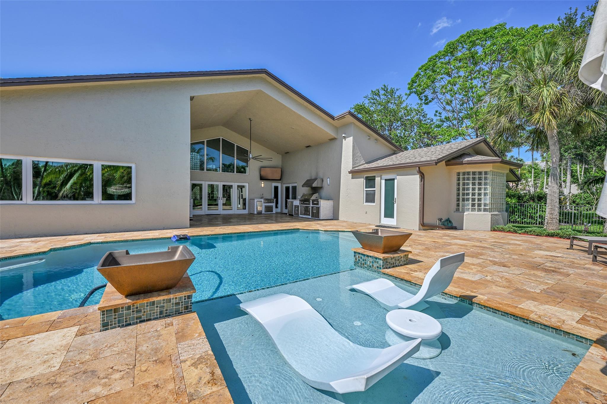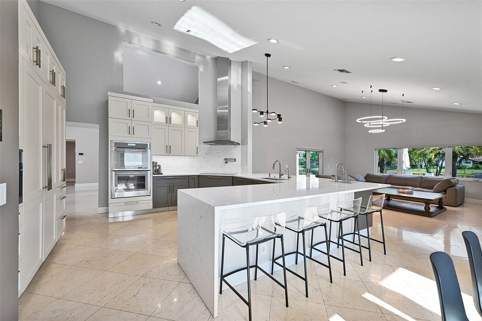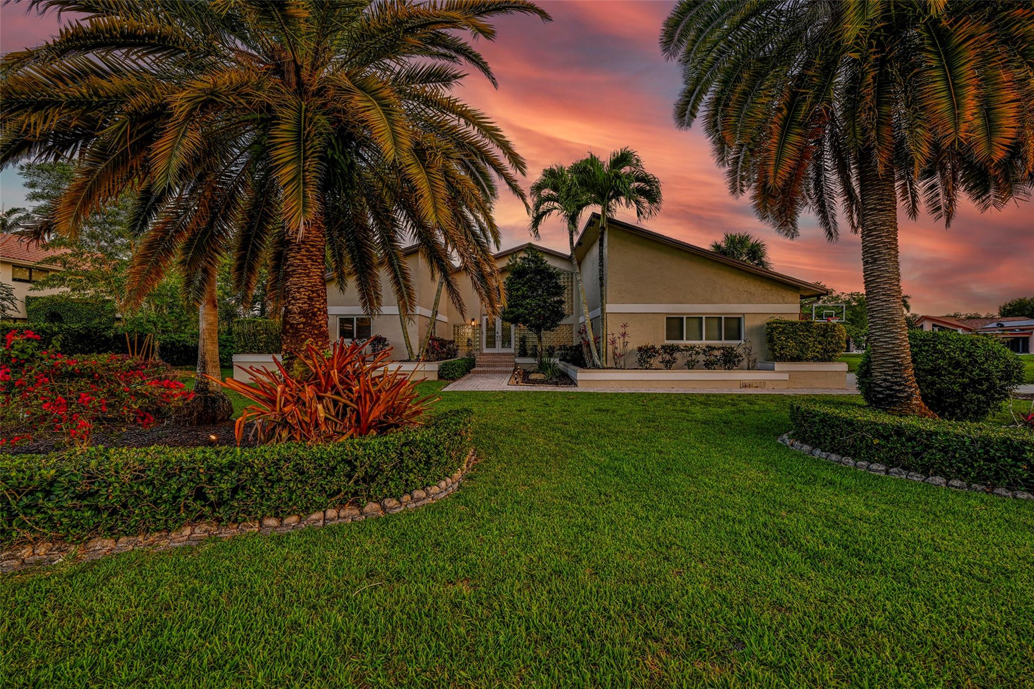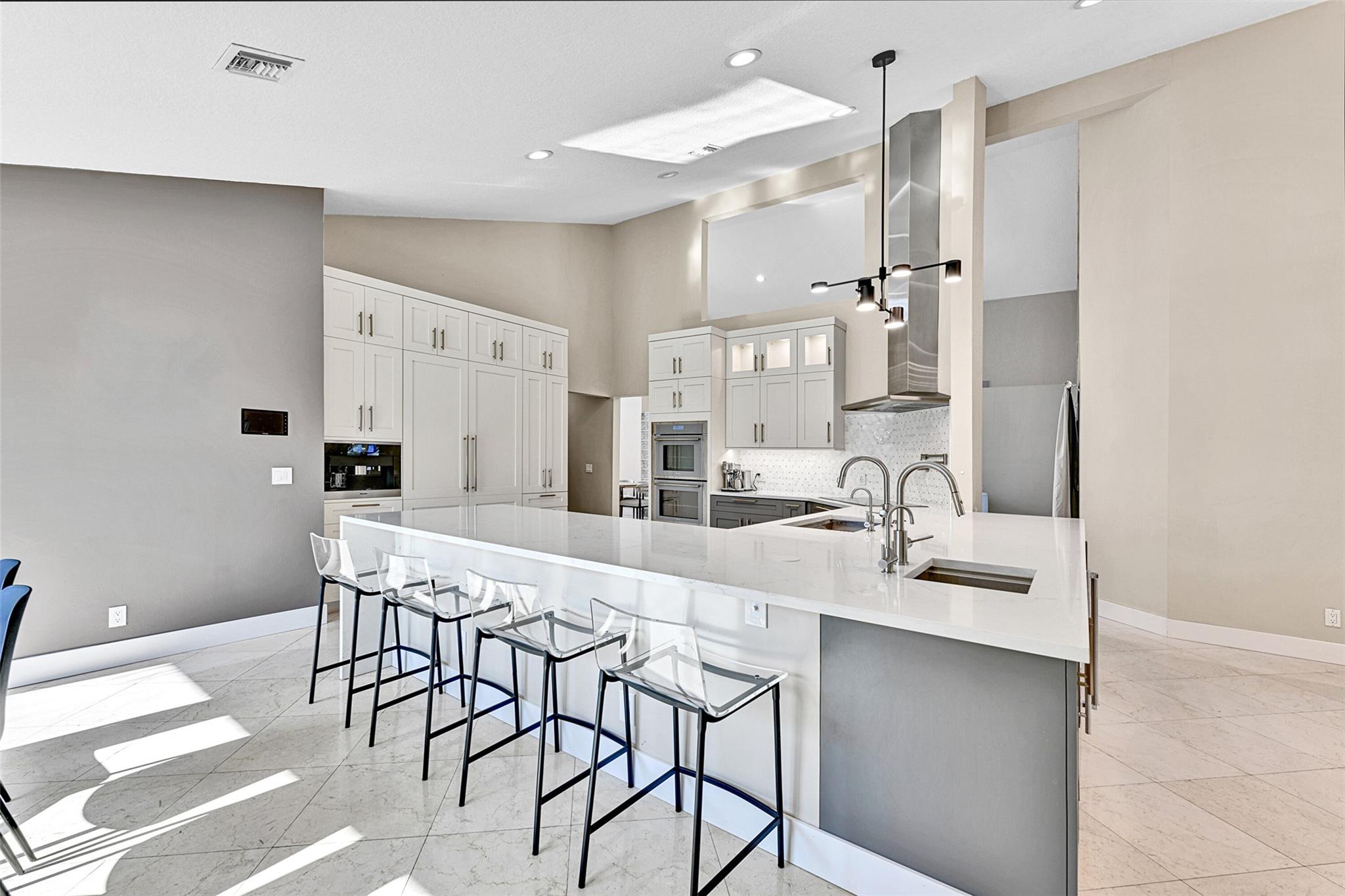 Discover refined living in the highly desirable Whispering pines community- where every home is uniquely crafted and surrounded by lush landscapes, peaceful water views and the soothing sounds of nature. This 5-bed, 3.5-bathroom estate is set on a builder's acre and offers the perfect balance of elegance and comfort. Designed with soaring 31-foot ceilings, the home features marble flooring in common areas, hardwood floors in bedrooms, and built in closets throughout. The oversized primary bedroom overlooks the pool. At the heart of the home is a chef-inspired kitchen outfitted with Thermador appliances and built in Miele coffee system. Step outside to your resort style backyard with heated pool, stunning water views, and a brand new in ground basketball hoop. This rare find won't last.