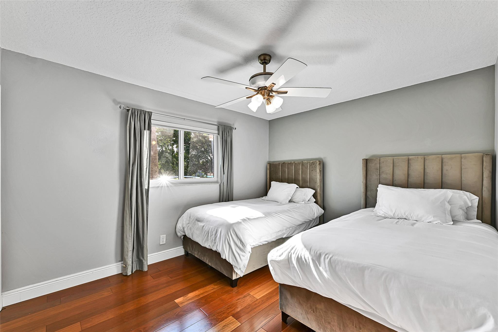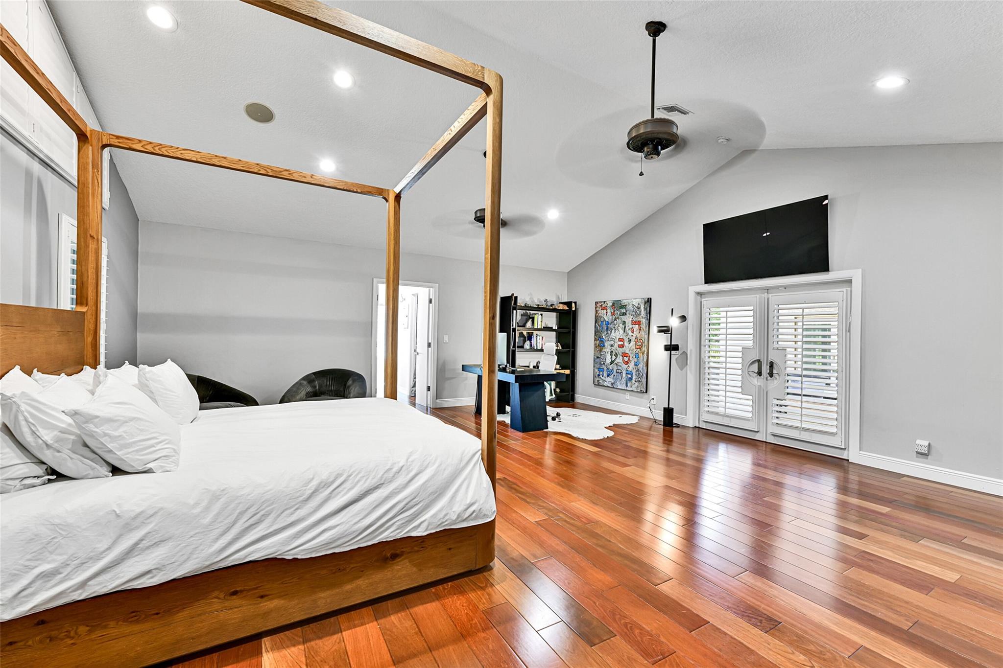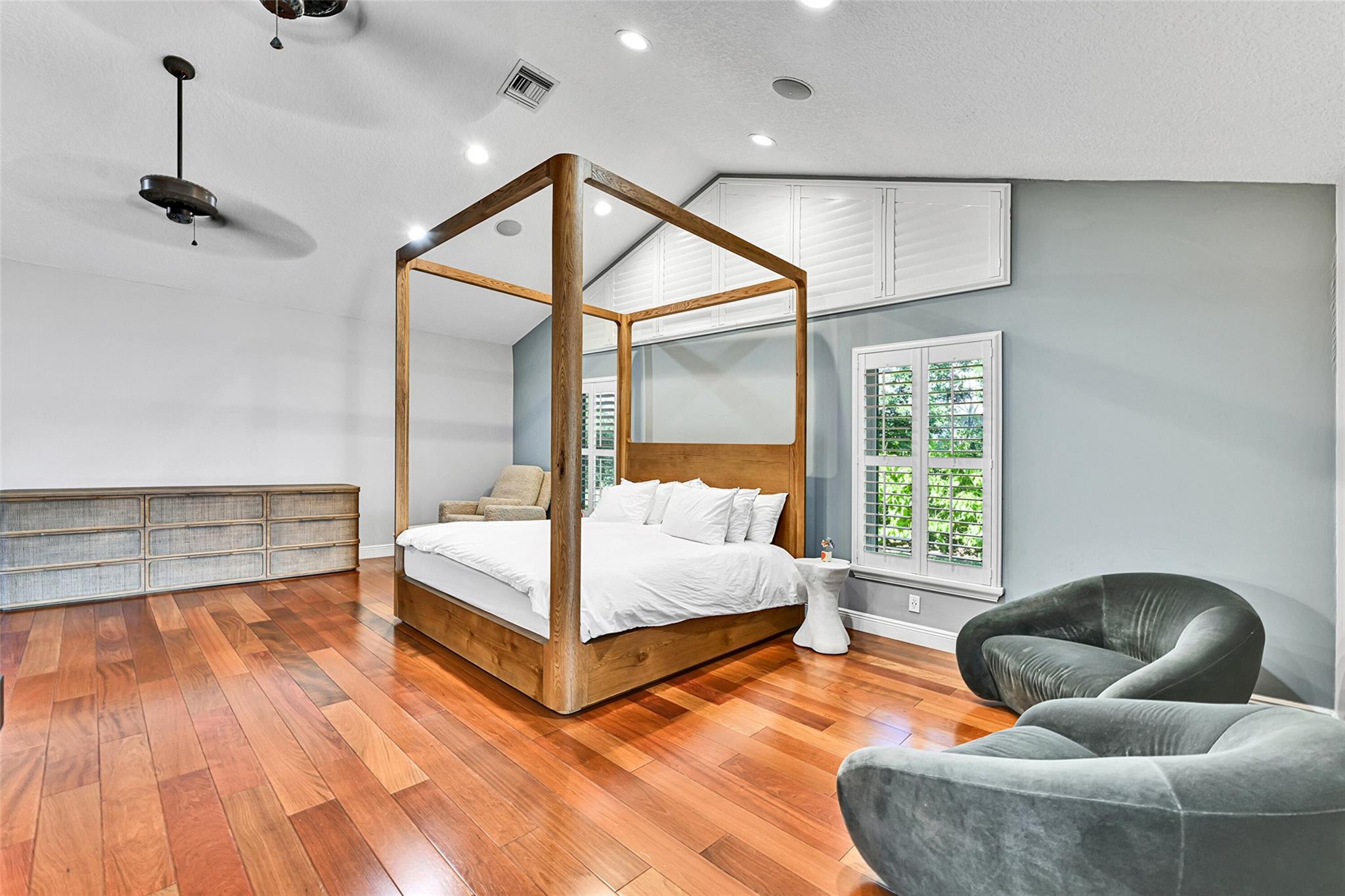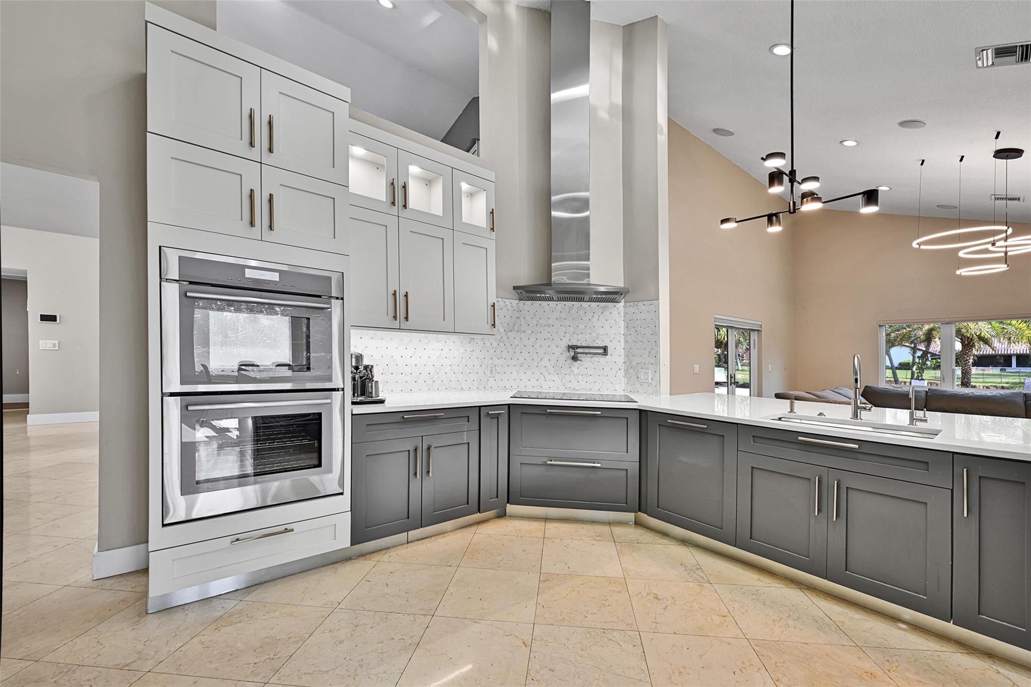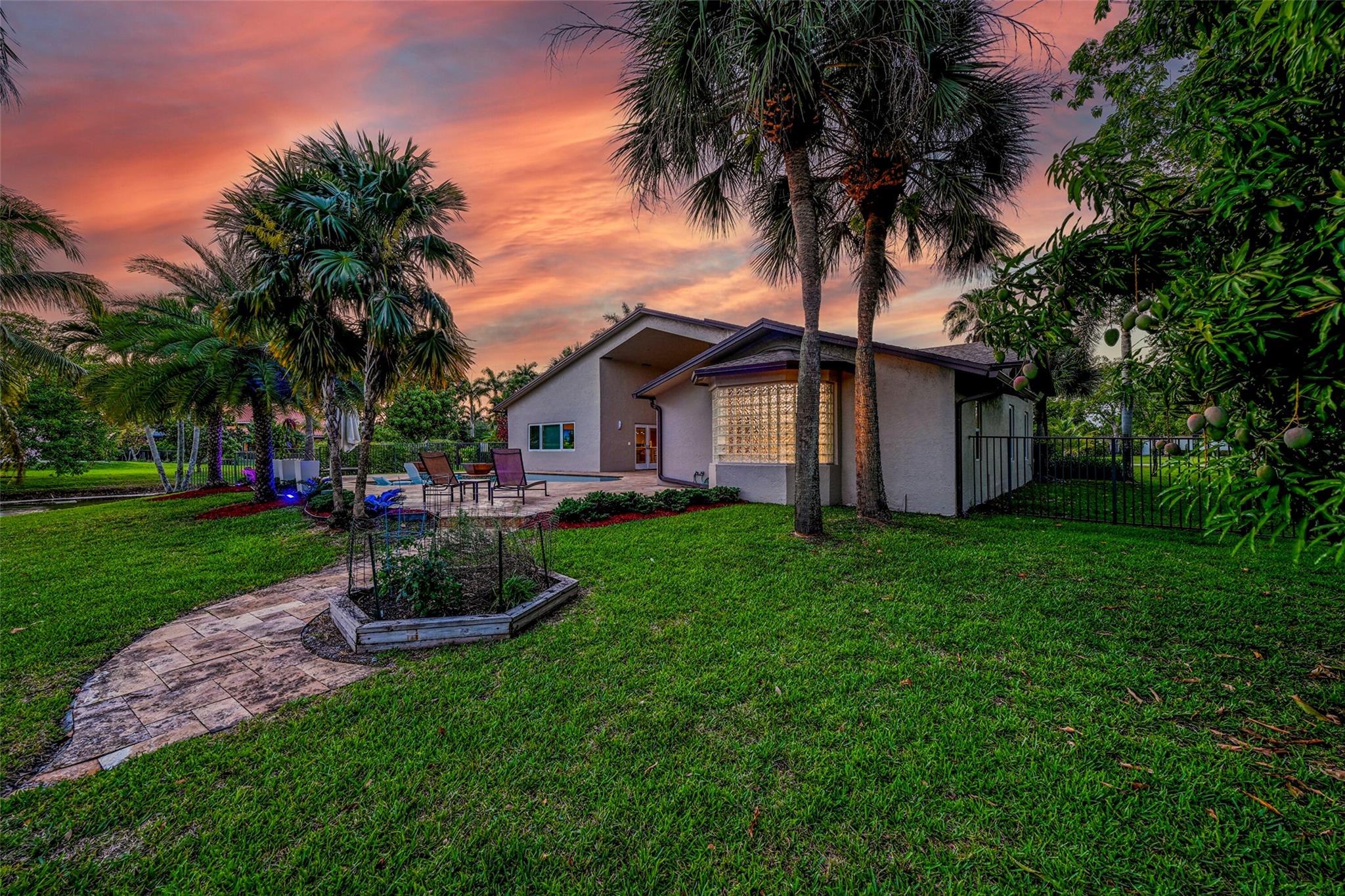 Discover refined living in the highly desirable Whispering pines community- where every home is uniquely crafted and surrounded by lush landscapes, peaceful water views and the soothing sounds of nature. This 5-bed, 3.5-bathroom estate is set on a builder's acre and offers the perfect balance of elegance and comfort. Designed with soaring 31-foot ceilings, the home features marble flooring in common areas, hardwood floors in bedrooms, and built in closets throughout. The oversized primary bedroom overlooks the pool. At the heart of the home is a chef-inspired kitchen outfitted with Thermador appliances and built in Miele coffee system. Step outside to your resort style backyard with heated pool, stunning water views, and a brand new in ground basketball hoop. This rare find won't last.