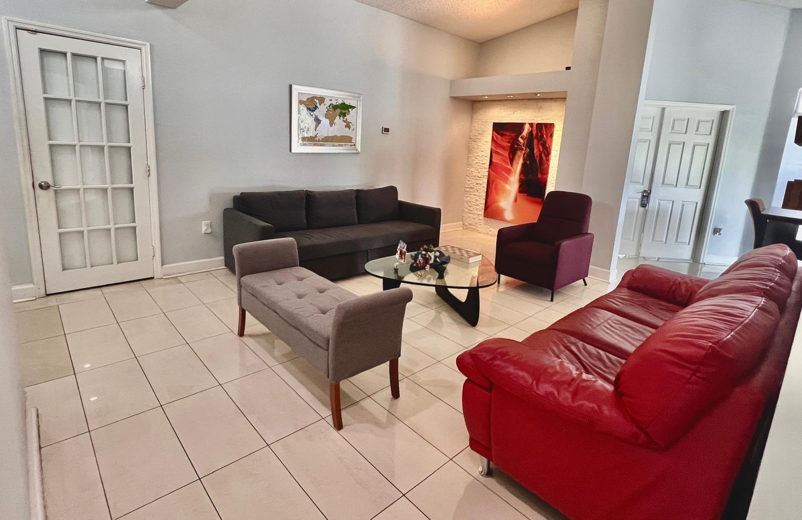 This smart home is located in the exclusive, gated Doral Isles community, offering resort-style amenities including pools, gym, tennis courts, sauna, and fitness classes such as spinning and Pilates. This elegant one-story residence features 3 bedrooms, 2 bathrooms, plus a dedicated home theater room that can easily be converted into a guest bedroom. Enjoy modern smart home features like automated blinds and smart lighting. The spacious backyard is perfect for entertaining or relaxing, and there’s an outlet available for electric vehicle charging.