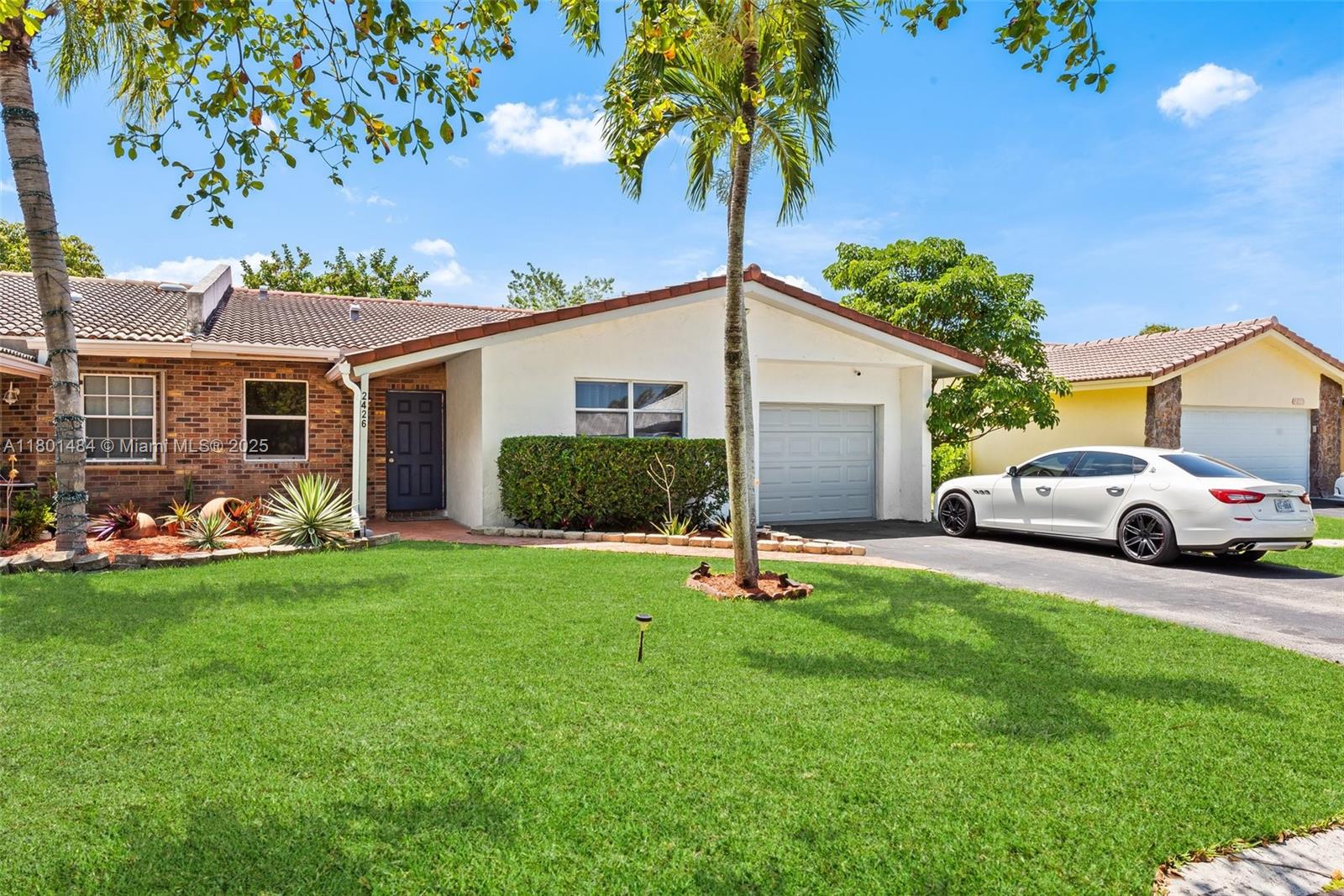 Welcome to 2426 NW 91st Ave – the lowest-priced 4BD/3BA home with over 2,200 sq ft under-air in a non HOA community in Coral Springs. This spacious half-duplex lives like a single-family home & features a private, fenced backyard & oversized 1-car garage. The chef’s kitchen includes granite counters, wood cabinetry, a large island with seating for six+, w/new stainless steel appliances. Recent upgrades: impact windows/doors, new flat roof over lanai (2024), AC(2019), water heater(2023), washer/dryer(2023), & air ducts cleaned/coated (2025). Jack & Jill bath connects two bedrooms. Enjoy a lanai-style patio w/ large backyard. Located off University Dr & walkable to Publix, Trader Joe’s, Starbucks, dining, & shopping. Move-in ready & full of value in a prime Coral Springs neighborhood.