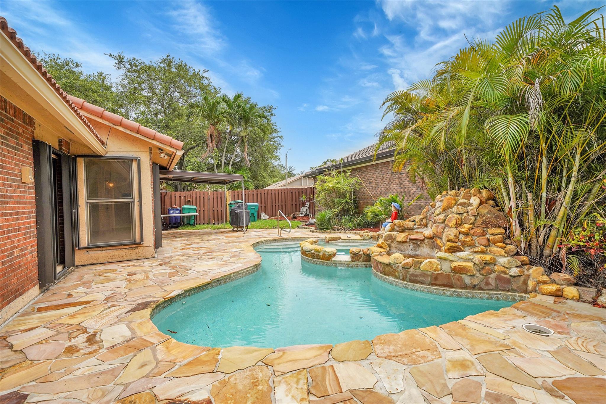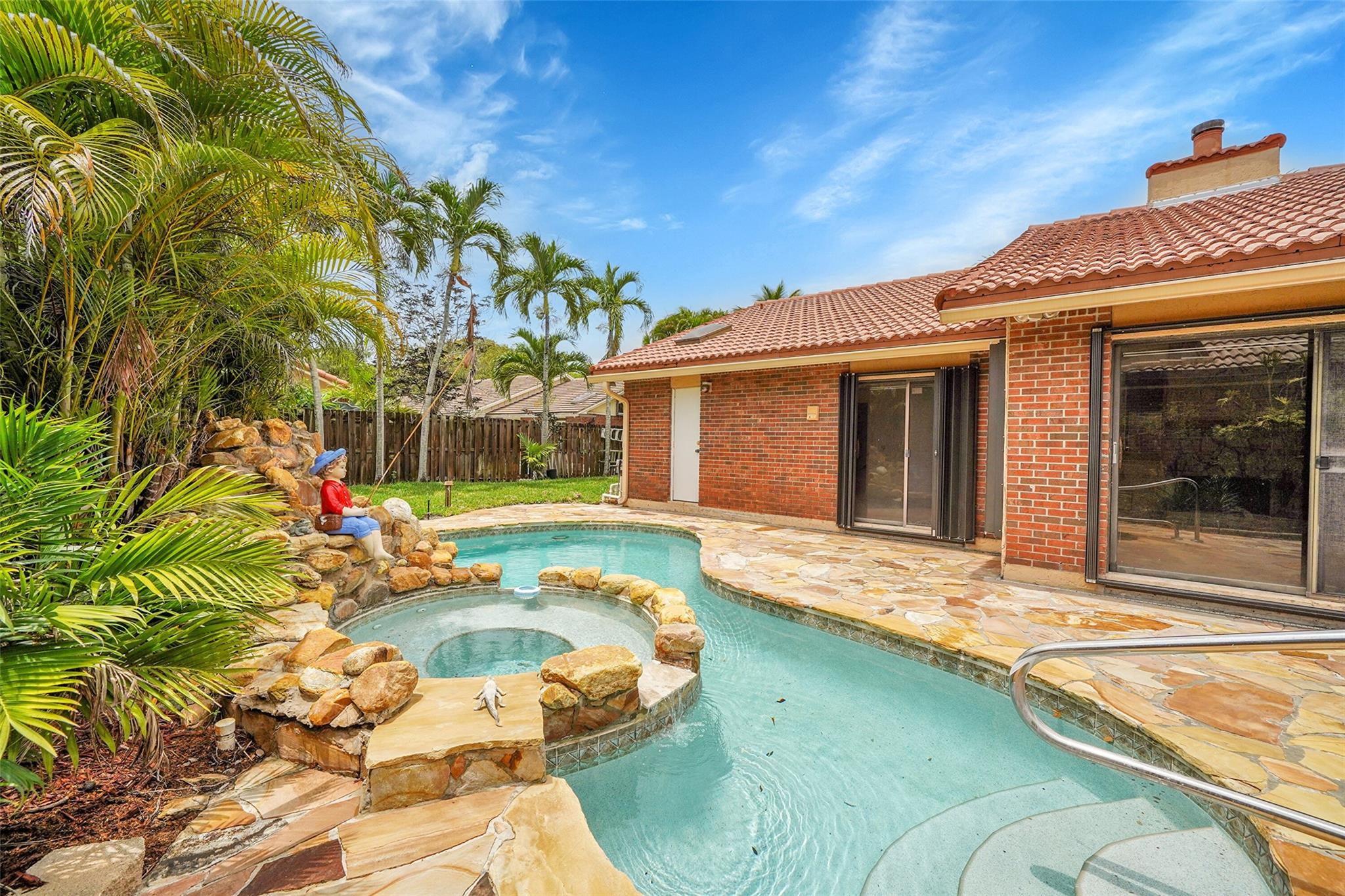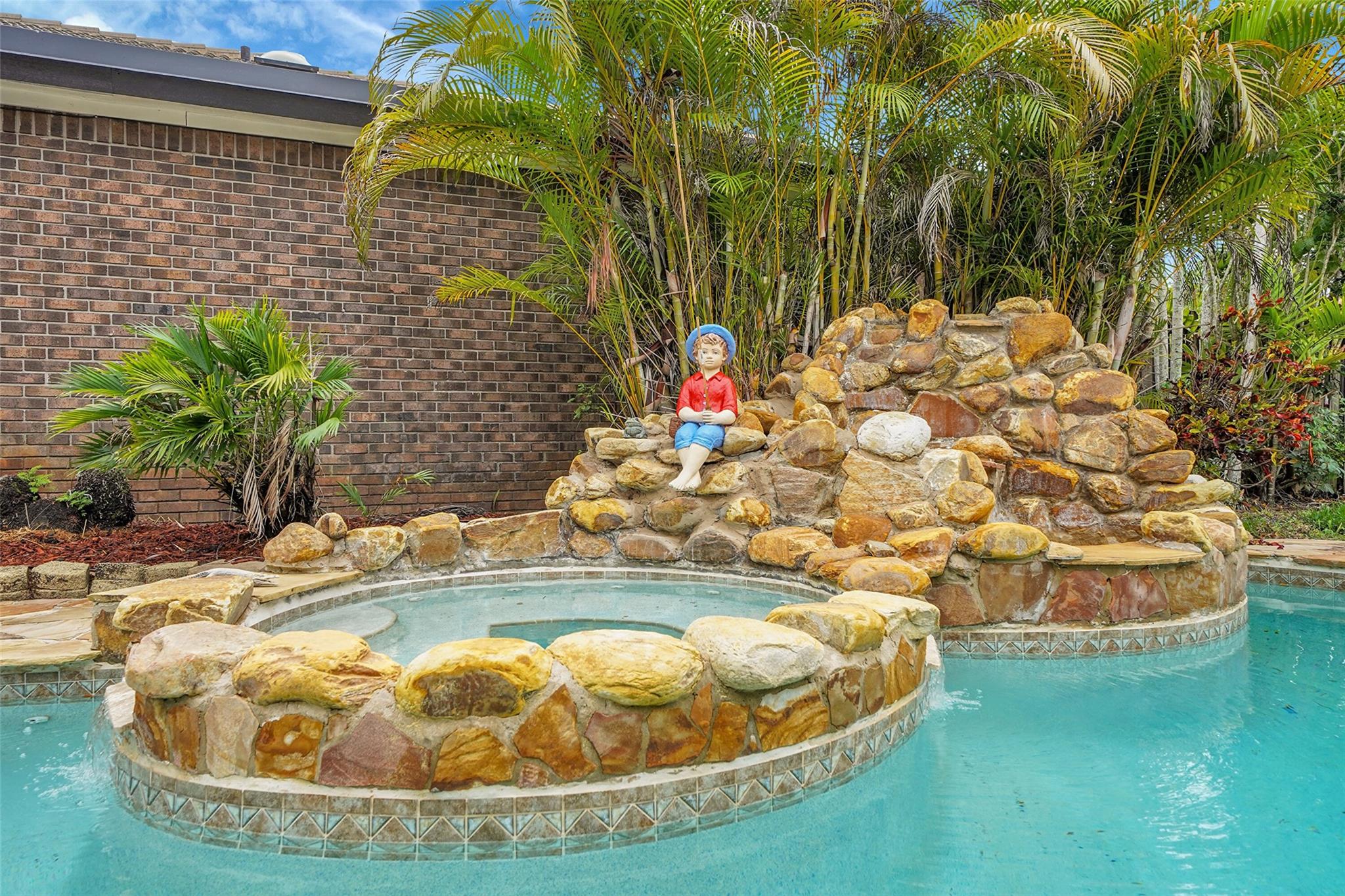 Welcome to Quaypoint at Rock Creek. This hidden gem home features 3 bedrooms, 2 bathrooms, a living room, a family room, a dining room, an open kitchen & a unique glass atrium space (perfect for a garden). Enjoy a fireplace on cold Florida nights, an amazing pool with a jacuzzi & waterfall for summer BBQs plus an oversized "L" shaped yard. Newer air conditioner & brand new hot water heater. Barrel tile roof that is 18 years old & just certified with 6 more years life from a licensed roofer. Accordion shutters & freshly painted inside. Pool was redone a couple of years ago, stamped concrete pool deck, & newer pool pump. Fresh mulch & all new sod. "A" rated schools, community parks, rec center & walking trail. Close to 75, Memorial West, Publix, Fresh Market & more