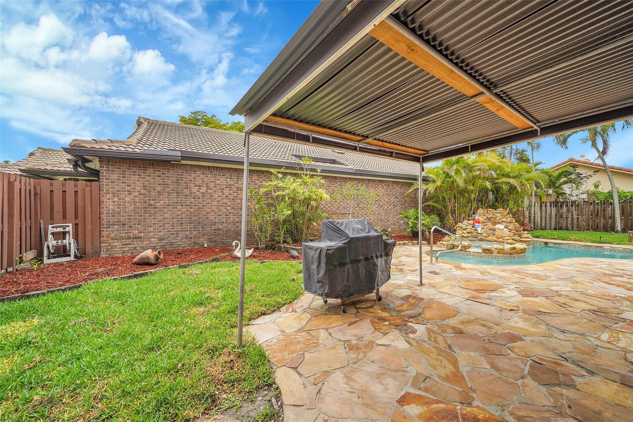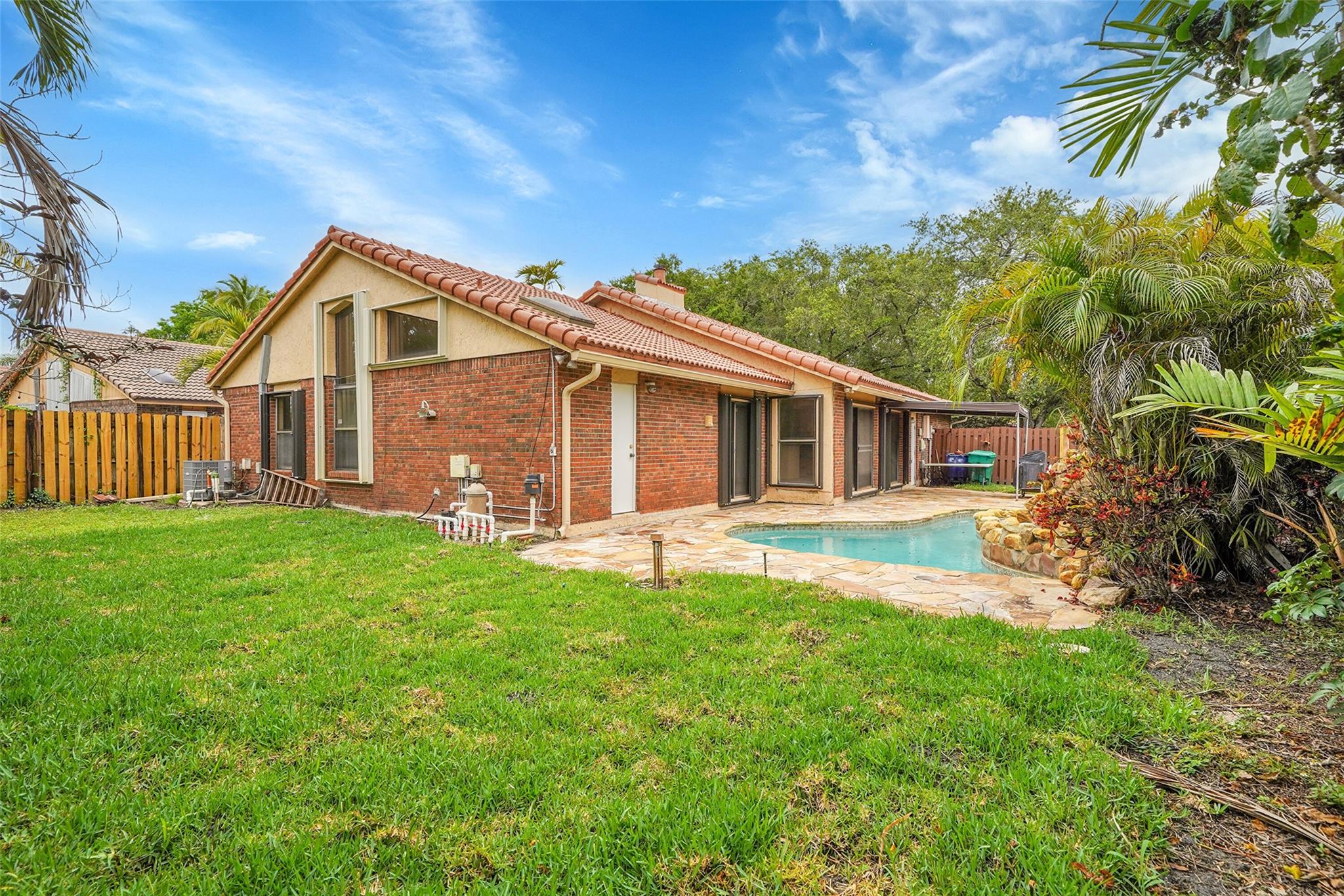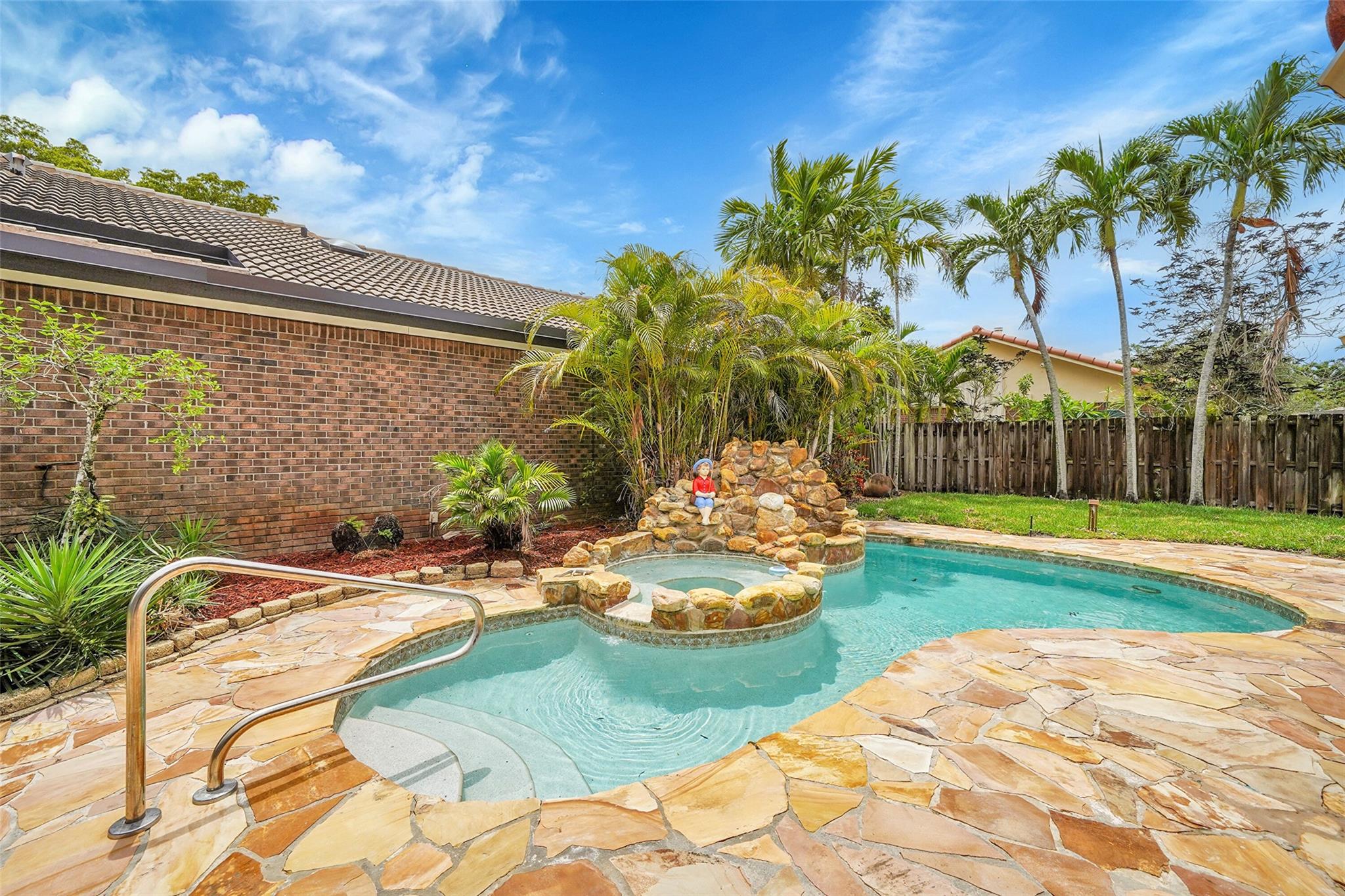 Welcome to Quaypoint at Rock Creek. This hidden gem home features 3 bedrooms, 2 bathrooms, a living room, a family room, a dining room, an open kitchen & a unique glass atrium space (perfect for a garden). Enjoy a fireplace on cold Florida nights, an amazing pool with a jacuzzi & waterfall for summer BBQs plus an oversized "L" shaped yard. Newer air conditioner & brand new hot water heater. Barrel tile roof that is 18 years old & just certified with 6 more years life from a licensed roofer. Accordion shutters & freshly painted inside. Pool was redone a couple of years ago, stamped concrete pool deck, & newer pool pump. Fresh mulch & all new sod. "A" rated schools, community parks, rec center & walking trail. Close to 75, Memorial West, Publix, Fresh Market & more