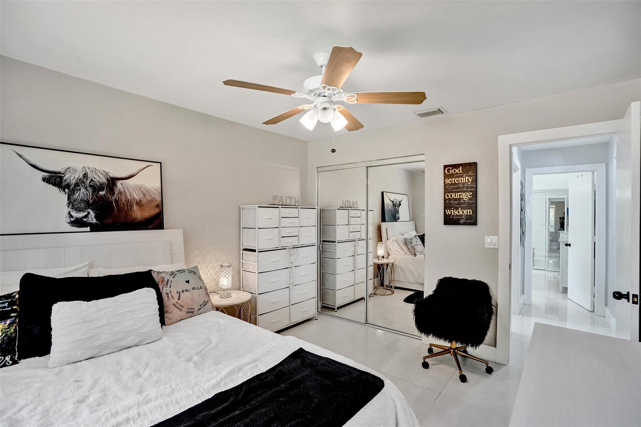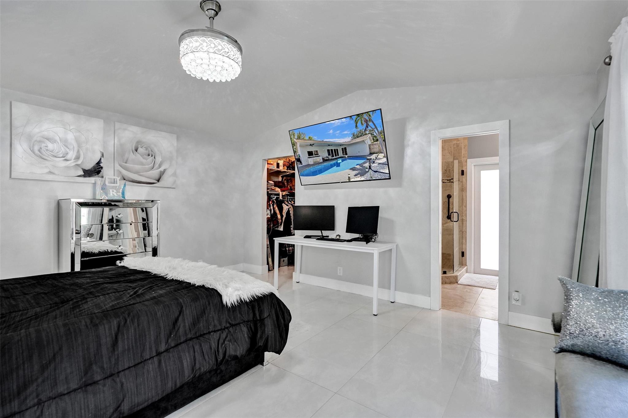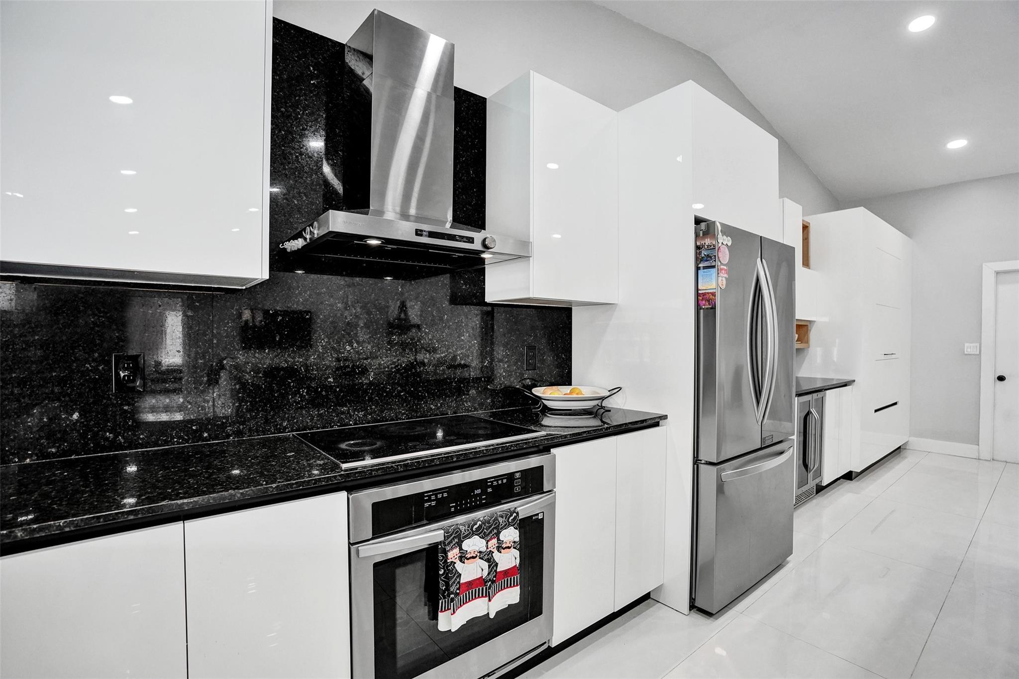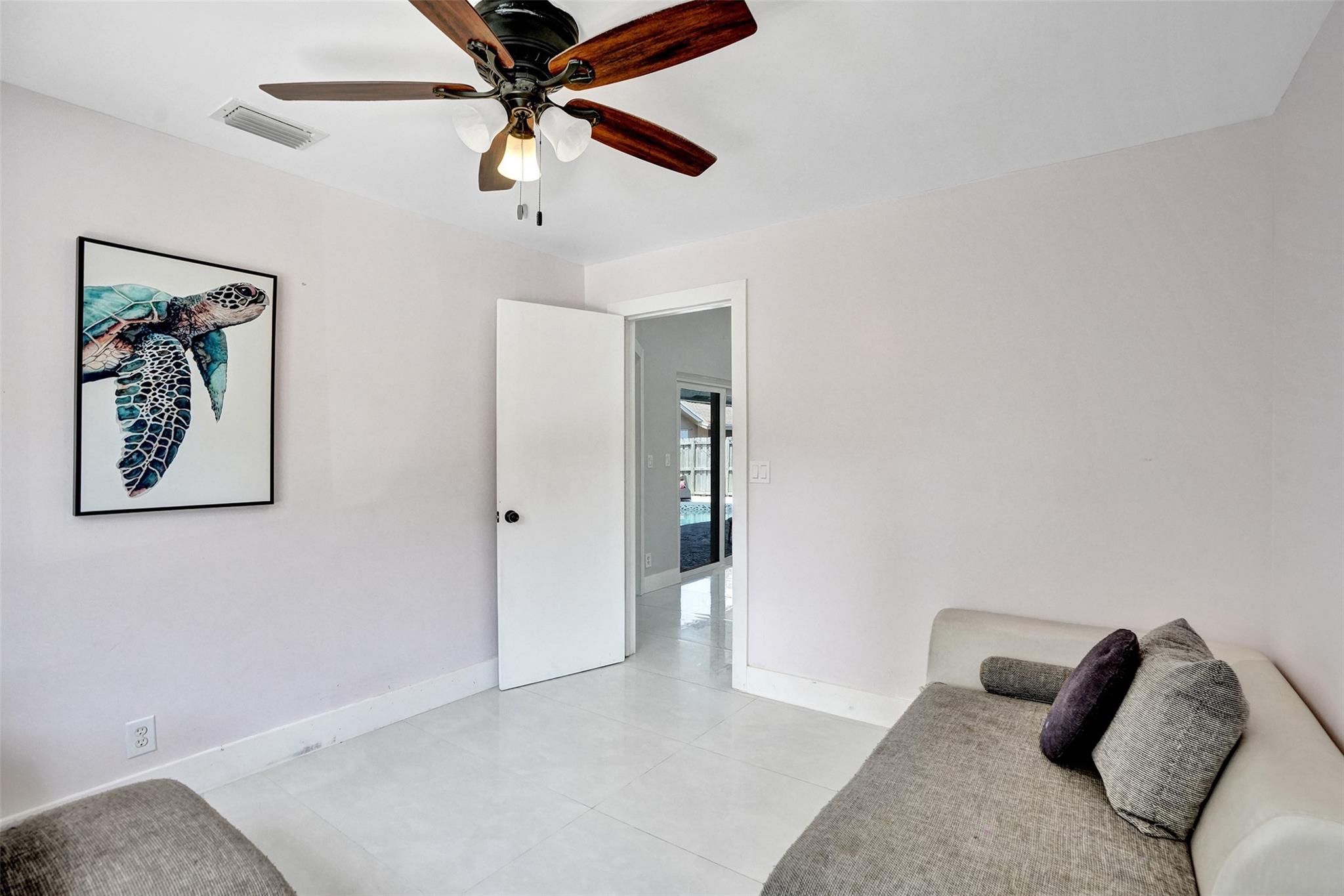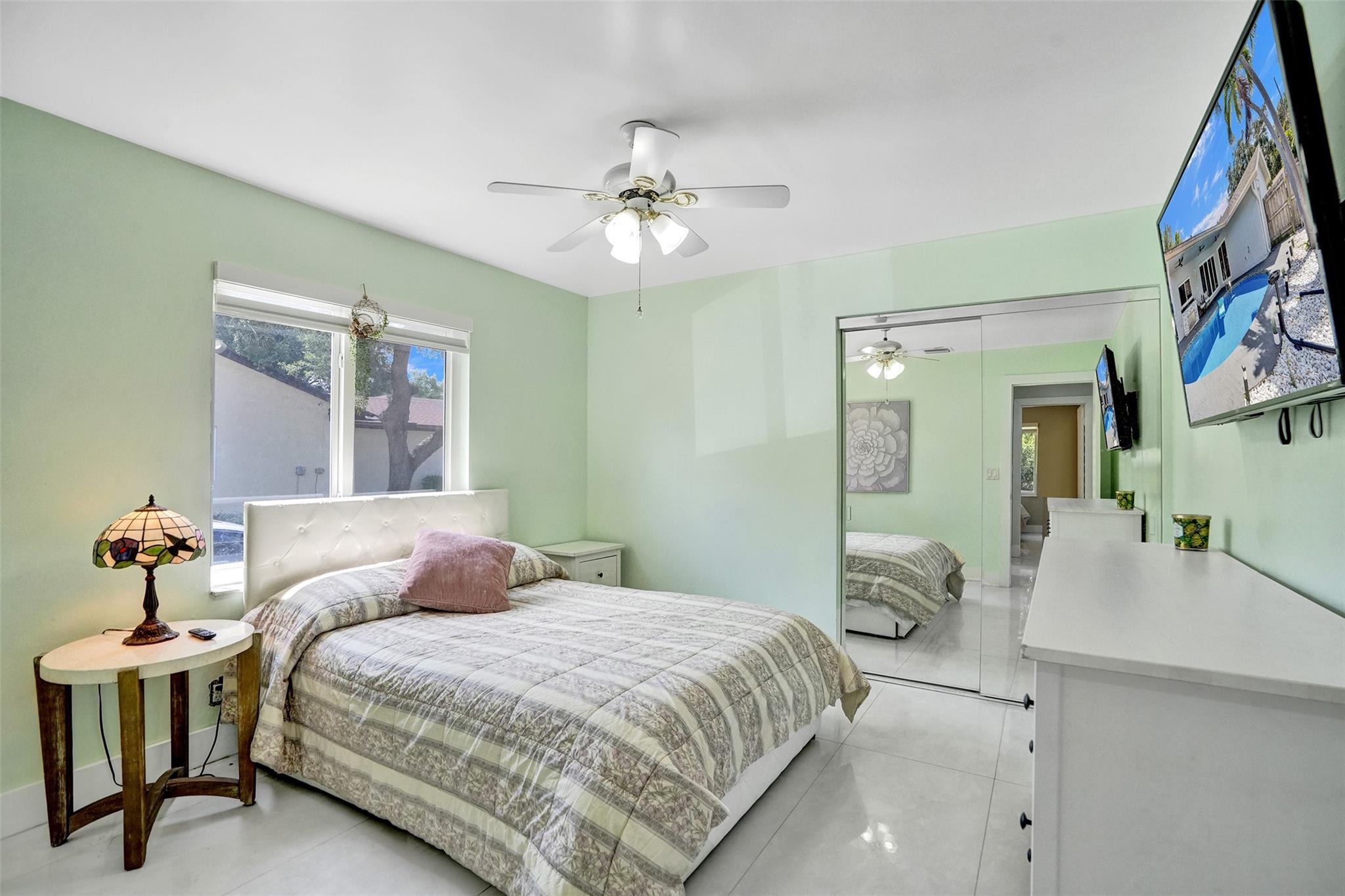 Welcome to this beautifully updated 4-bed, 2-bath corner lot home! Featuring an open floor plan with vaulted ceilings, recessed lighting, & large white tile flooring, this home exudes modern elegance. The upgraded kitchen boasts black granite countertops, high-gloss white cabinets, a spacious island with ample seating, stainless steel appliances, wine fridge, & coffee bar, perfect for entertaining. Enjoy peace of mind with hurricane impact windows, a tankless water heater, & zebra blinds throughout. The primary bath includes a cabana door leading to the backyard oasis, with a recently re-diamond brited & re-tiled kidney-shaped pool & fenced. Additional features : a 2-car garage & low annual HOA fee of just $300. Situated near University Drive, you're close to shops, restaurants, and more.