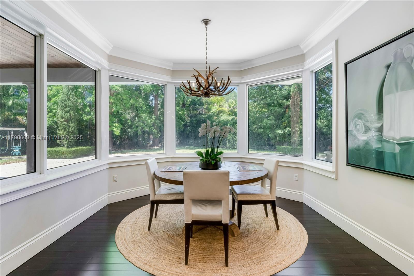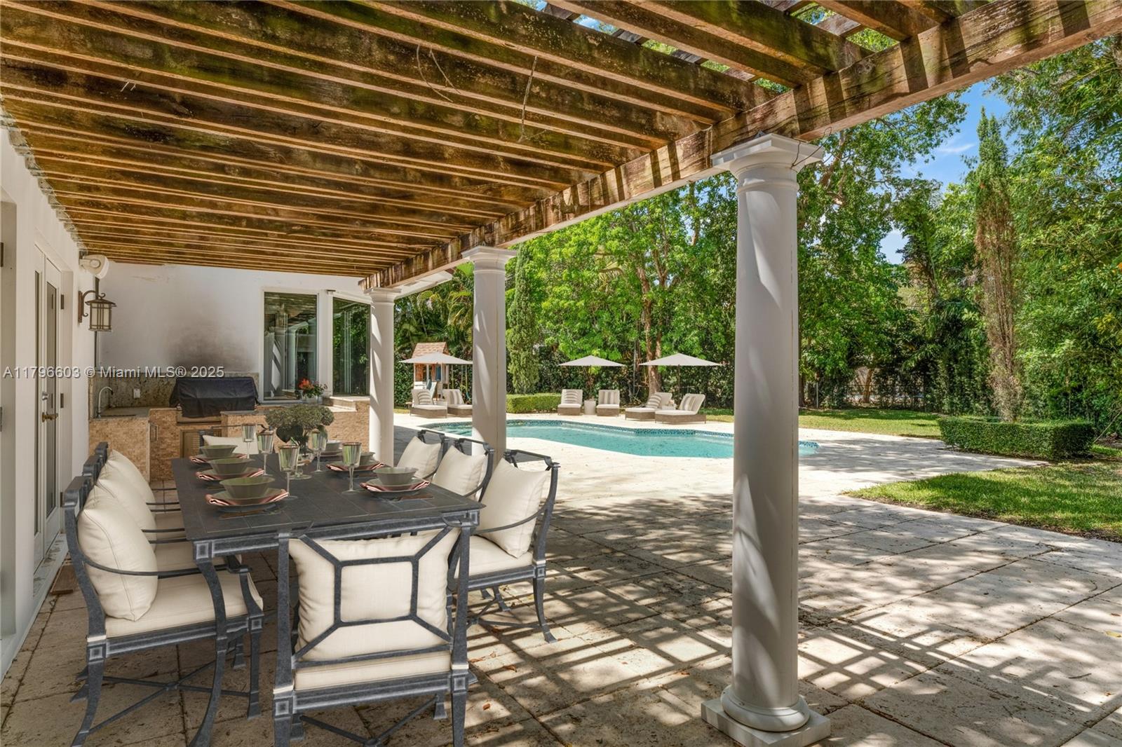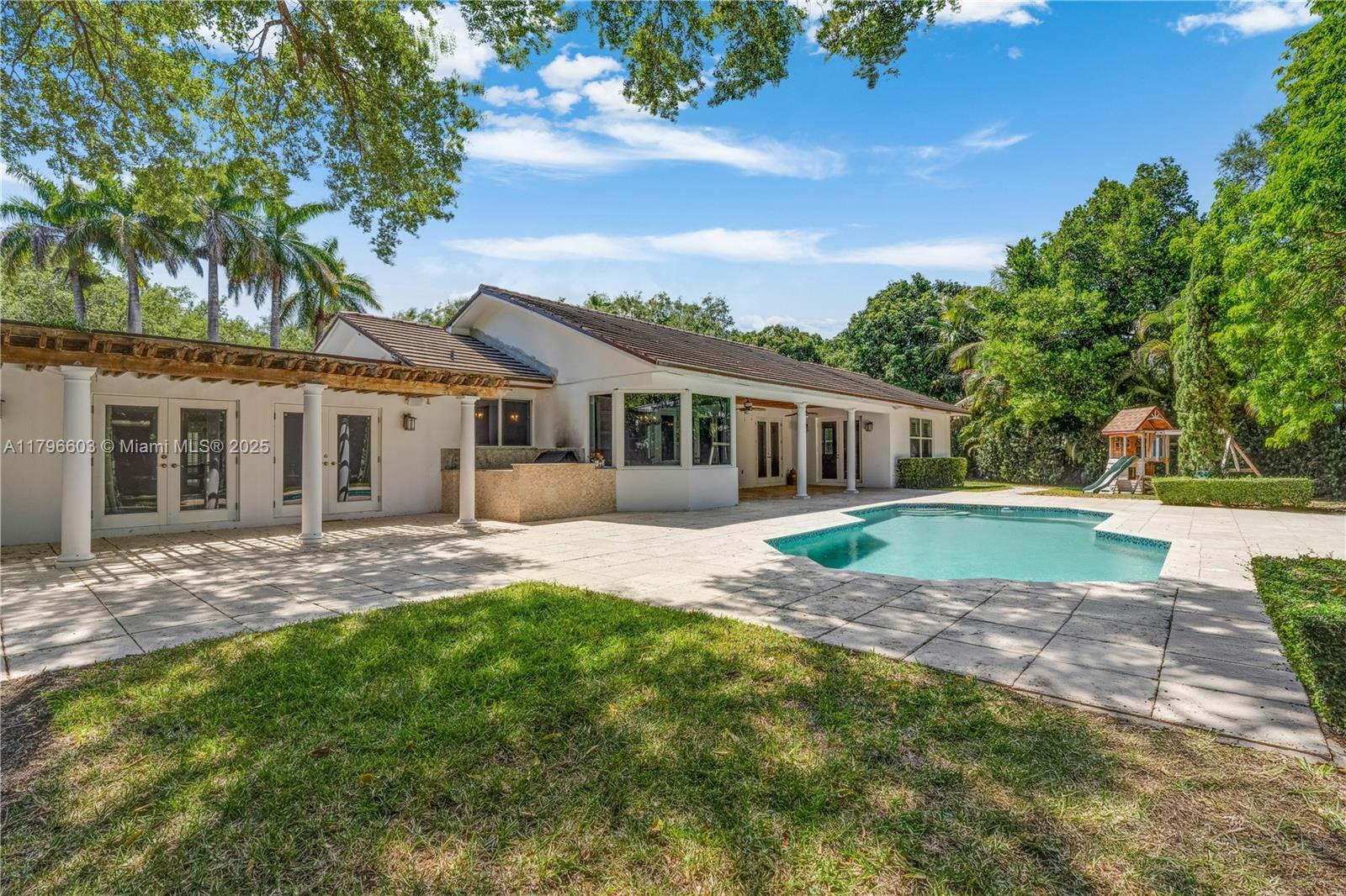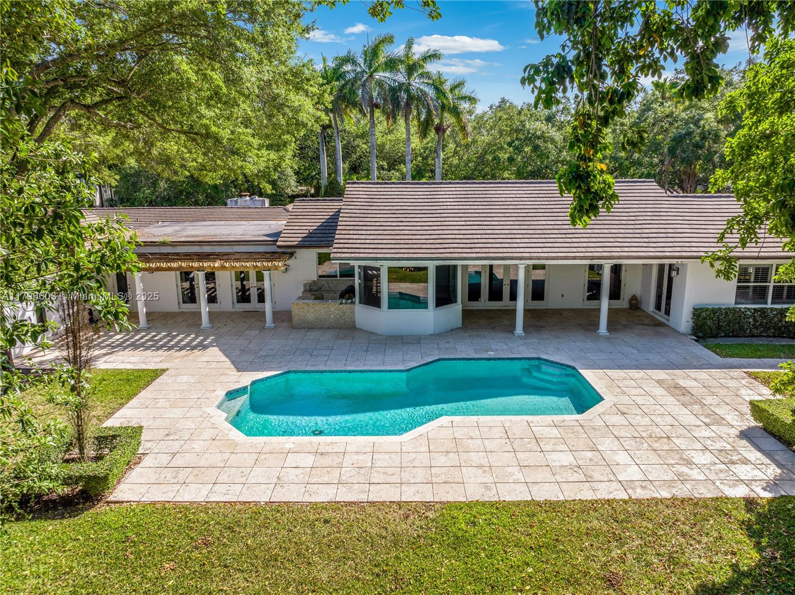 North Pinecrest Elegance with an irresistible flow tucked behind gates in one of North Pinecrest’s most coveted pockets. This rarely available estate blends timeless style with modern comfort, just moments from top-rated schools and parks. The open, airy floor plan is perfect for effortless living and entertaining, featuring 5 bedrooms, 4.5 baths, a private office, and a second large family room. An oversized dining room, spacious living areas, and a large eat-in kitchen flow into a grand family room with views of the pool, patio, and lush backyard. A tucked-away guest suite adds privacy and versatility. This is Florida living at its finest, indoors and out. Come experience the light, space, and warmth of this Pinecrest paradise.