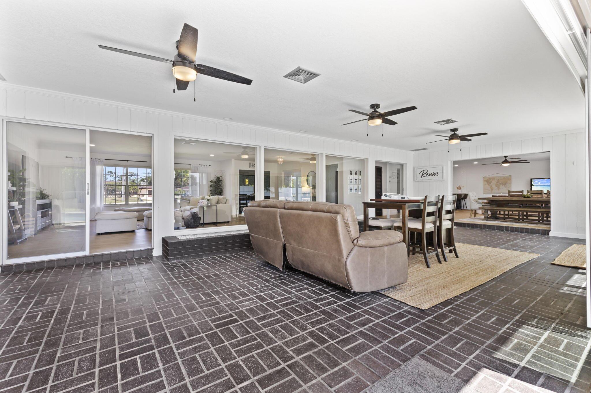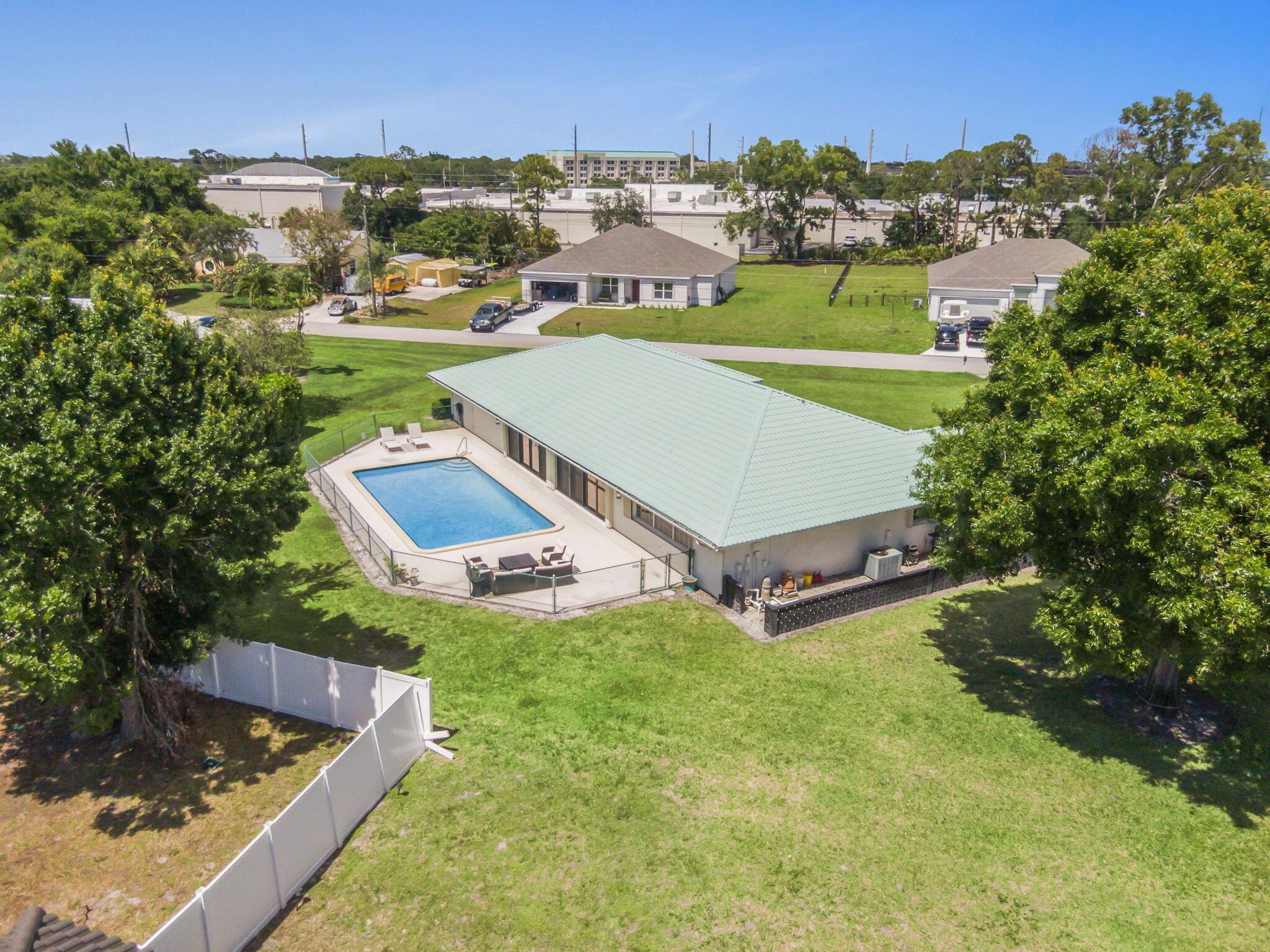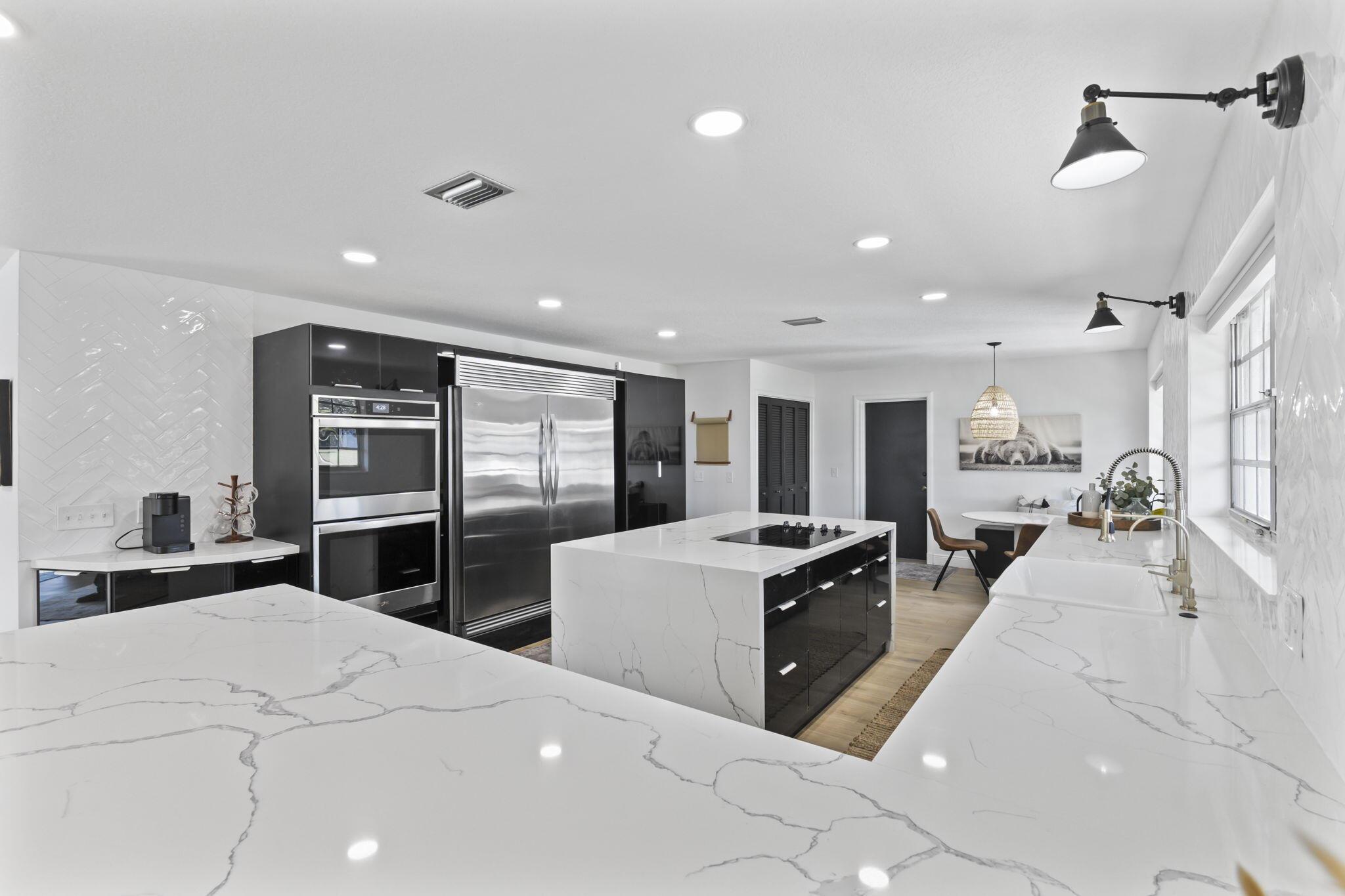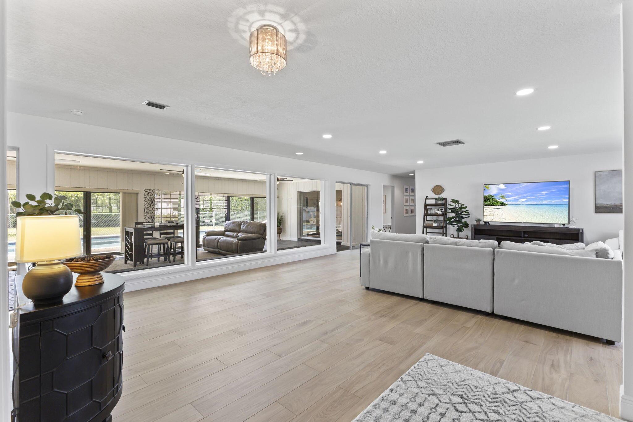 Welcome to 2196 SE Flanders Road, a meticulously maintained estate in the heart of Port Saint Lucie. This expansive 3,660 sq ft single-story ranch style home offers 3 bedrooms, 2.5 bathrooms, and a versatile layout that includes an optional 4th bedroom or office space. Situated on a generous 0.55-acre corner lot, the property boasts a private oversized in-ground pool (8' deep, 20 x 40), making it an ideal retreat for both relaxation and entertaining. Step inside to discover a host of modern upgrades: a brand-new luxury gourmet kitchen, wood plank tile flooring, renovated bathrooms, and updated lighting throughout. Additional features include a 2021 washer and dryer, a 2022 water heater, and two zoned AC units, ensuring year-round comfort.