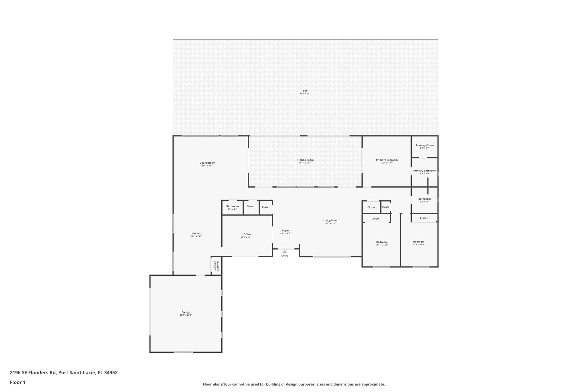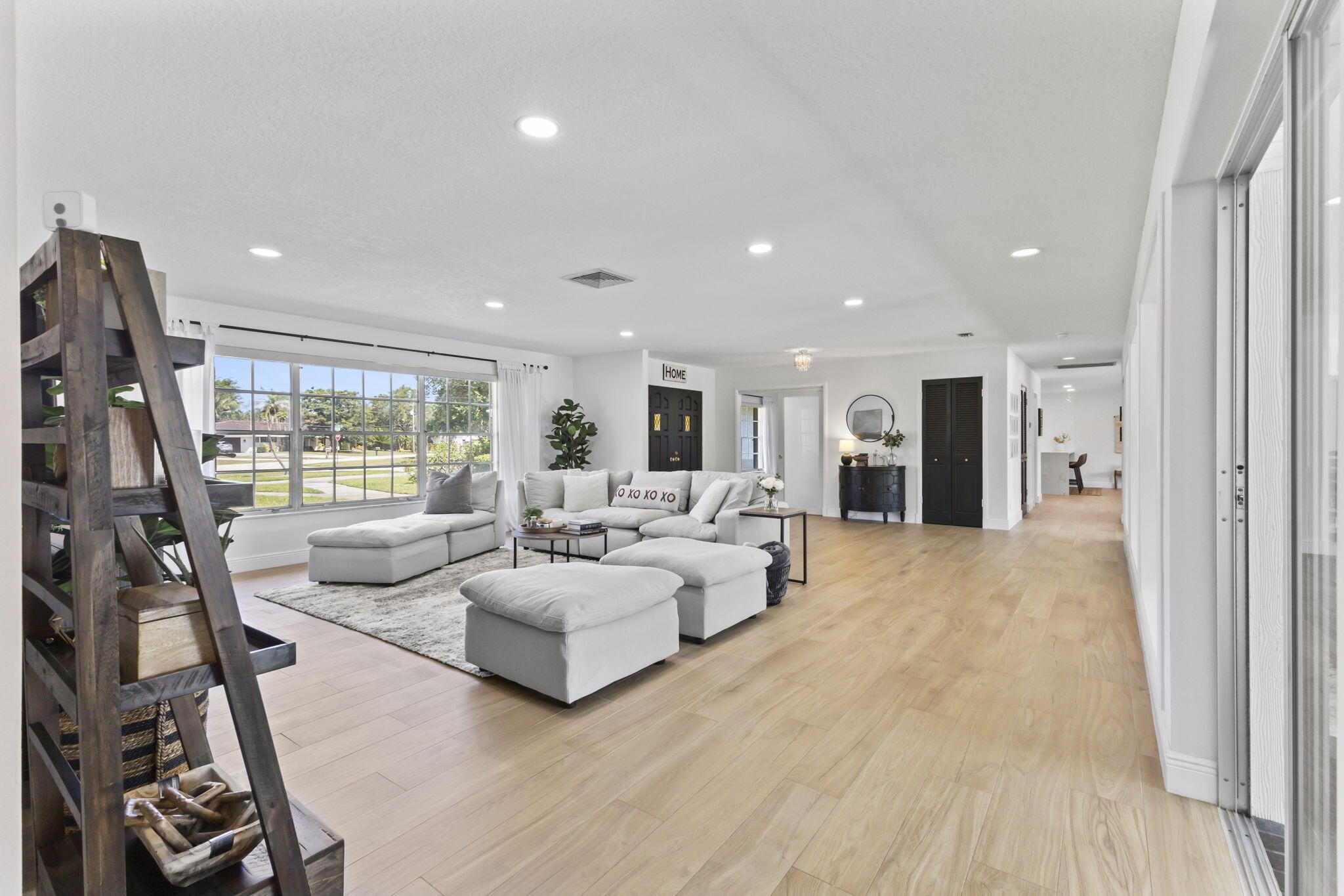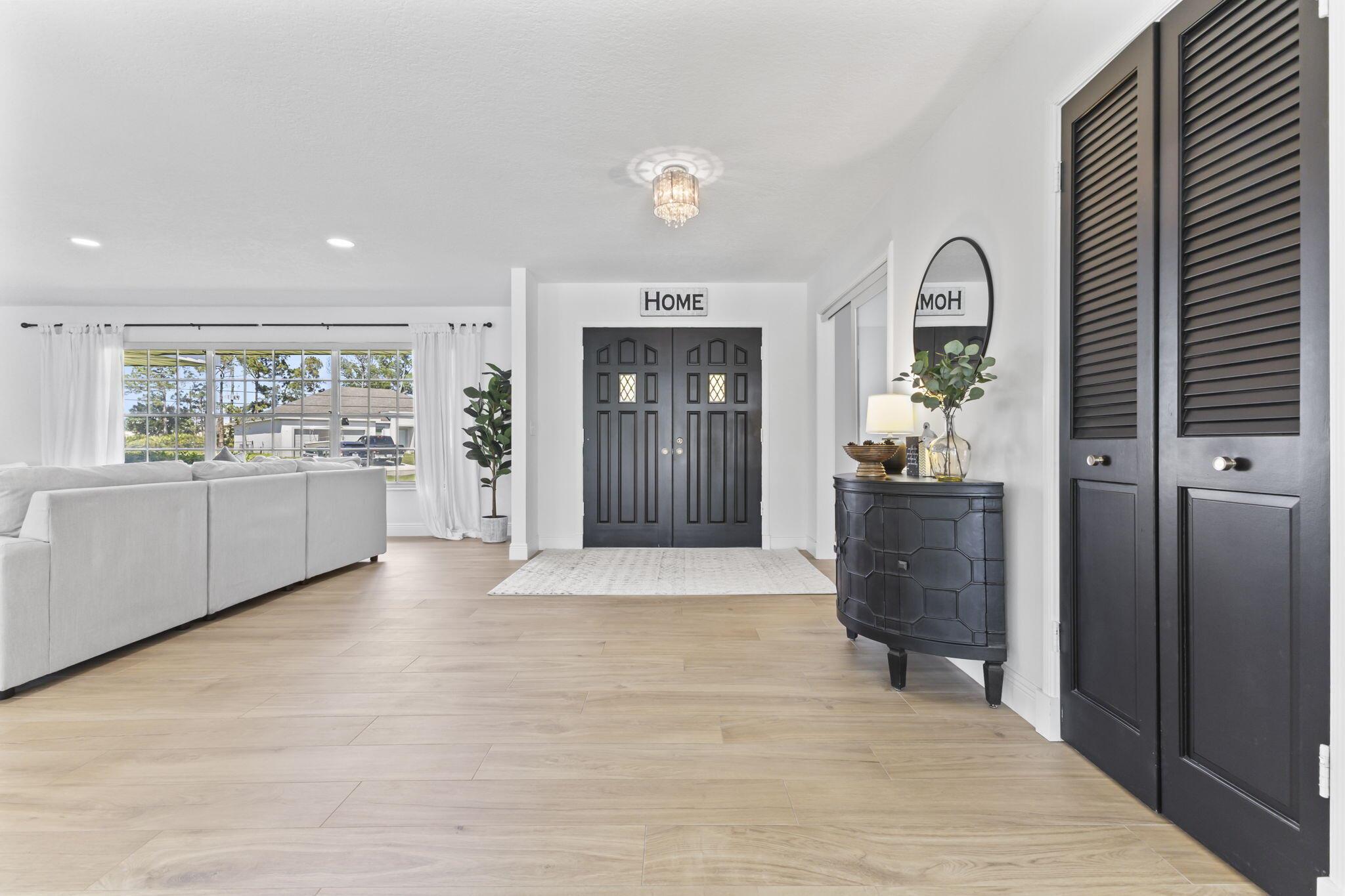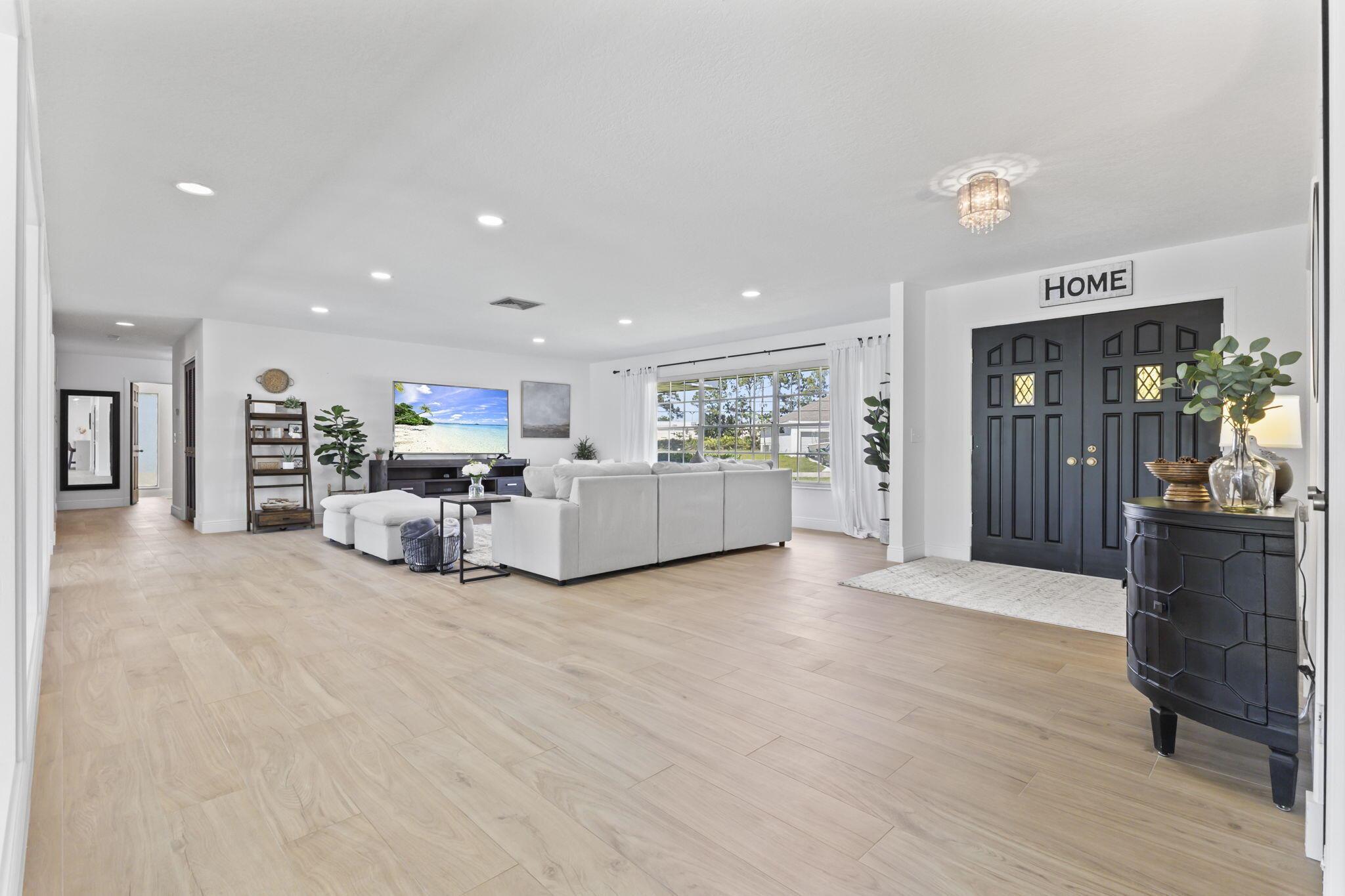 Welcome to 2196 SE Flanders Road, a meticulously maintained estate in the heart of Port Saint Lucie. This expansive 3,660 sq ft single-story ranch style home offers 3 bedrooms, 2.5 bathrooms, and a versatile layout that includes an optional 4th bedroom or office space. Situated on a generous 0.55-acre corner lot, the property boasts a private oversized in-ground pool (8' deep, 20 x 40), making it an ideal retreat for both relaxation and entertaining. Step inside to discover a host of modern upgrades: a brand-new luxury gourmet kitchen, wood plank tile flooring, renovated bathrooms, and updated lighting throughout. Additional features include a 2021 washer and dryer, a 2022 water heater, and two zoned AC units, ensuring year-round comfort.