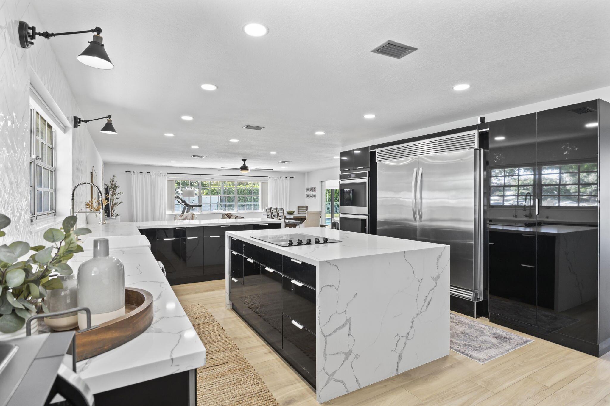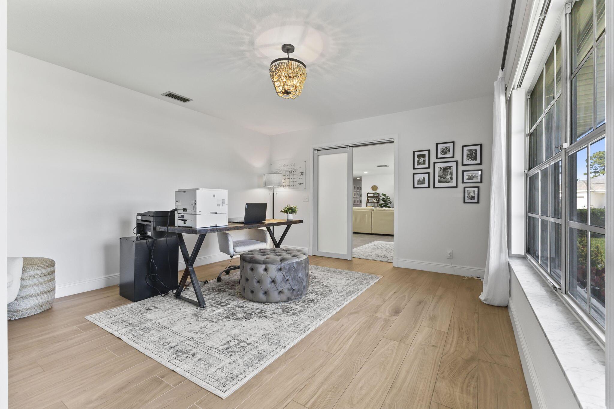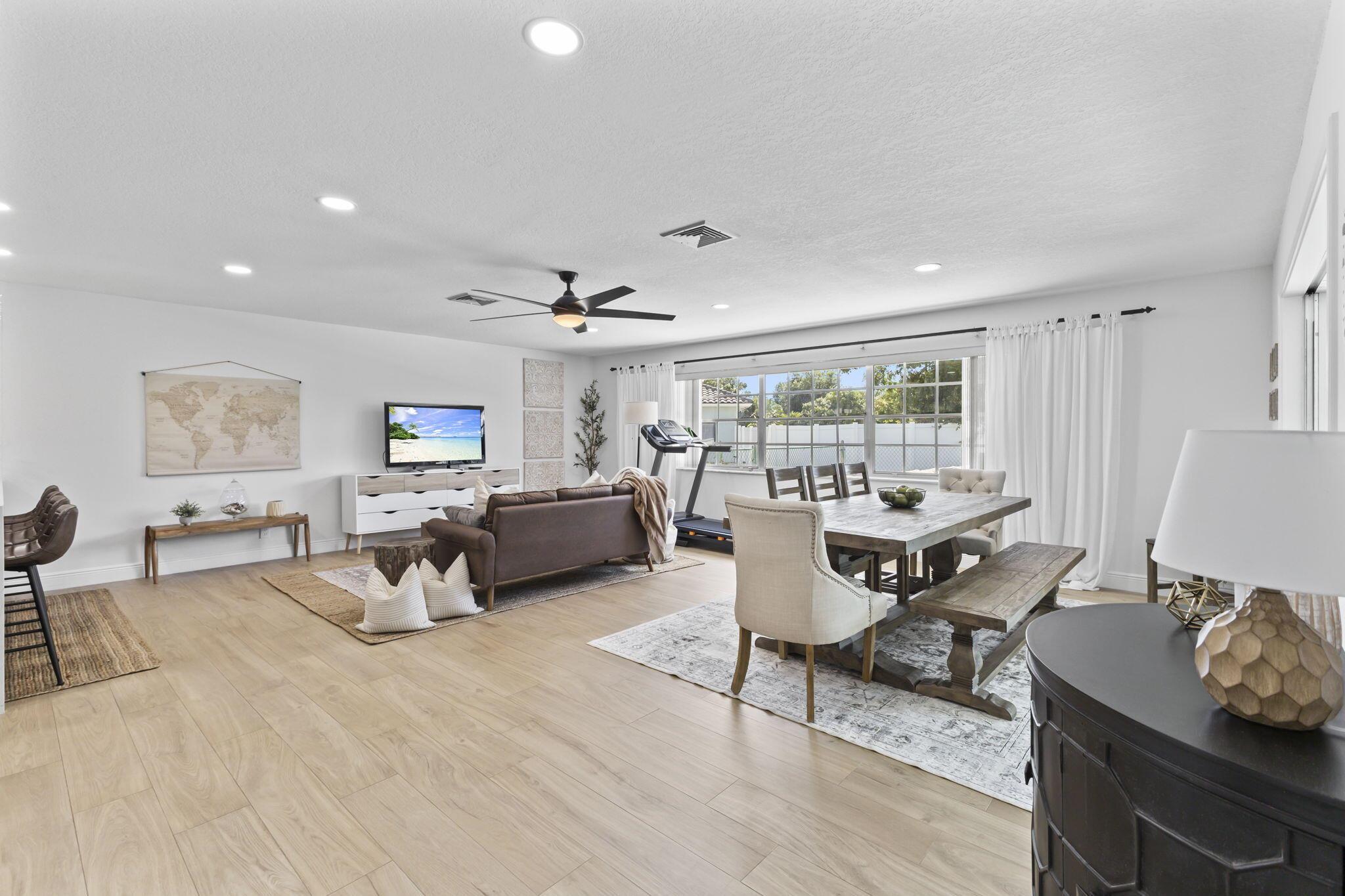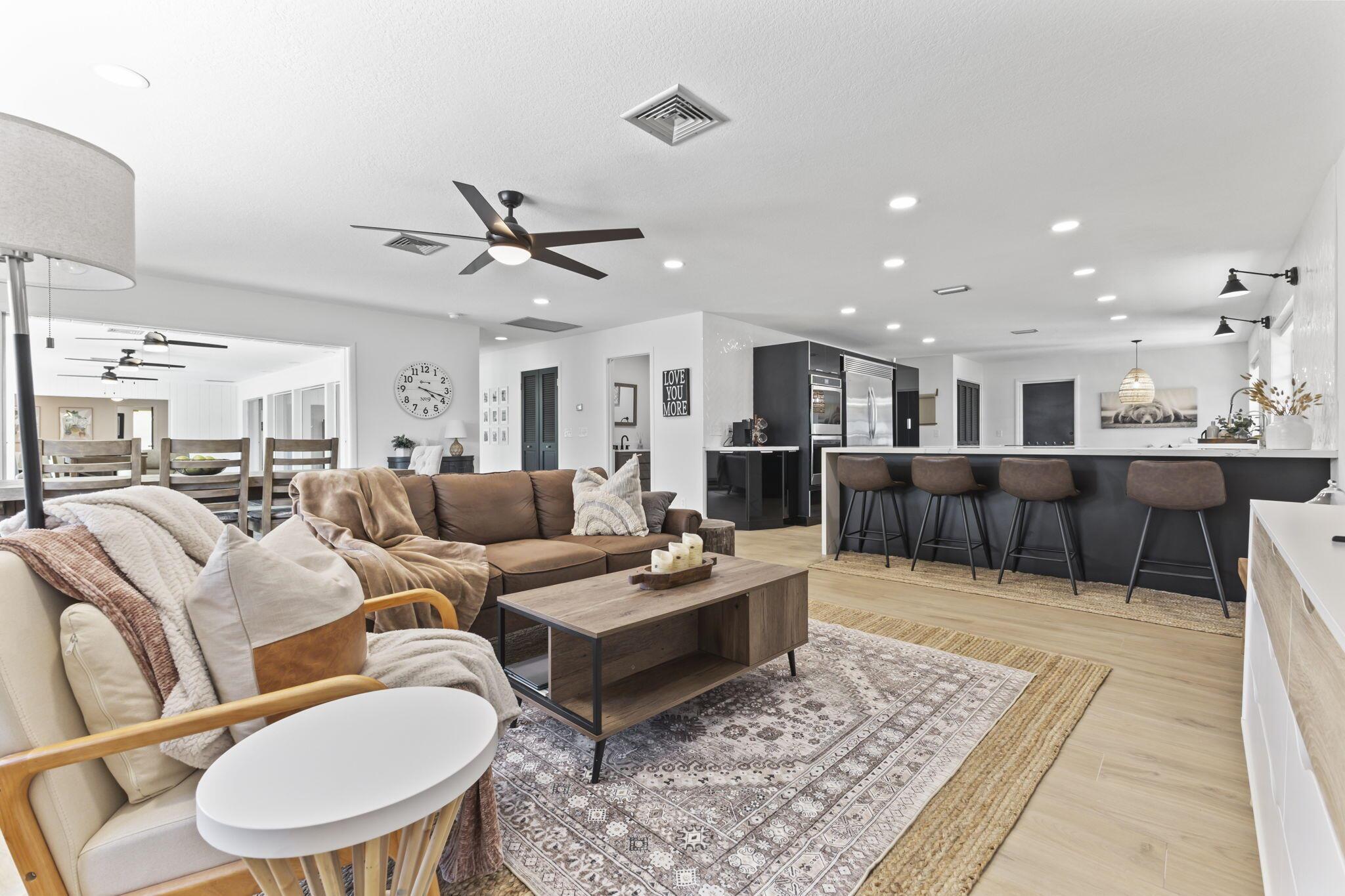 Welcome to 2196 SE Flanders Road, a meticulously maintained estate in the heart of Port Saint Lucie. This expansive 3,660 sq ft single-story ranch style home offers 3 bedrooms, 2.5 bathrooms, and a versatile layout that includes an optional 4th bedroom or office space. Situated on a generous 0.55-acre corner lot, the property boasts a private oversized in-ground pool (8' deep, 20 x 40), making it an ideal retreat for both relaxation and entertaining. Step inside to discover a host of modern upgrades: a brand-new luxury gourmet kitchen, wood plank tile flooring, renovated bathrooms, and updated lighting throughout. Additional features include a 2021 washer and dryer, a 2022 water heater, and two zoned AC units, ensuring year-round comfort.